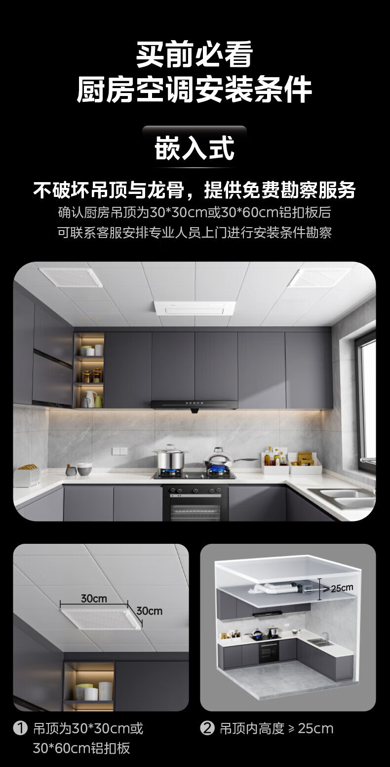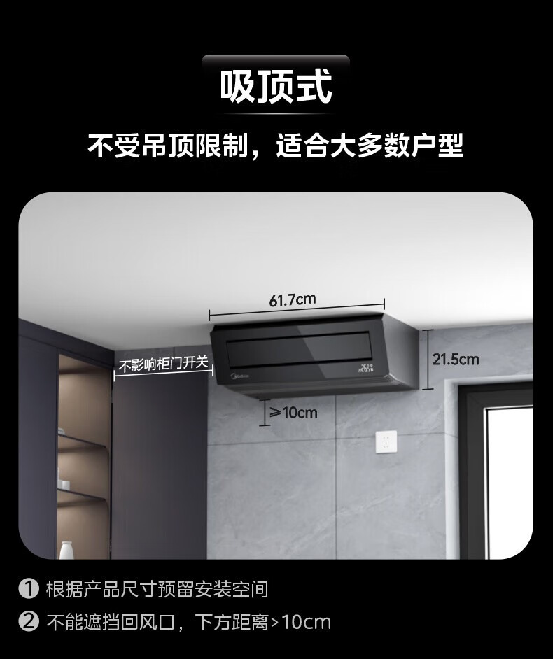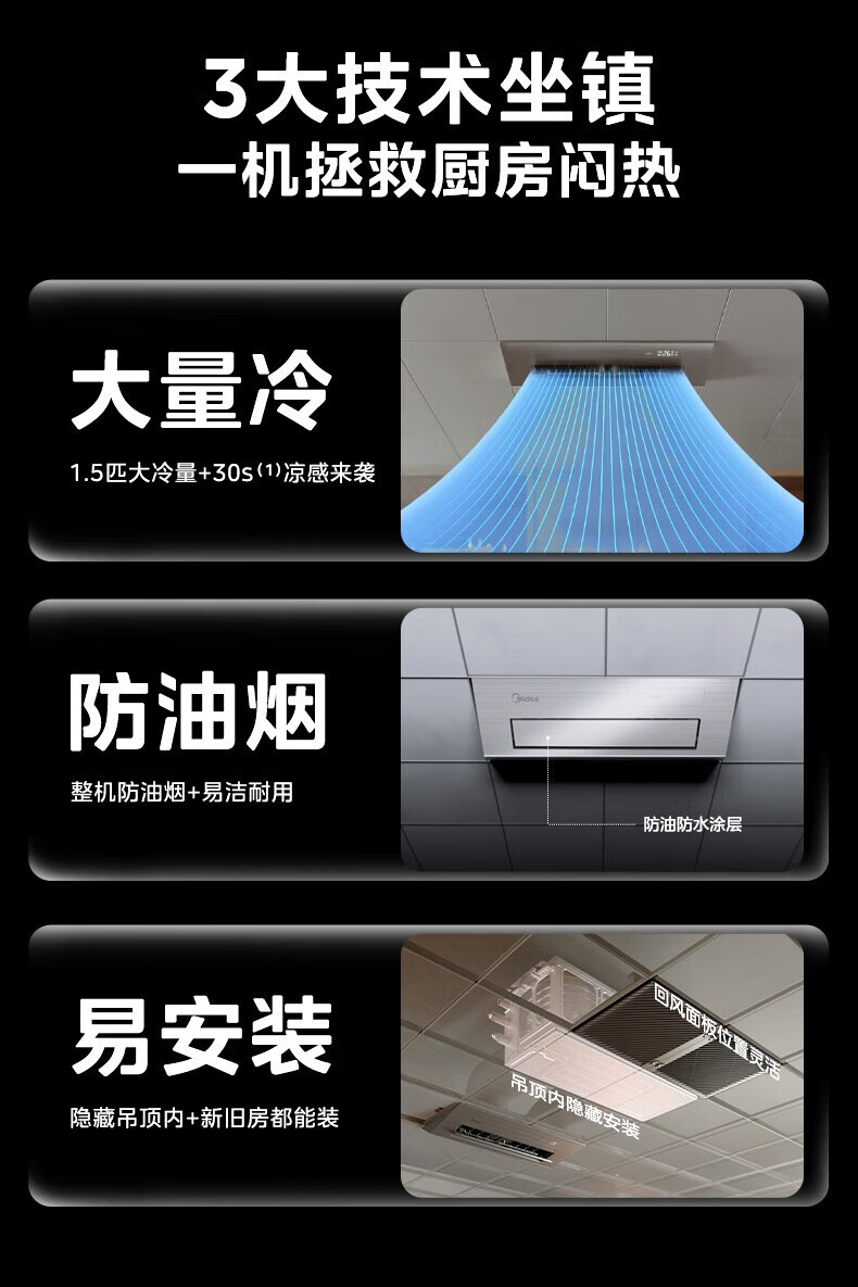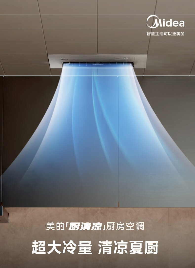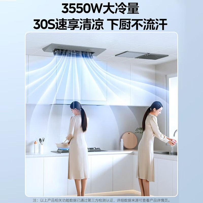 美的(Midea)厨清凉 厨房空调专用嵌入式新一级能效变频1.5匹家用集成吊顶制冷空调防油烟大冷量新风系统风管机 1.5匹 一级能效