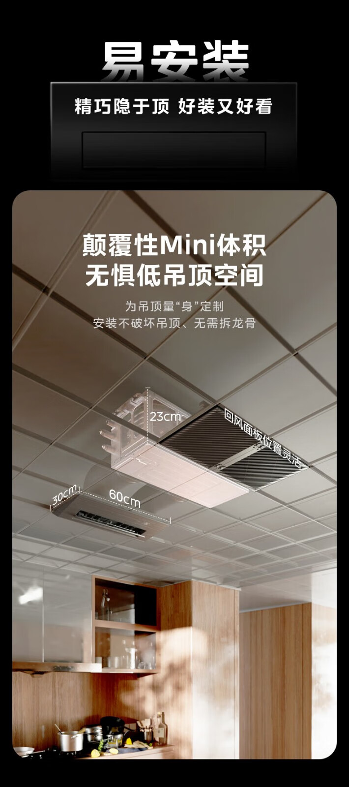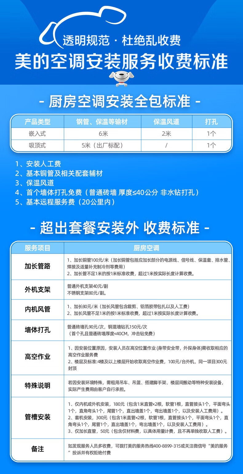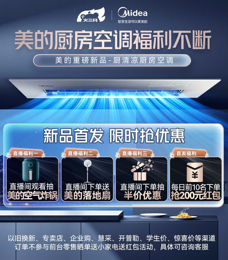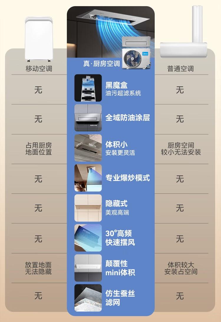 美的(Midea)厨清凉 厨房空调专用嵌入式新一级能效变频1.5匹家用集成吊顶制冷空调防油烟大冷量新风系统风管机 1.5匹 一级能效