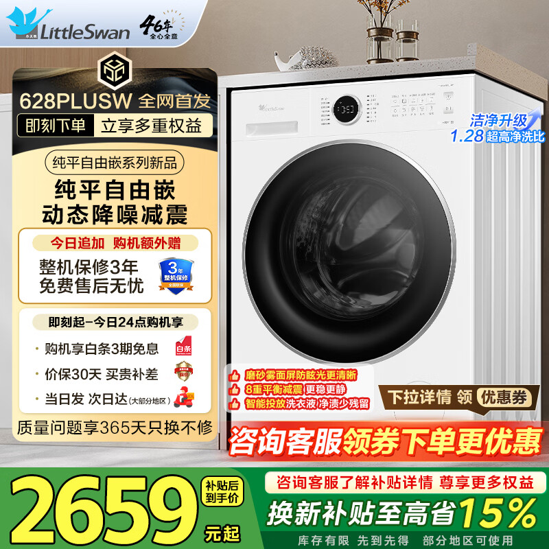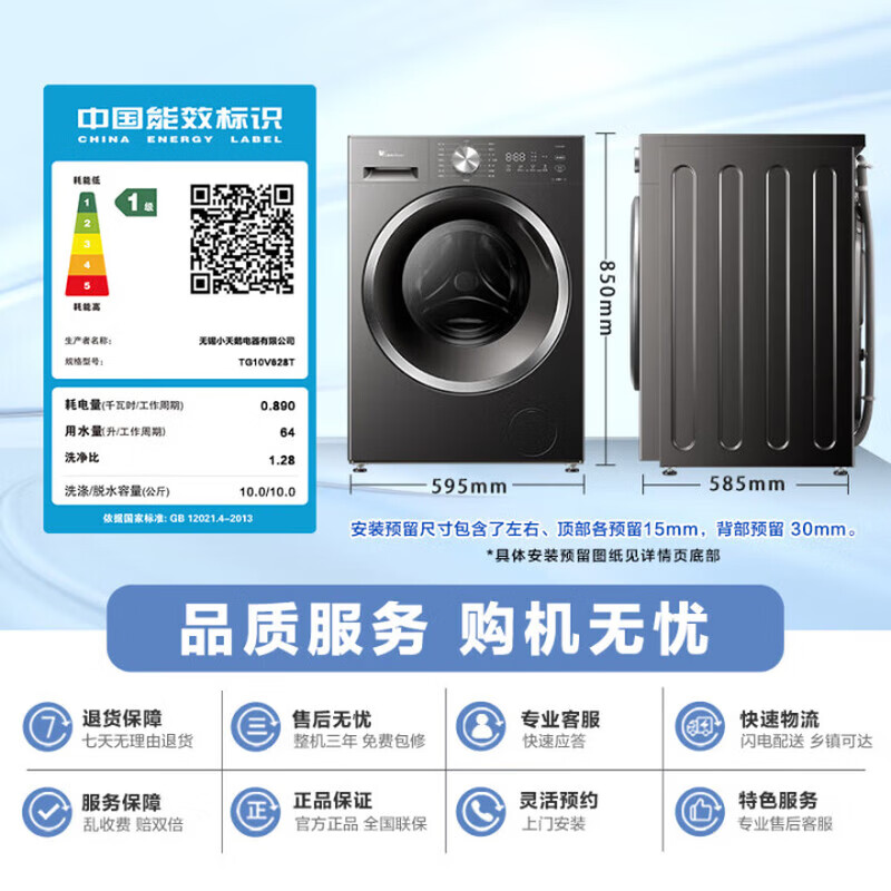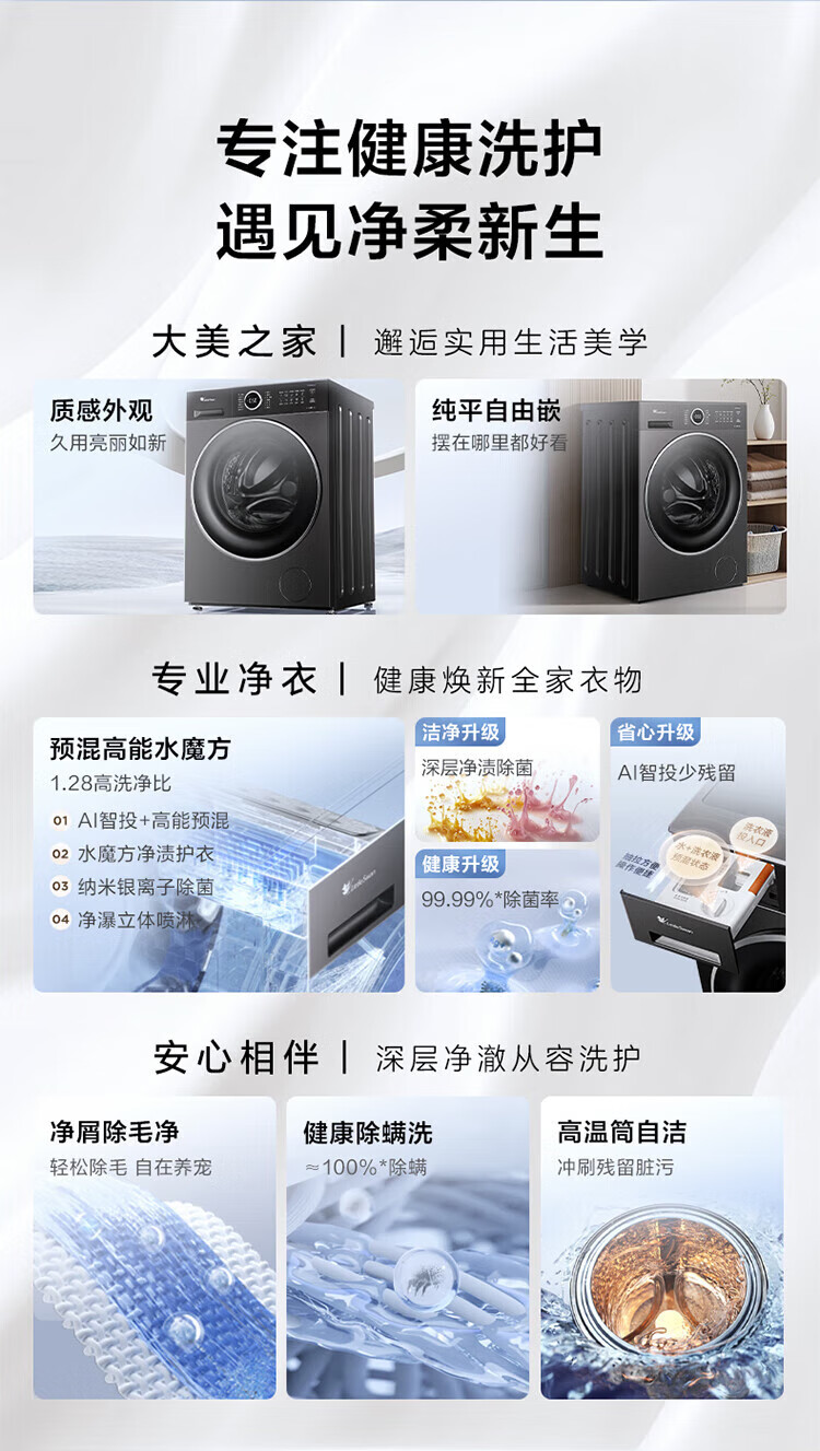 628P白 单洗 10kg 1.28洗净比+智能投放