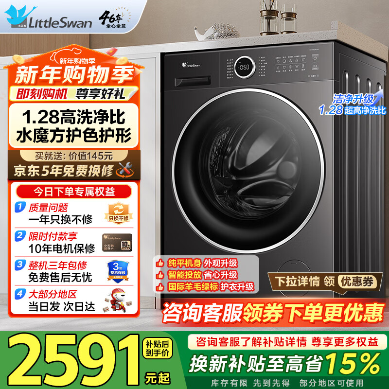 小天鹅(LittleSwan)滚筒洗衣机全自动家用10公斤纯平自由嵌 1.28超高洗净比变频电机 一级能效家电补贴
