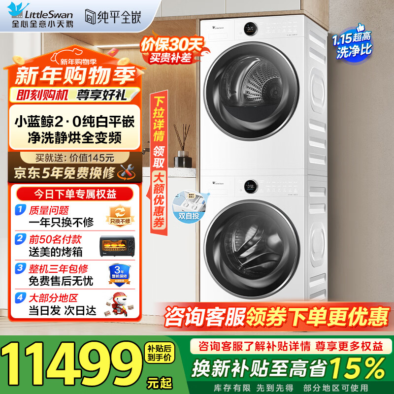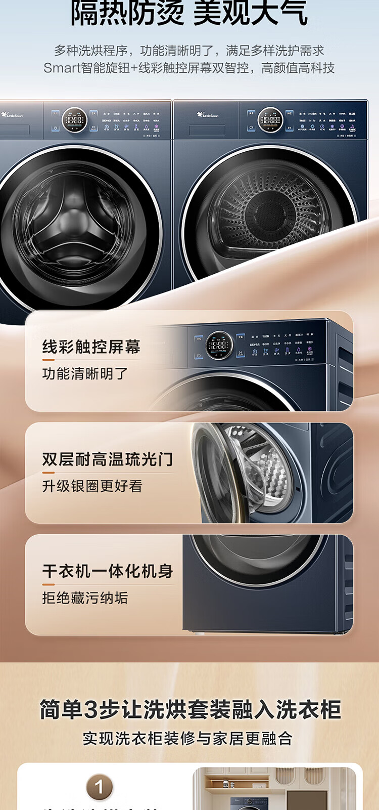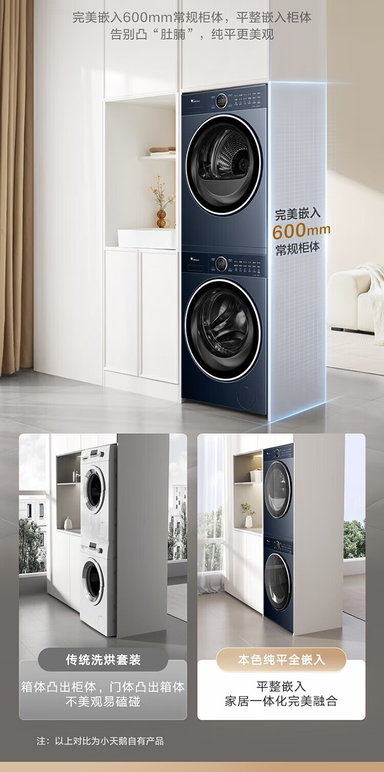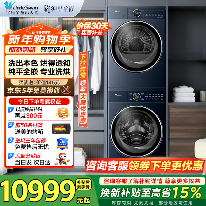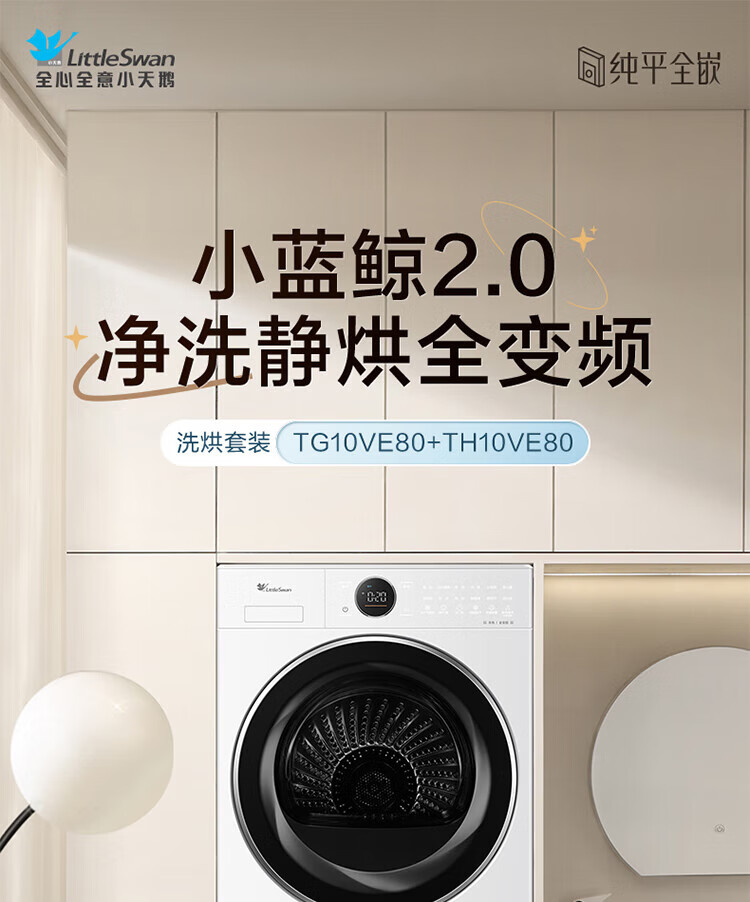 小天鹅(LittleSwan)洗烘套装10公斤滚筒洗衣机+热泵烘干双变频纯平全嵌蓝氧护色洗智能双智投【小蓝鲸2.0】