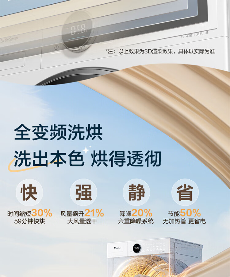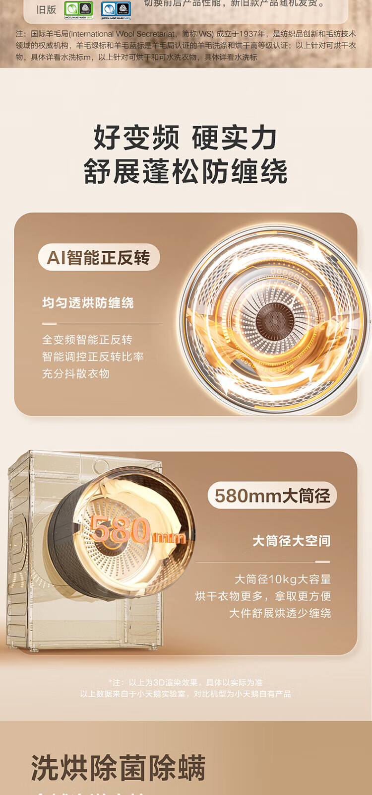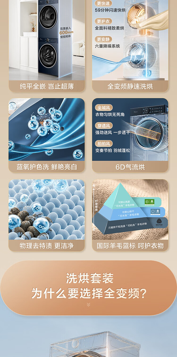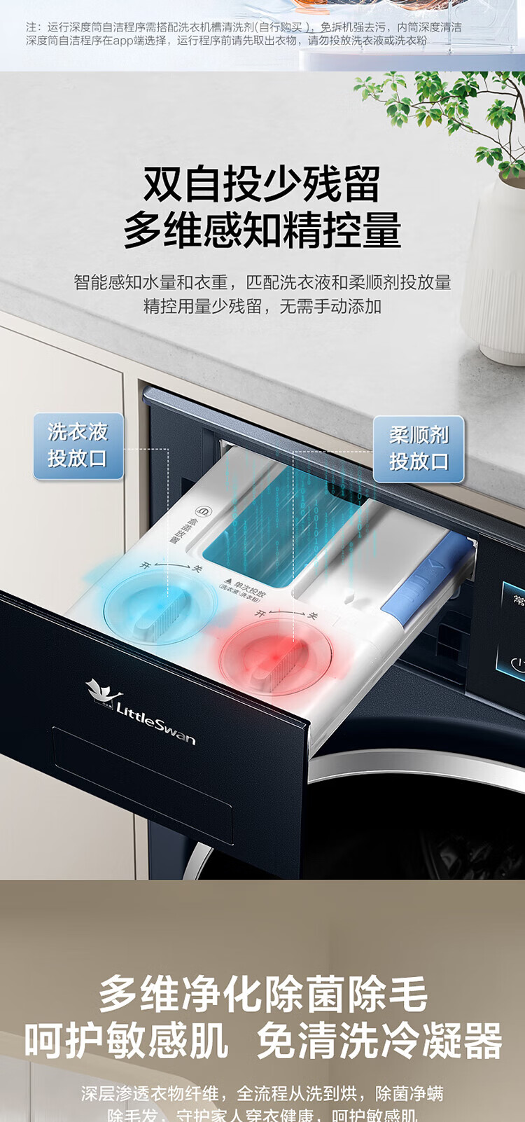 小天鹅(LittleSwan)洗烘套装10公斤滚筒洗衣机+热泵烘干双变频纯平全嵌蓝氧护色洗智能双智投【小蓝鲸2.0】