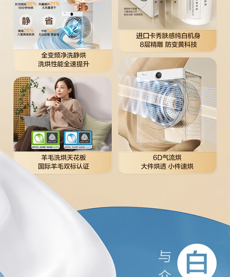 VE80洗烘套装白色丨智能双自投丨洗净比1.15