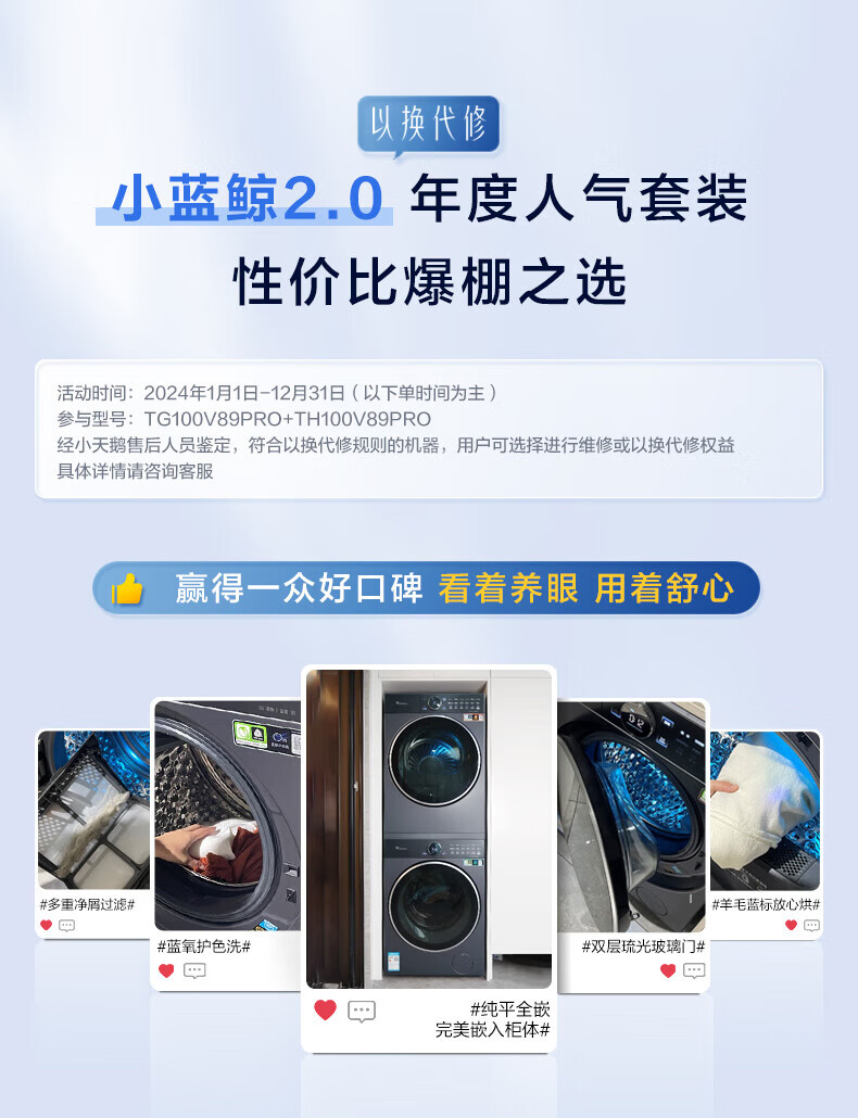89PRO洗烘套装丨智能双自投丨洗净比1.10