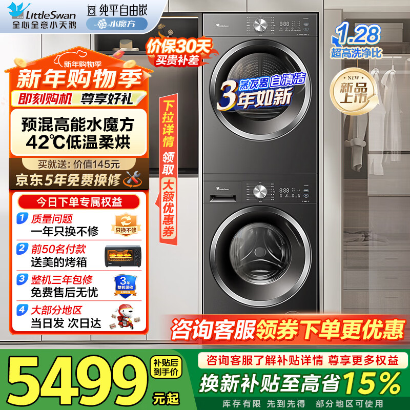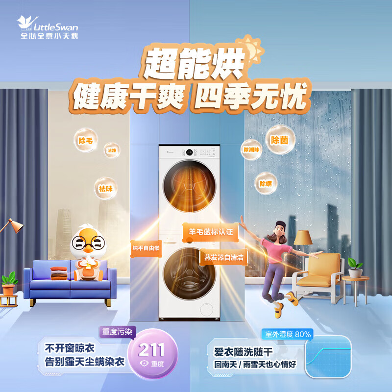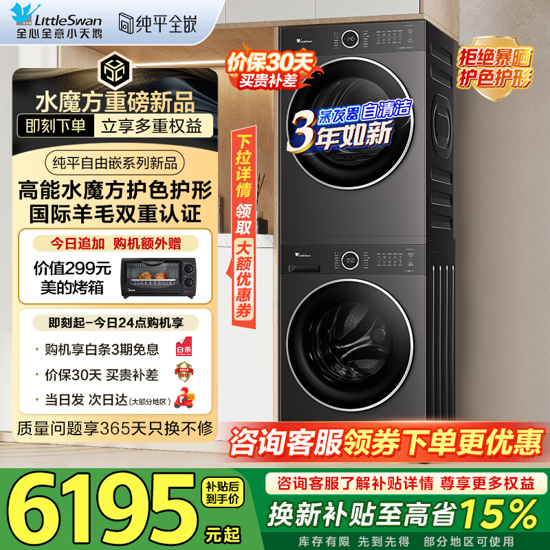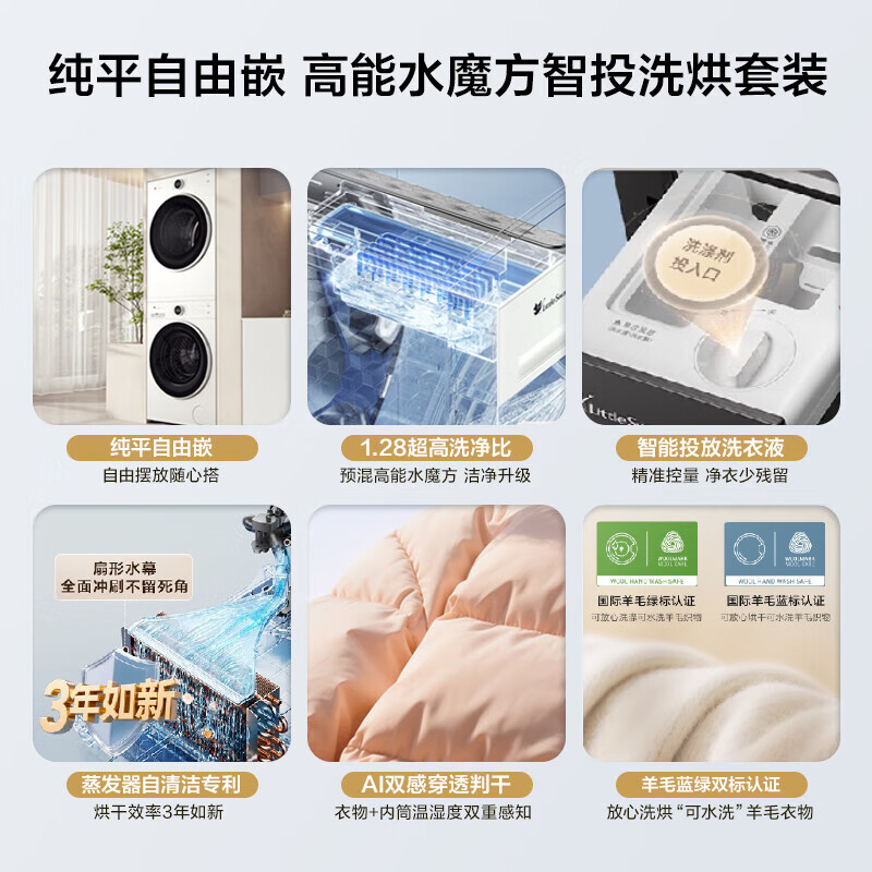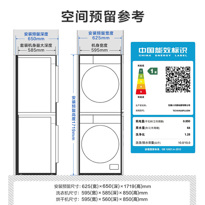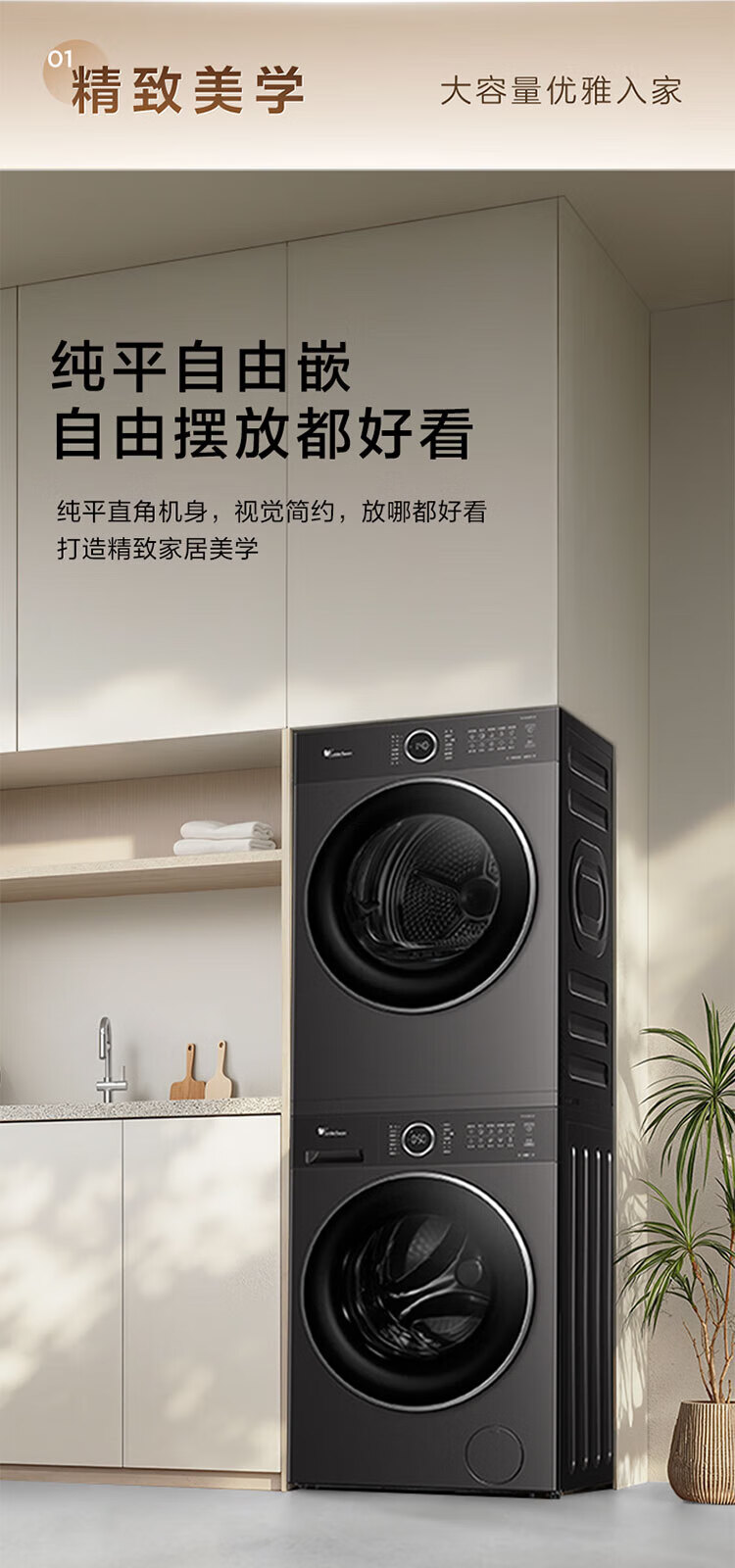 小天鹅(LittleSwan)洗烘套装10KG滚筒洗衣机+10KG变频热泵烘干机 水魔方纯平自由嵌1.28洗净比