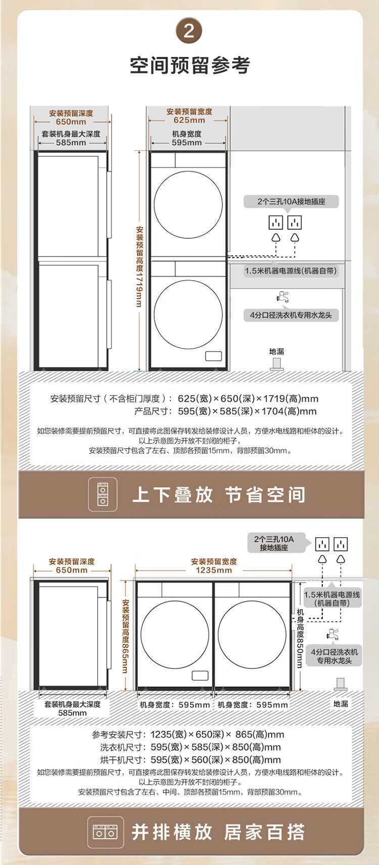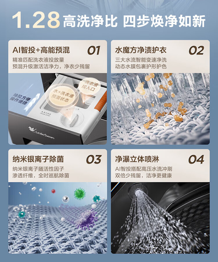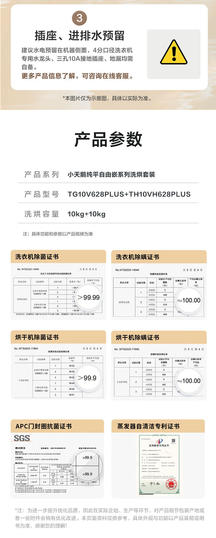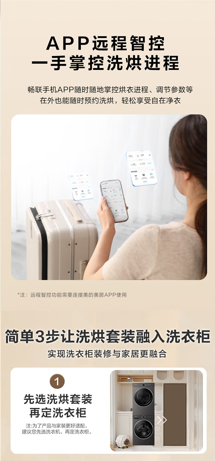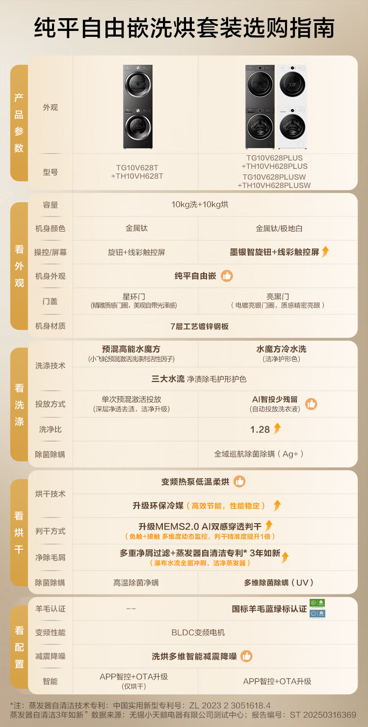 小天鹅(LittleSwan)洗烘套装10KG滚筒洗衣机+10KG变频热泵烘干机 水魔方纯平自由嵌1.28洗净比