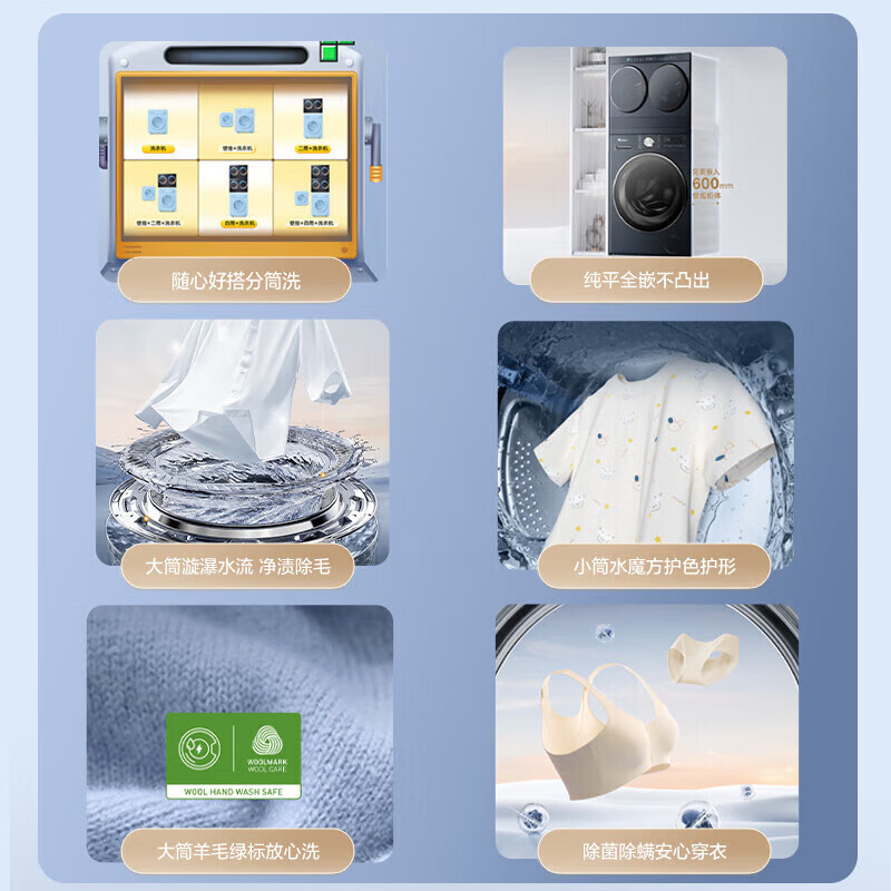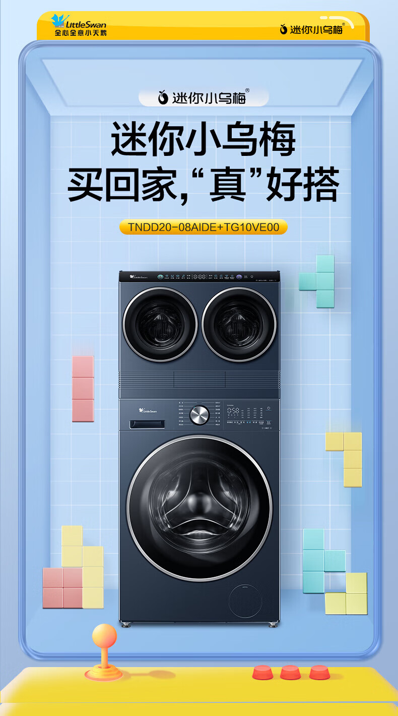 小天鹅(LittleSwan)懒人三筒洗衣机小乌梅3.0滚筒洗衣机分区洗 内衣袜子可叠放【迷你小乌梅】纯平全嵌自由组合