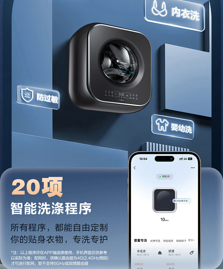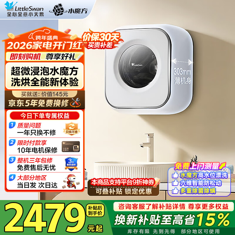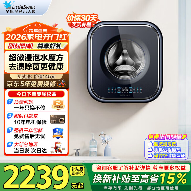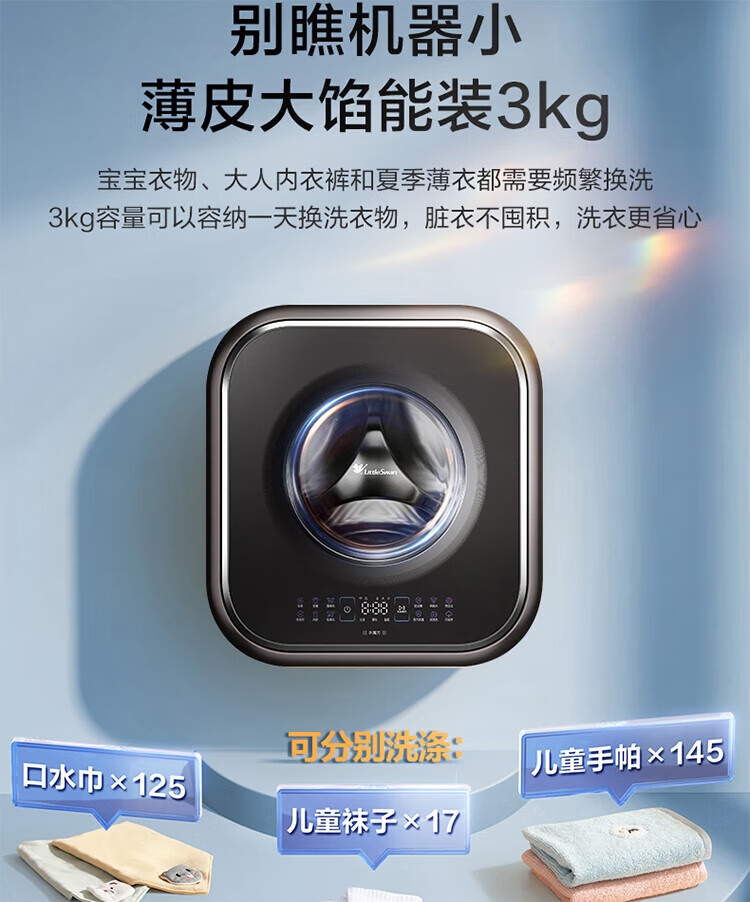 小天鹅(LittleSwan)3公斤小海绵壁挂洗衣机智能迷你机身 一级能效全自动母婴宝宝内裤内衣洗 水魔方除菌消毒