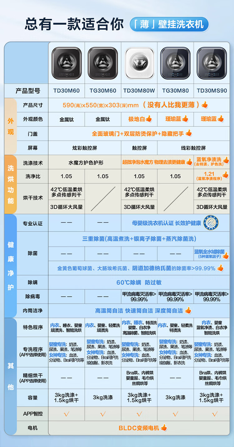 TD30MS90 壁挂 3kg 小海绵2.0高奢版带烘干