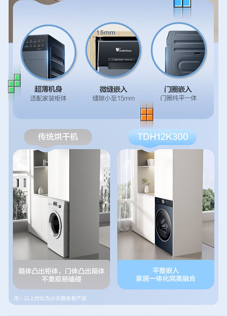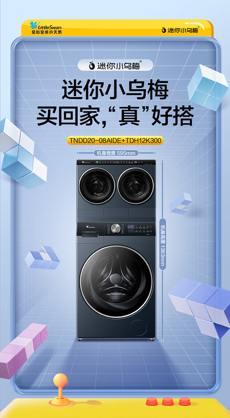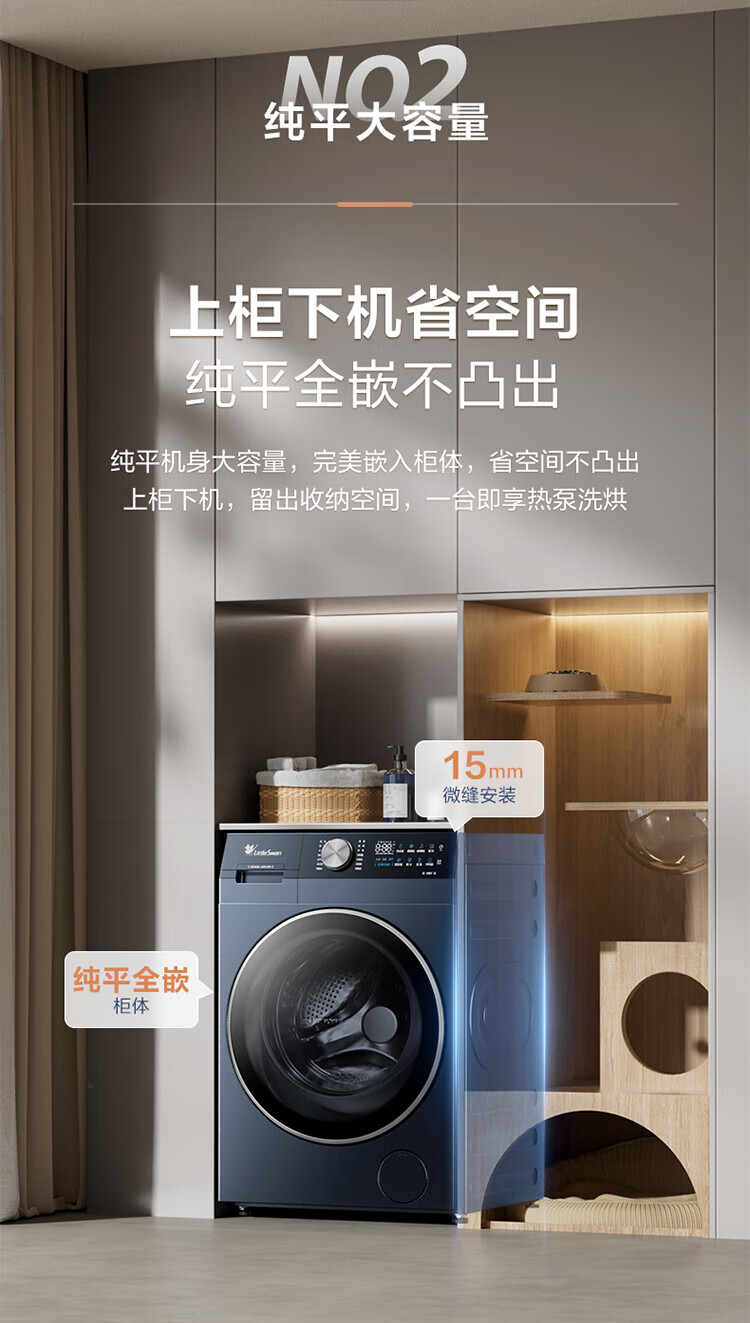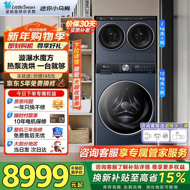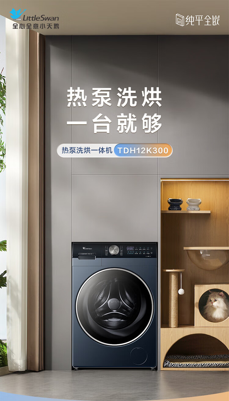 小天鹅(LittleSwan)滚筒洗衣机热泵洗烘一体纯平全嵌水魔方可叠加外挂内衣洗衣机【迷你小乌梅】