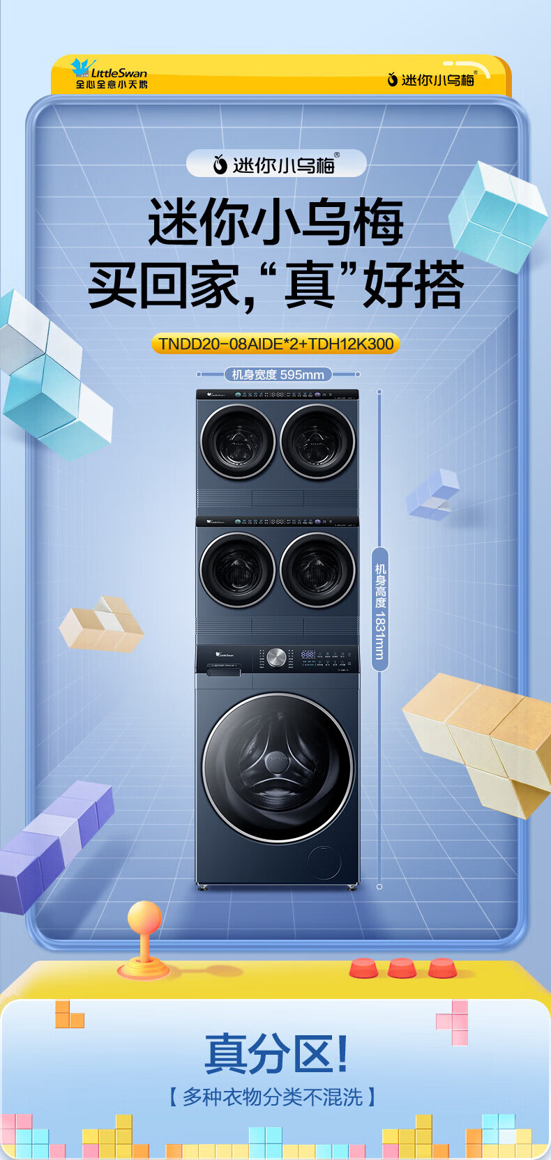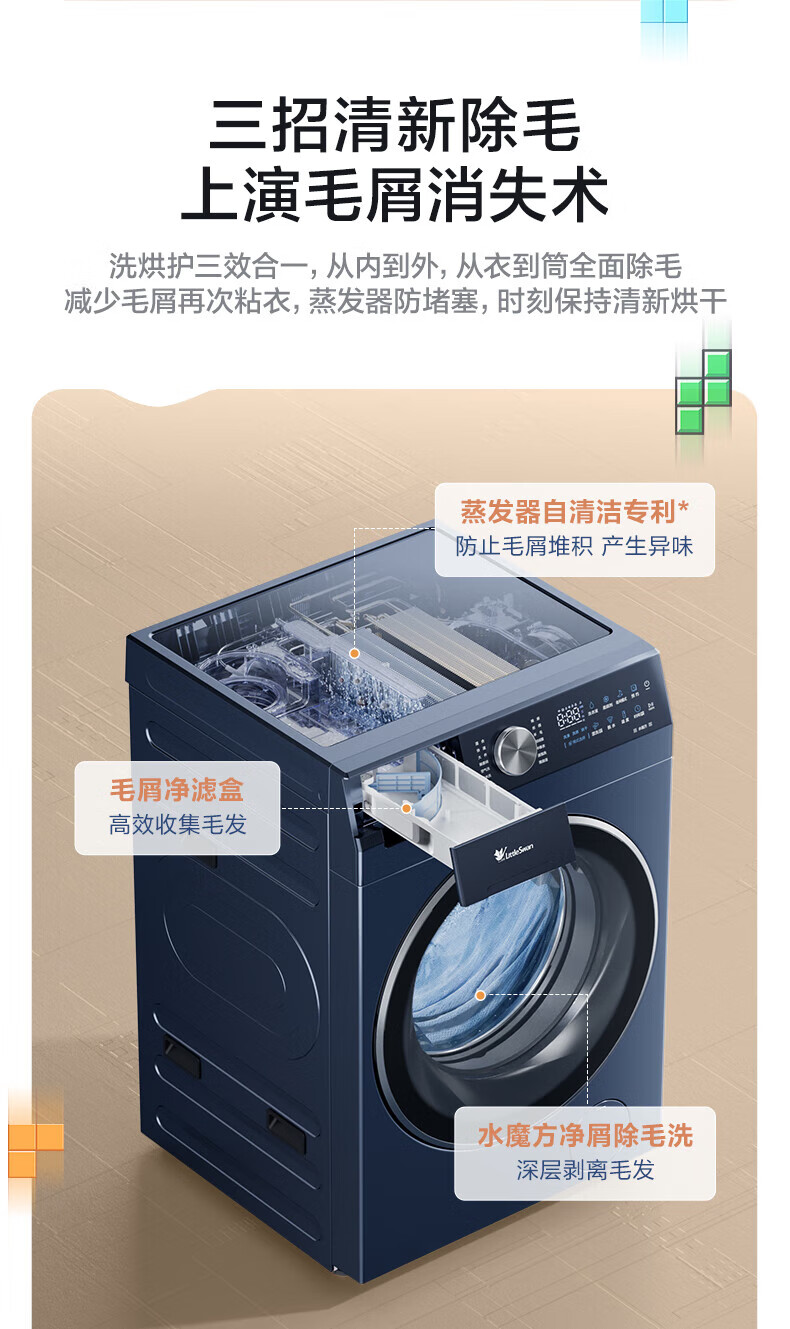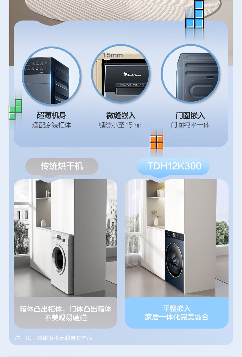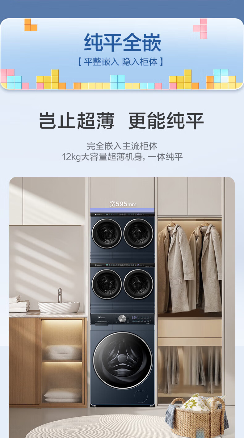 小天鹅(LittleSwan)滚筒洗衣机热泵洗烘一体纯平全嵌水魔方可叠加外挂内衣洗衣机【迷你小乌梅】