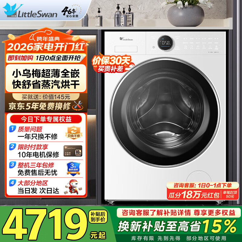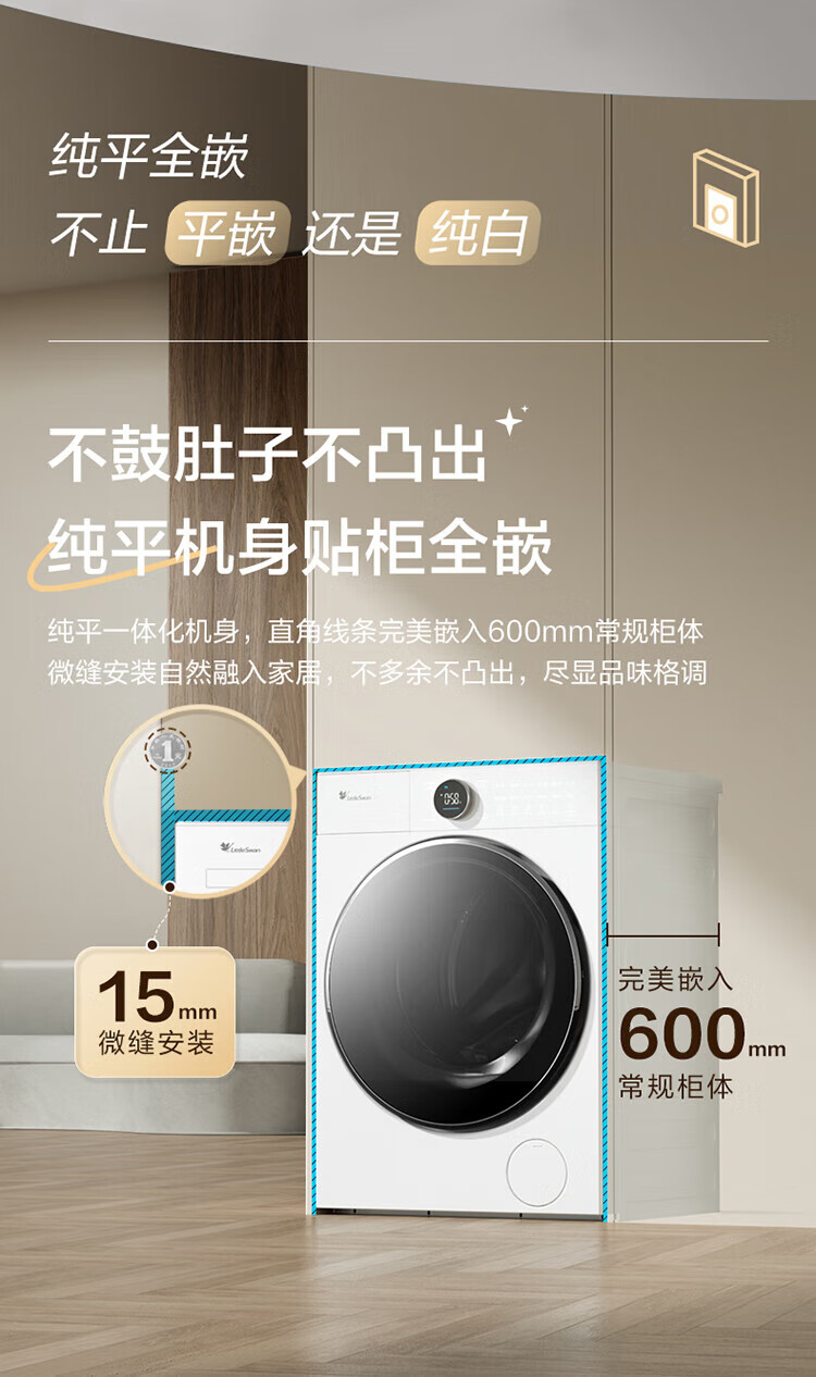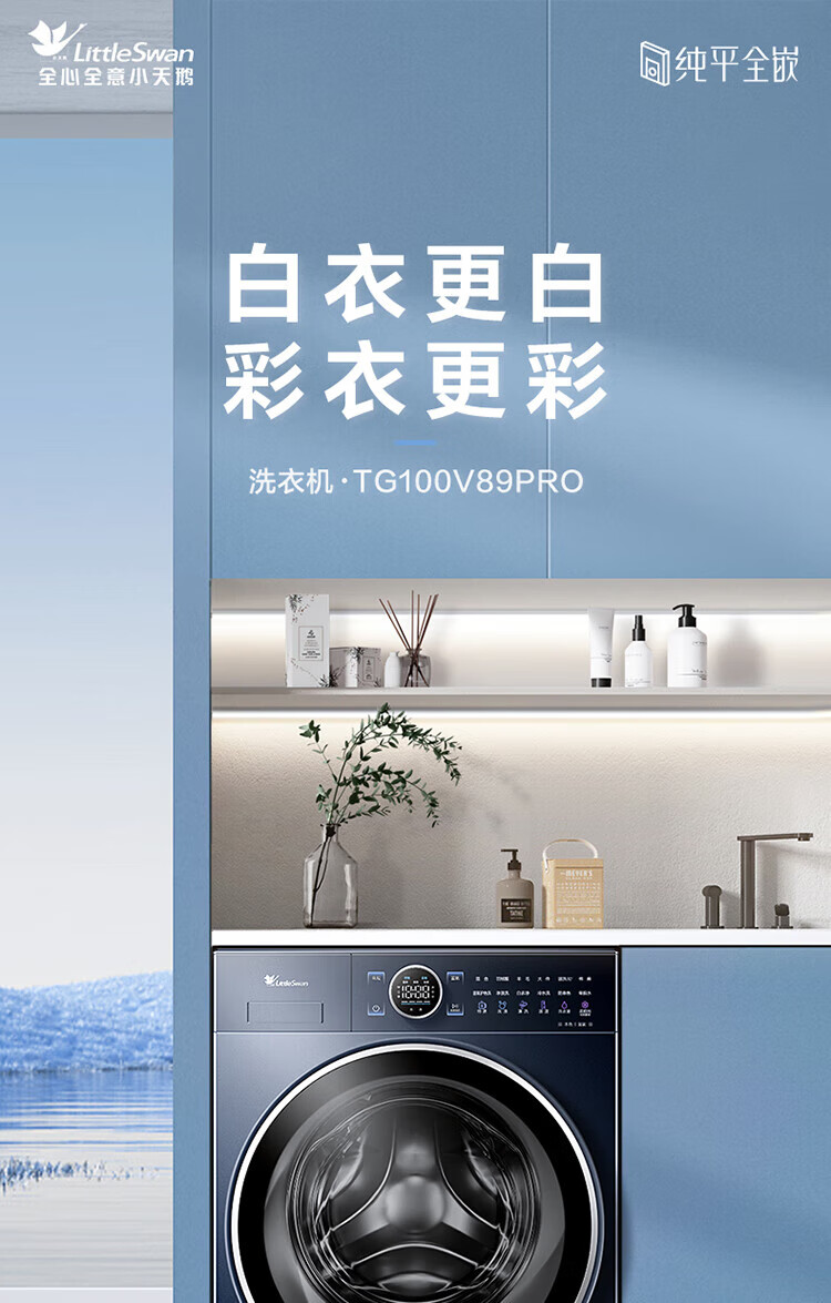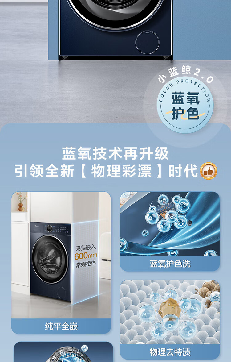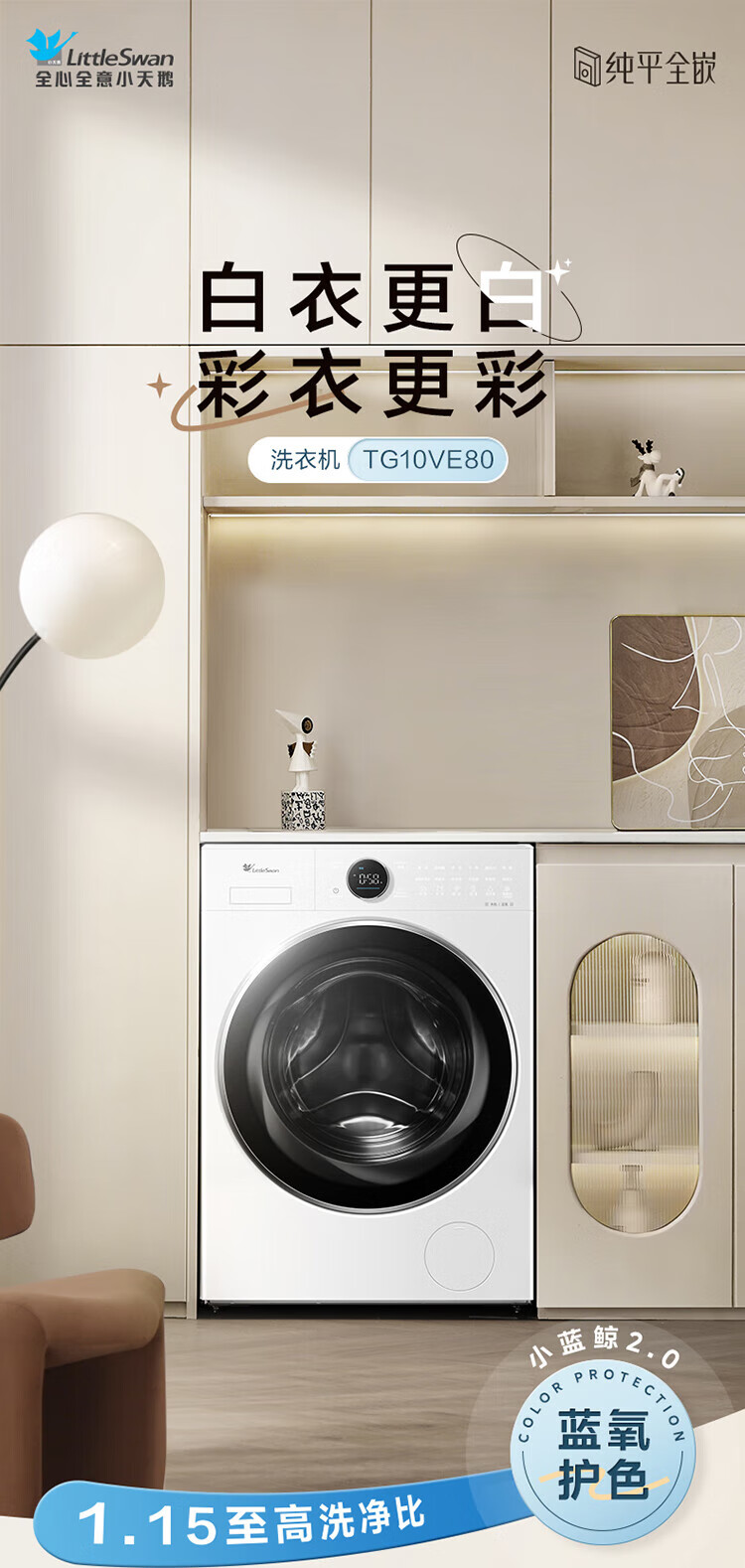 小天鹅(LittleSwan)滚筒洗衣机全自动10KG【小蓝鲸2.0】纯平全嵌蓝氧防串色 银离子除菌 家电补贴