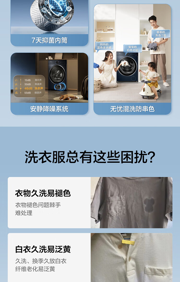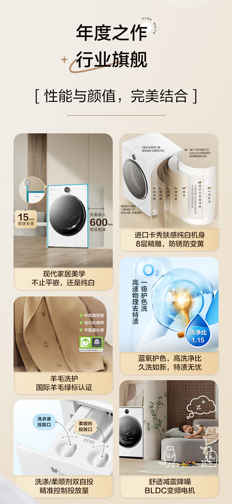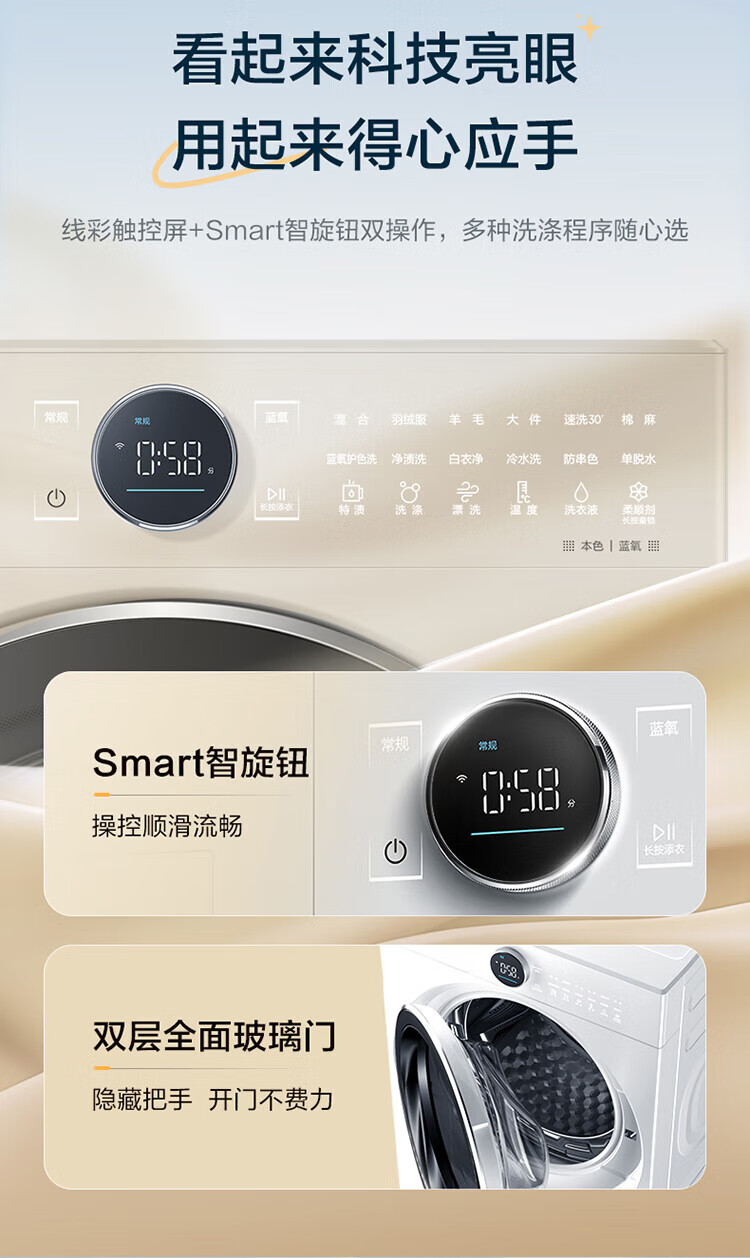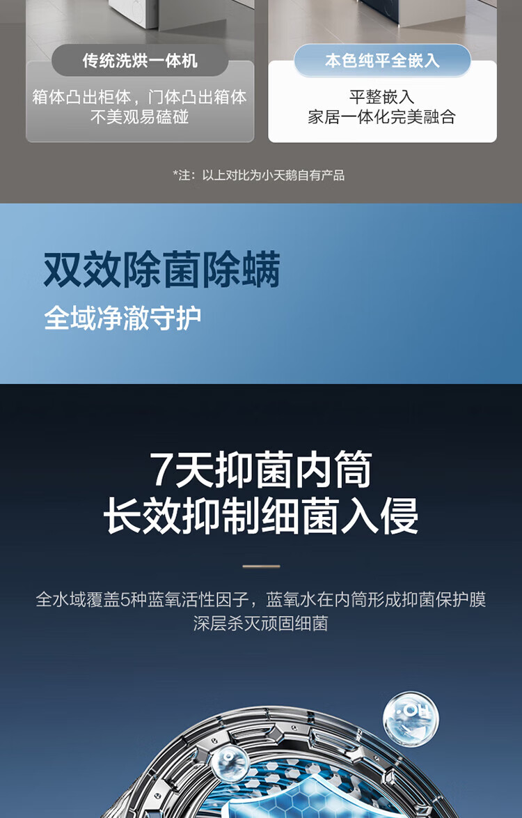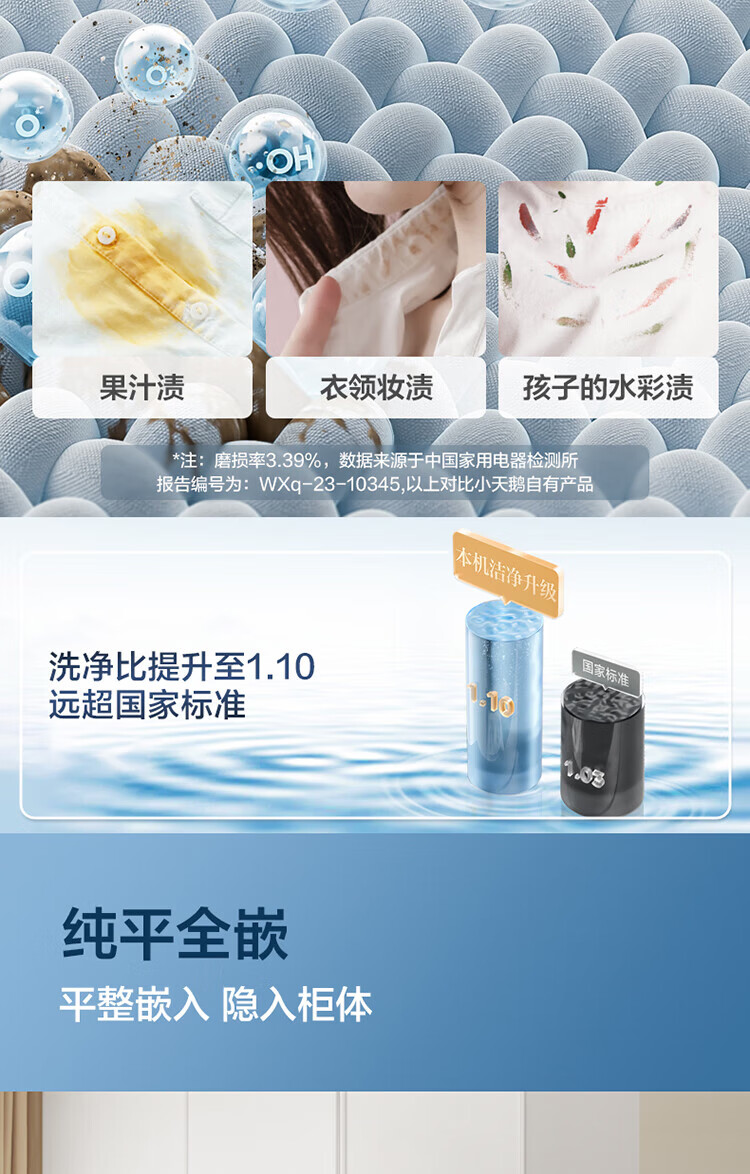 小天鹅(LittleSwan)滚筒洗衣机全自动10KG【小蓝鲸2.0】纯平全嵌蓝氧防串色 银离子除菌 家电补贴