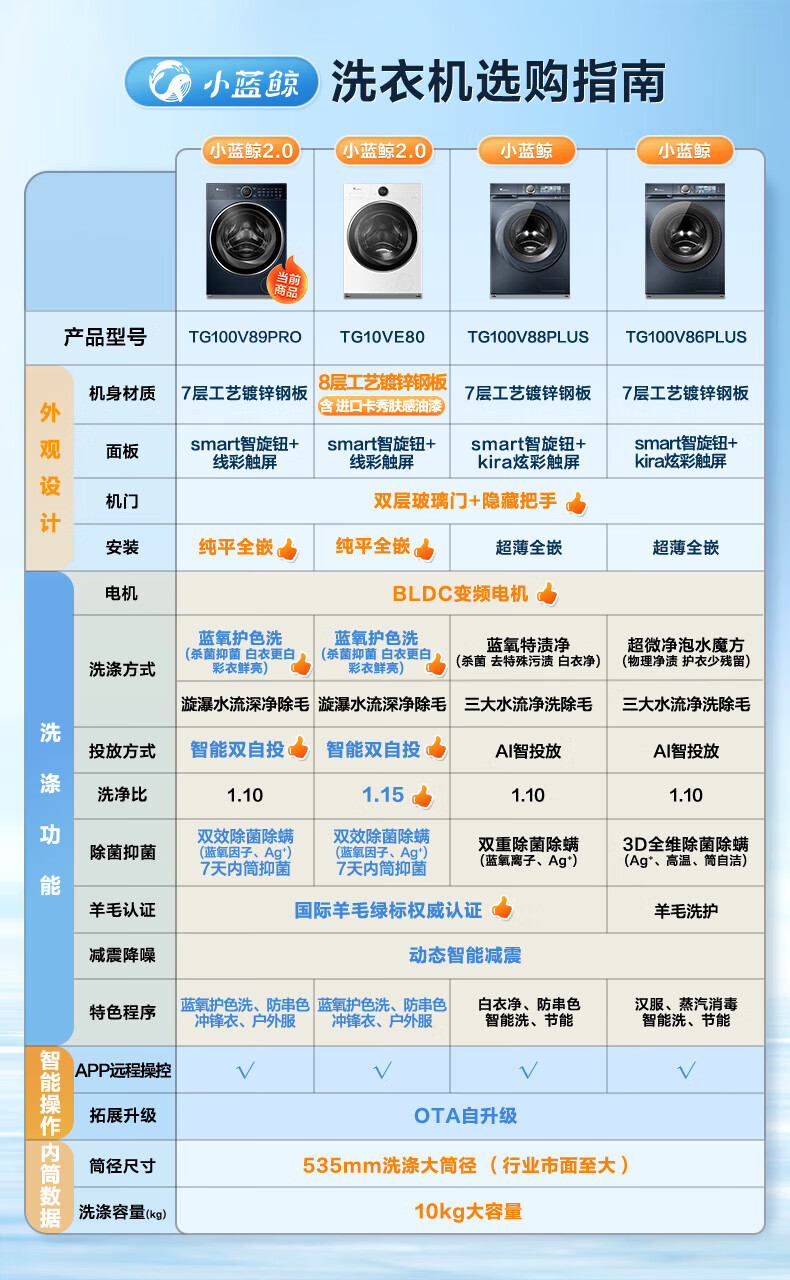 TG100V89PRO 单洗 10kg 小蓝鲸2.0