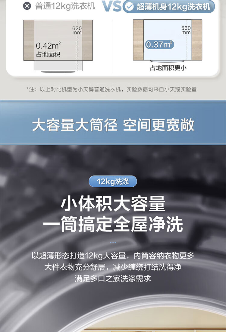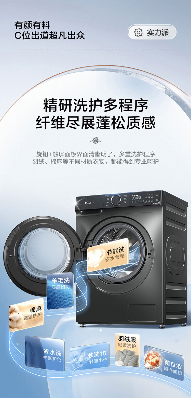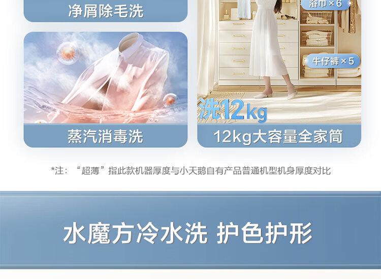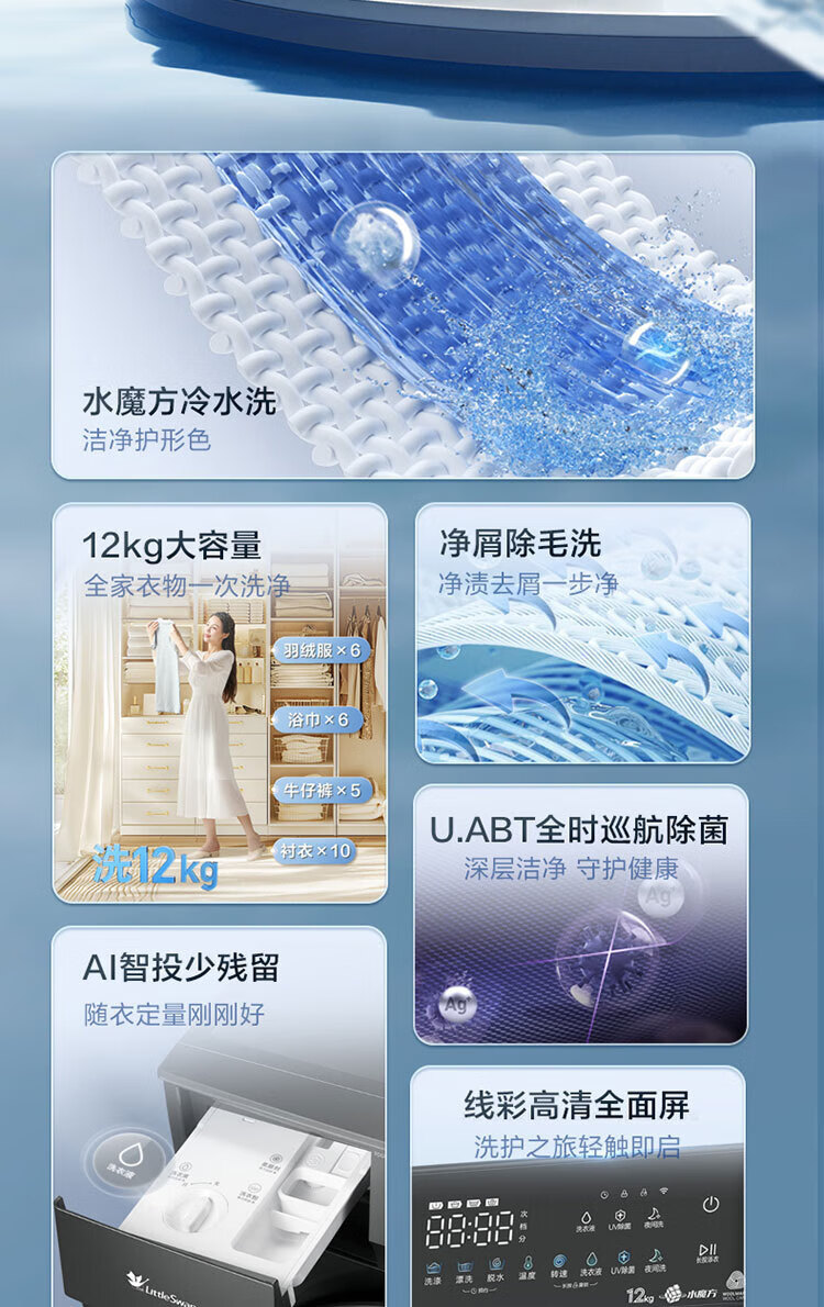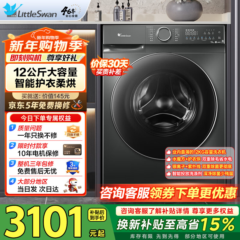 小天鹅(LittleSwan)滚筒洗衣机全自动12KG大容量家用 智能投放 水魔方护色护形巡航除菌除毛换新补贴15%