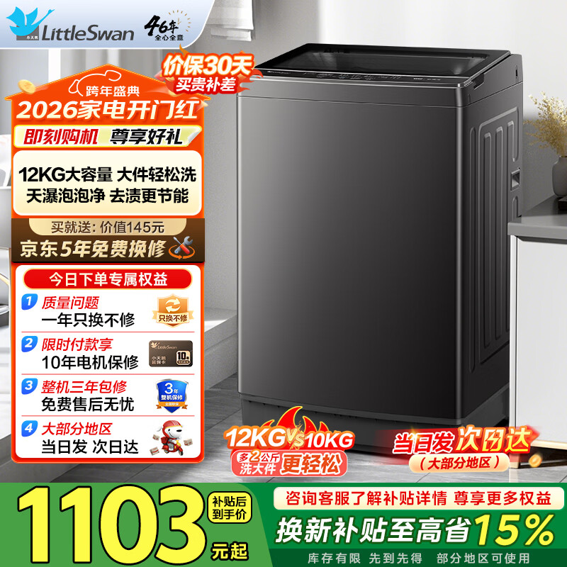 小天鹅(LittleSwan)洗衣机波轮全自动10/12KG大容量 智能预约一键智洗省水省电宿舍租房家用 以旧换新
