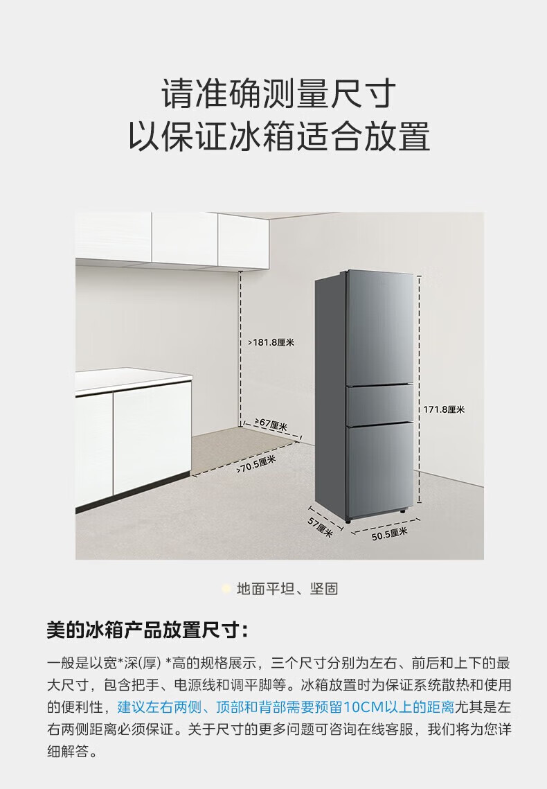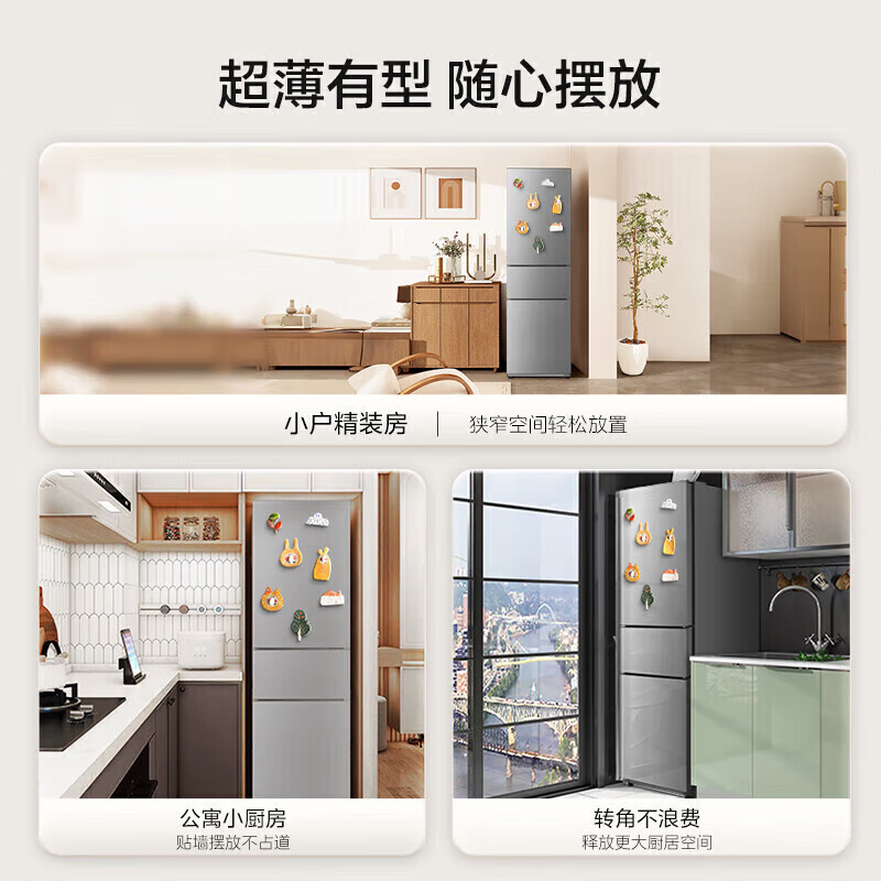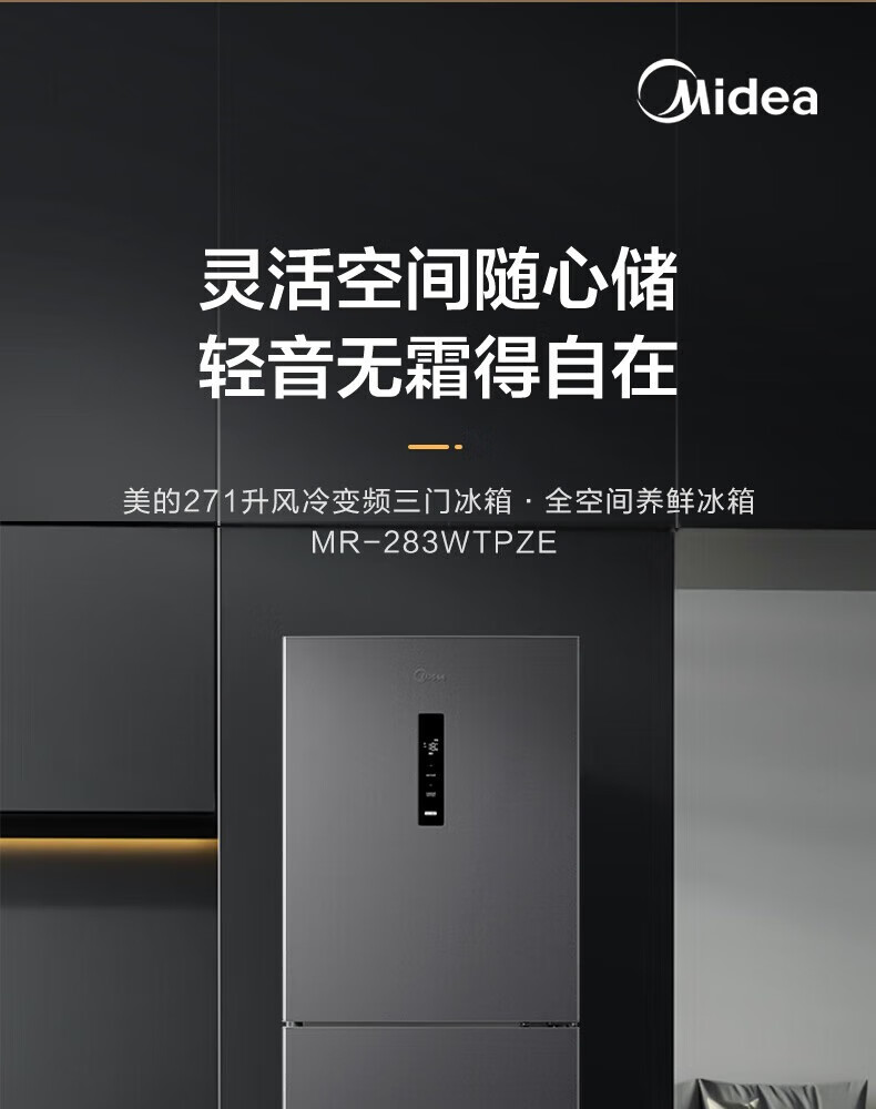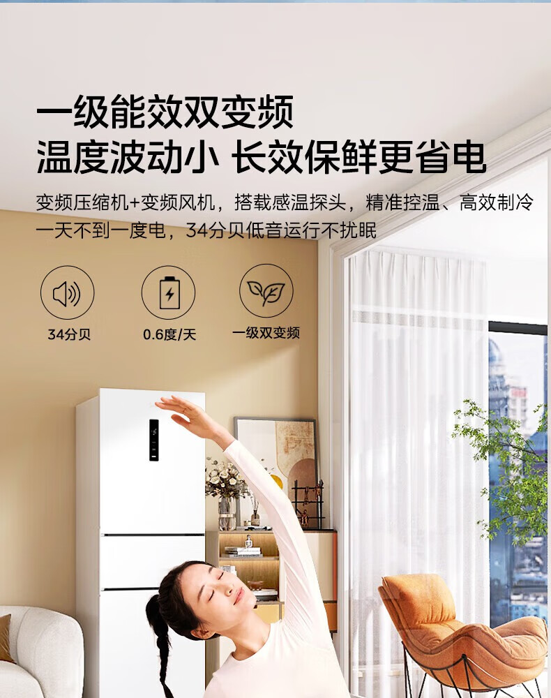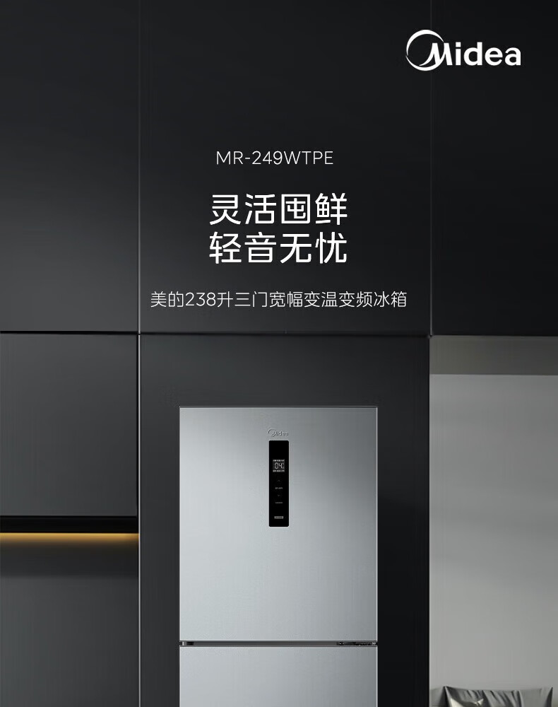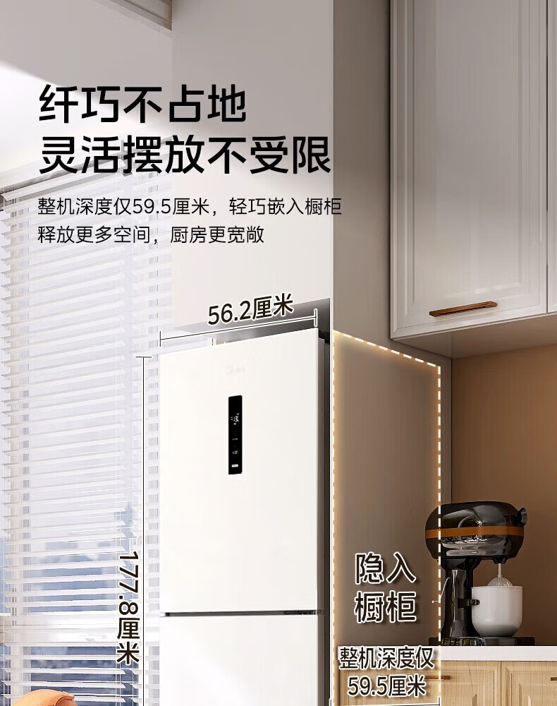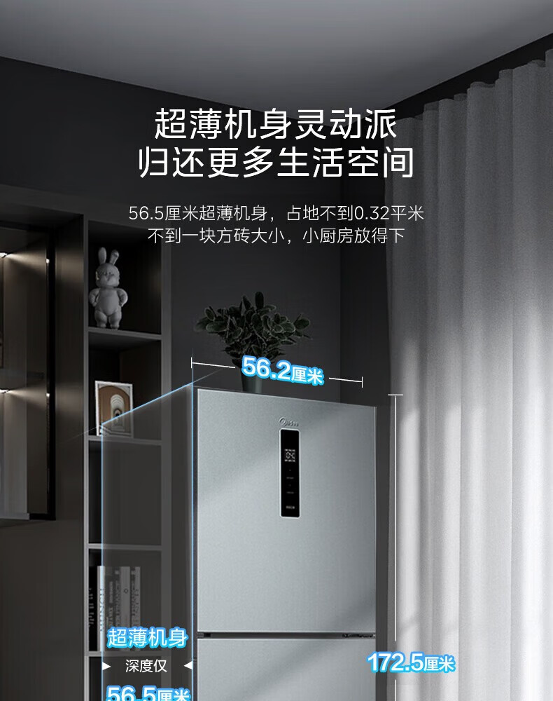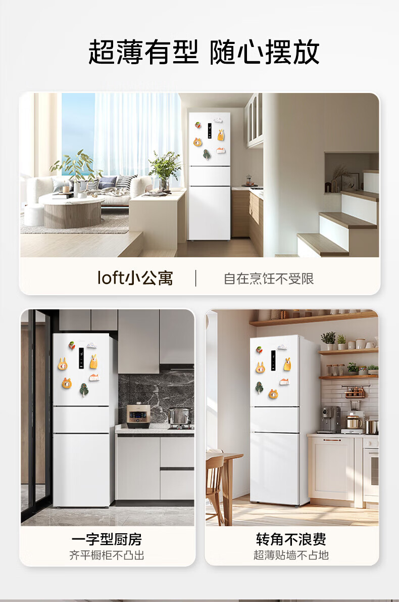 美的冰箱220三门三温家用客厅宿舍小型冰箱中门软冷冻节能省电低音低噪出租房电冰箱BCD-220TM