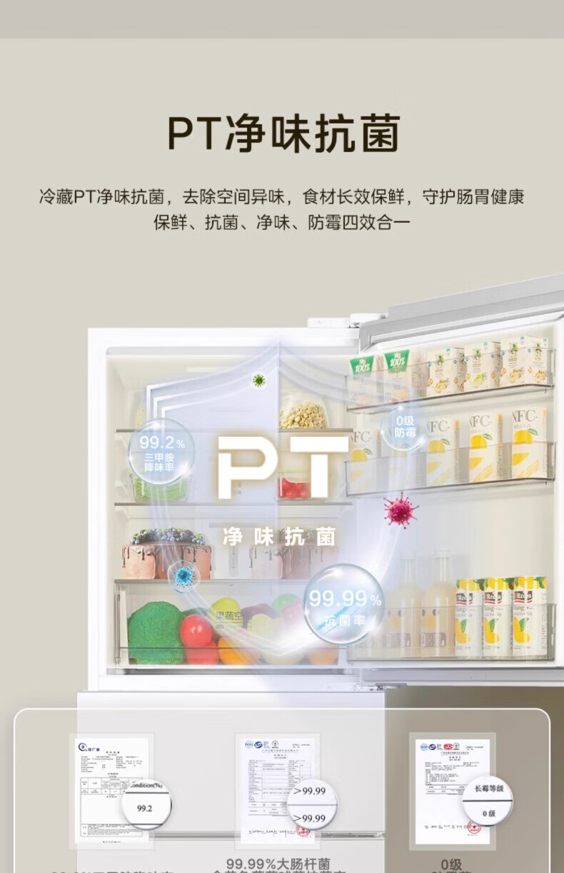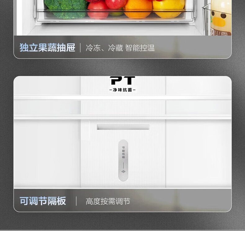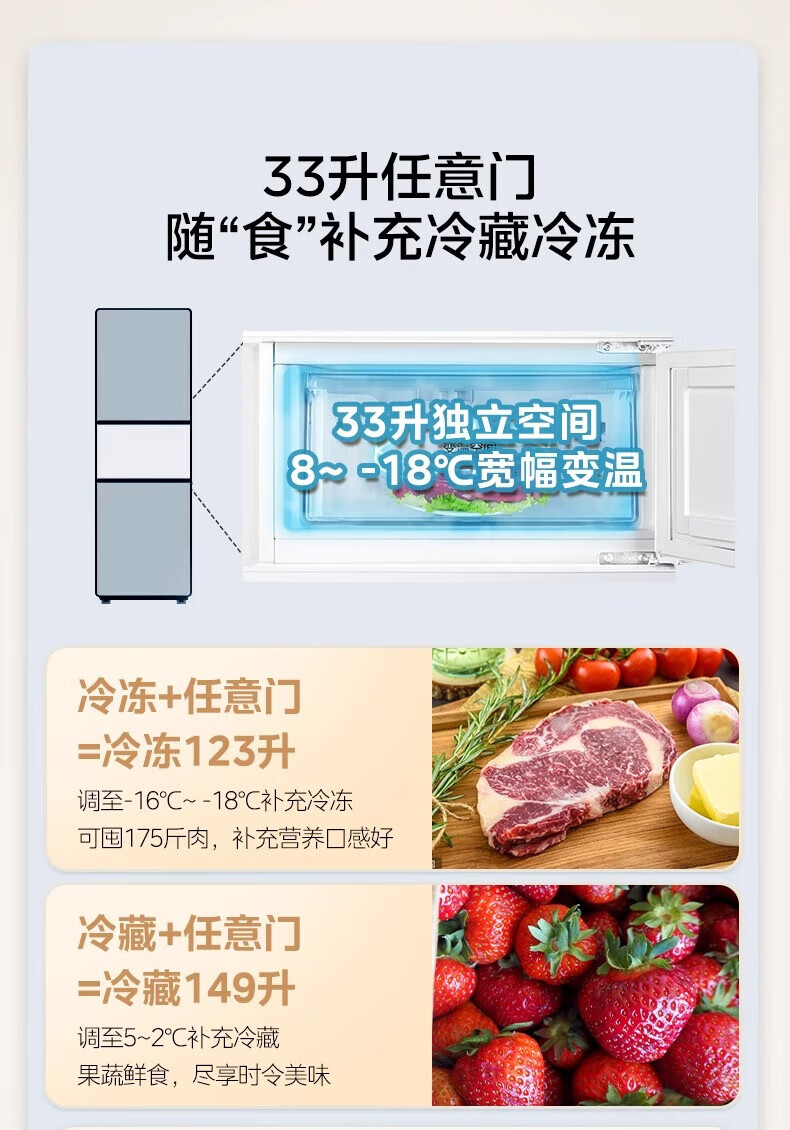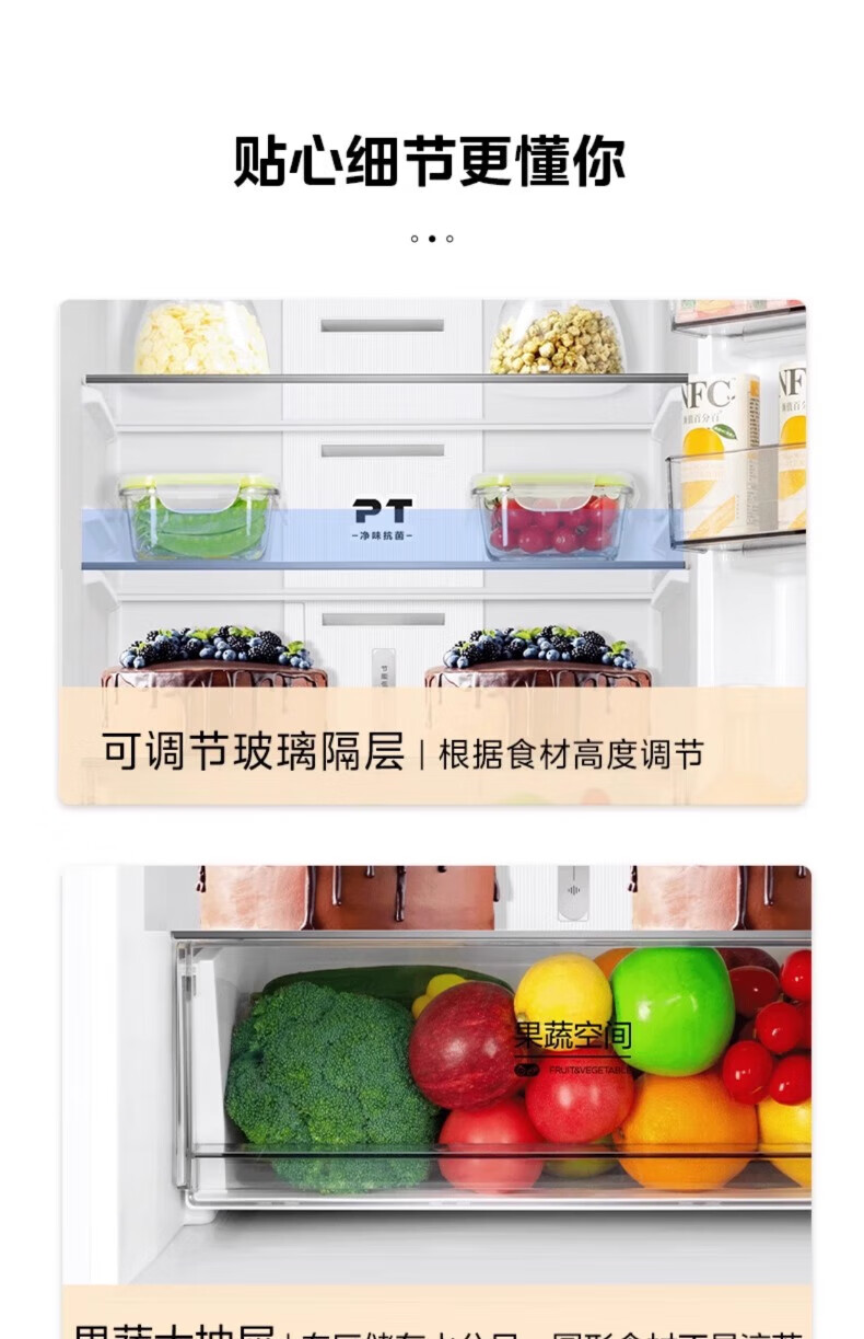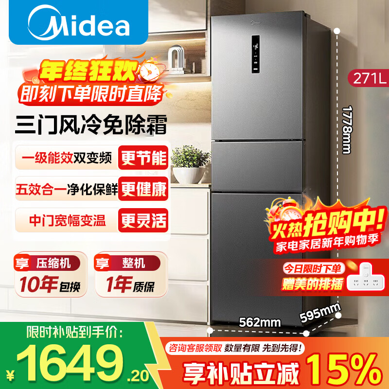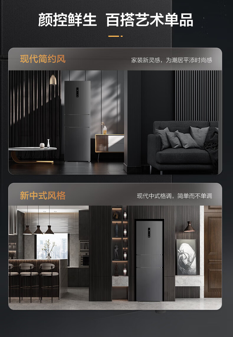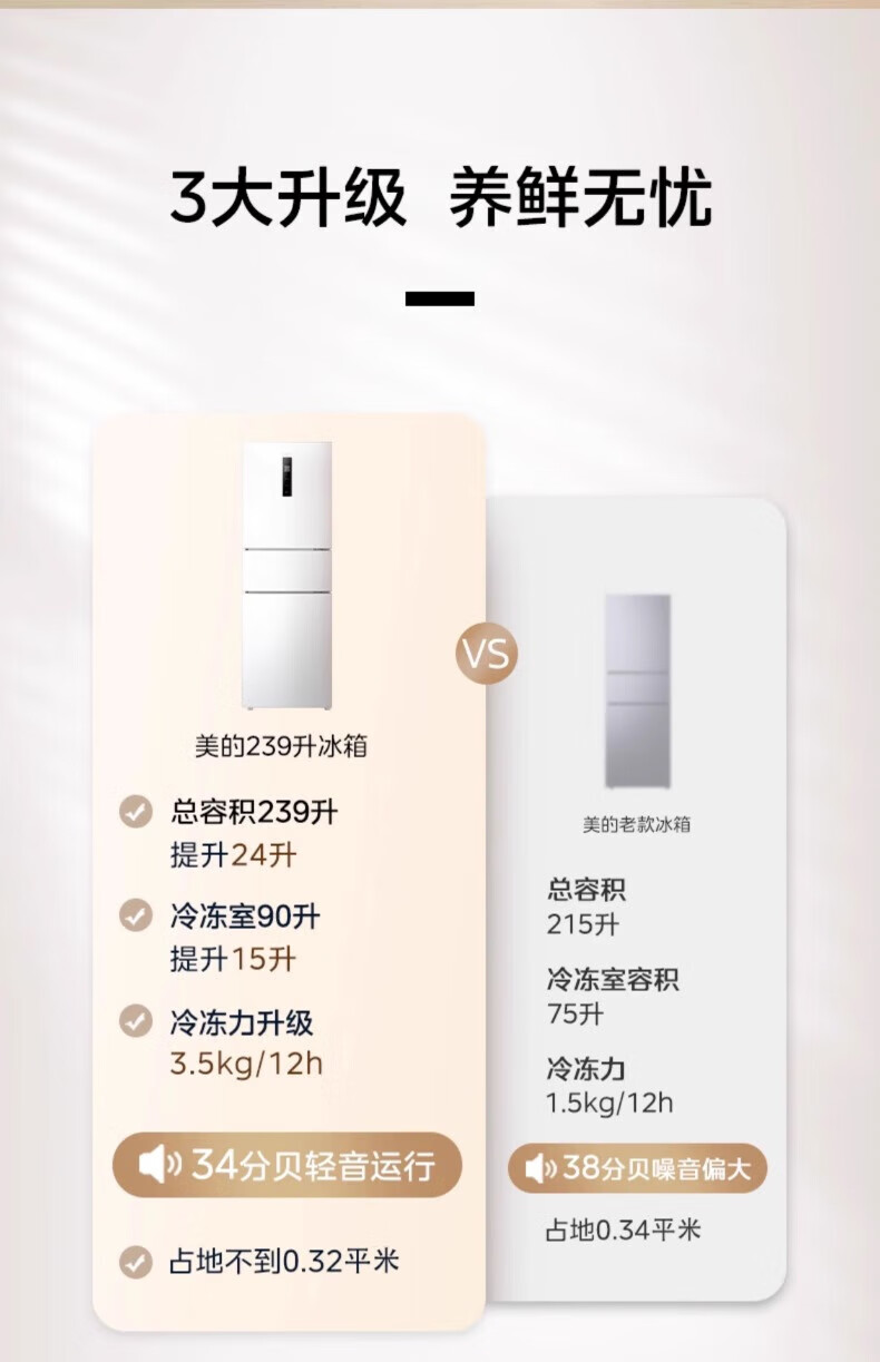 美的冰箱220三门三温家用客厅宿舍小型冰箱中门软冷冻节能省电低音低噪出租房电冰箱BCD-220TM