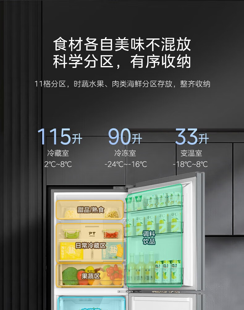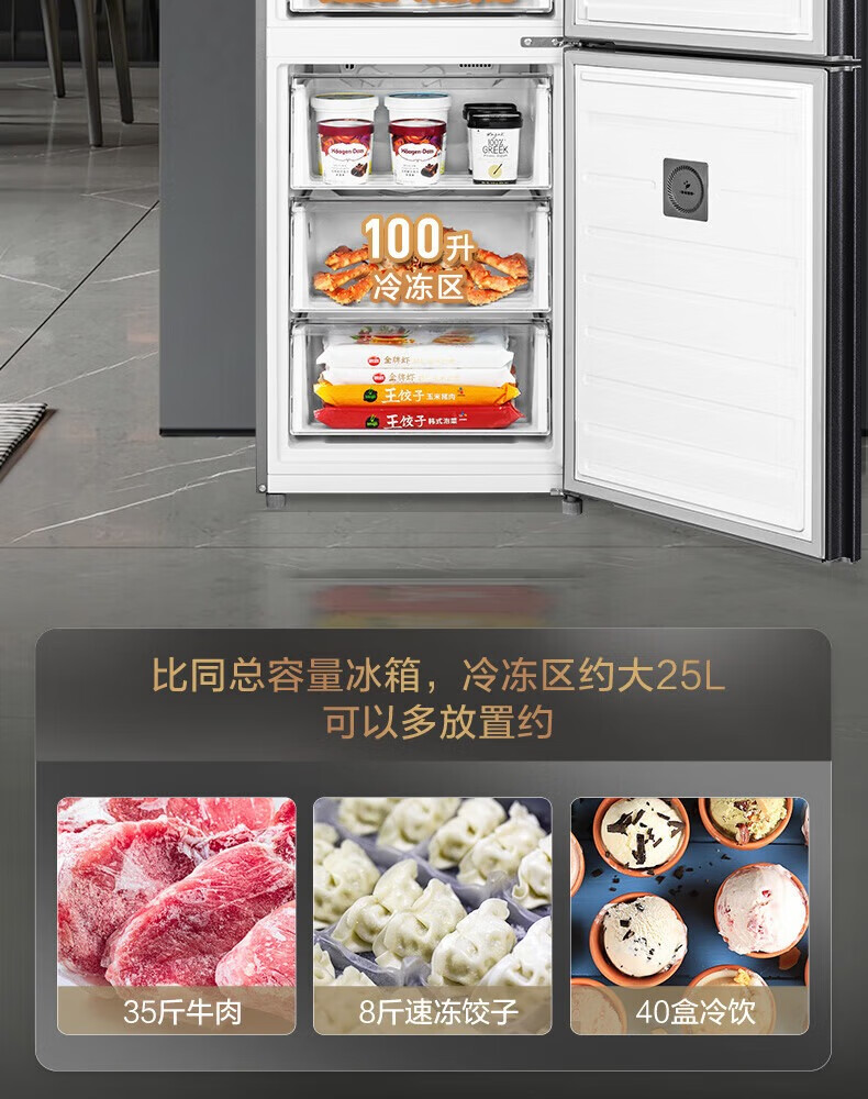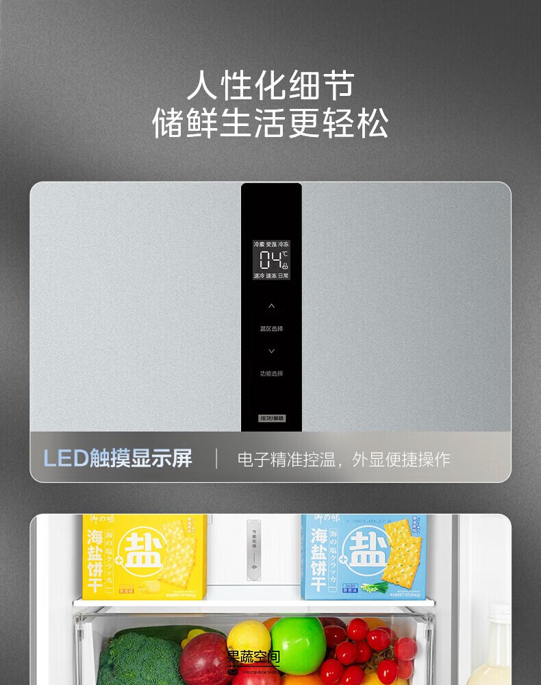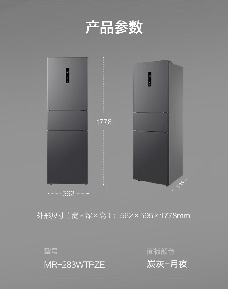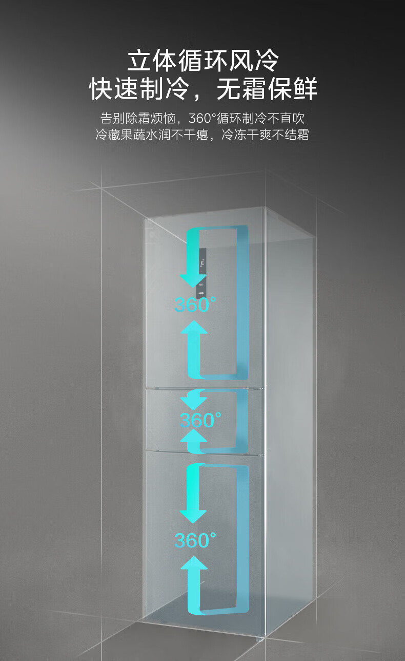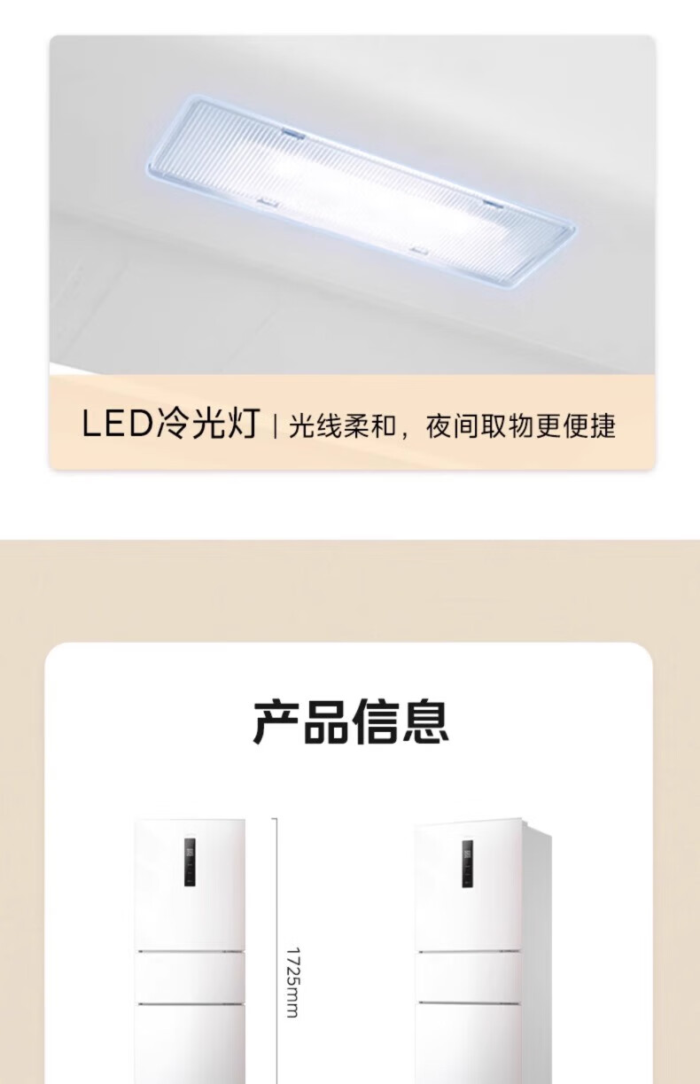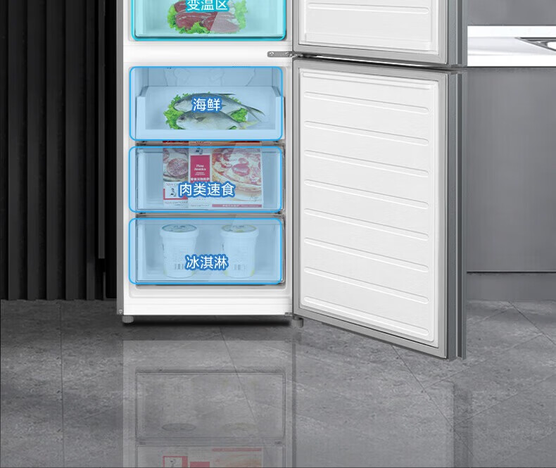 美的冰箱220三门三温家用客厅宿舍小型冰箱中门软冷冻节能省电低音低噪出租房电冰箱BCD-220TM
