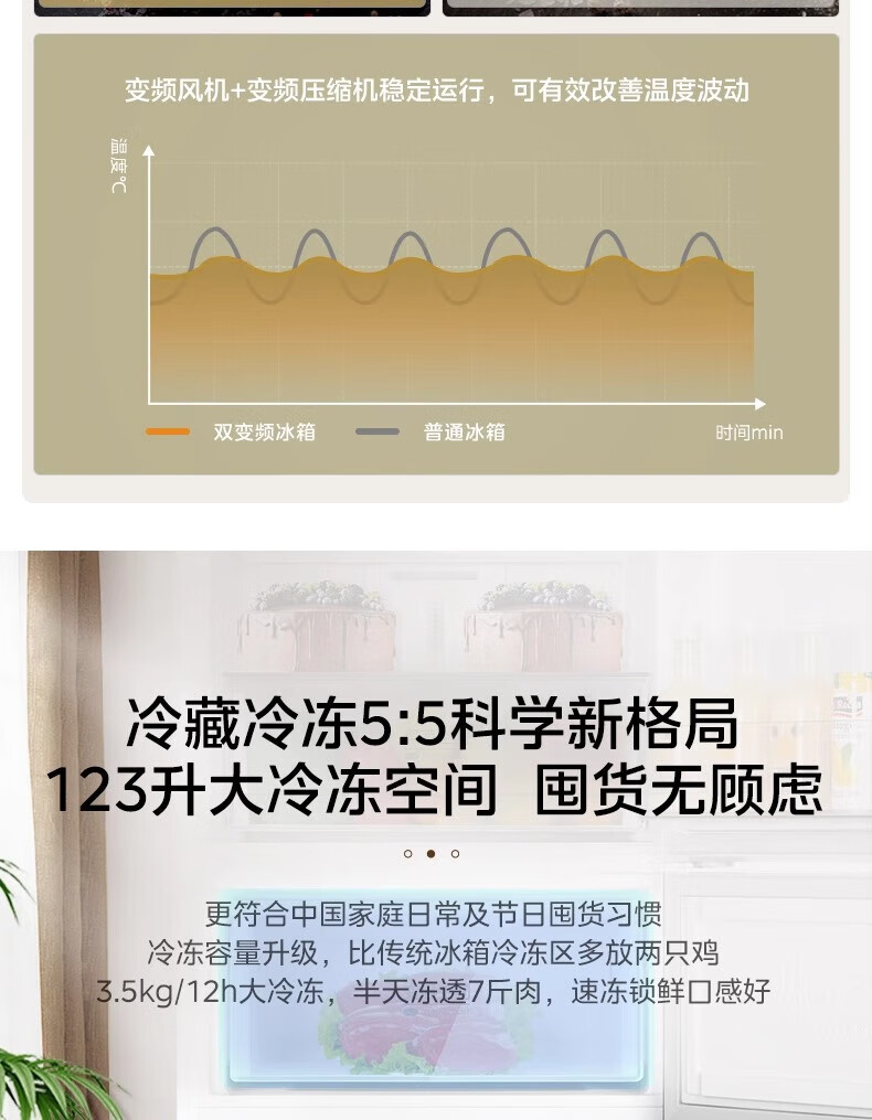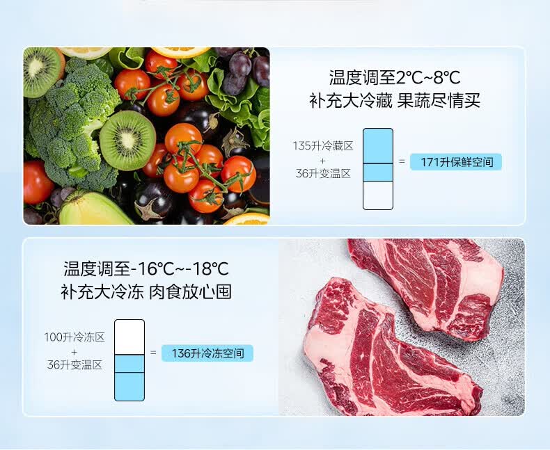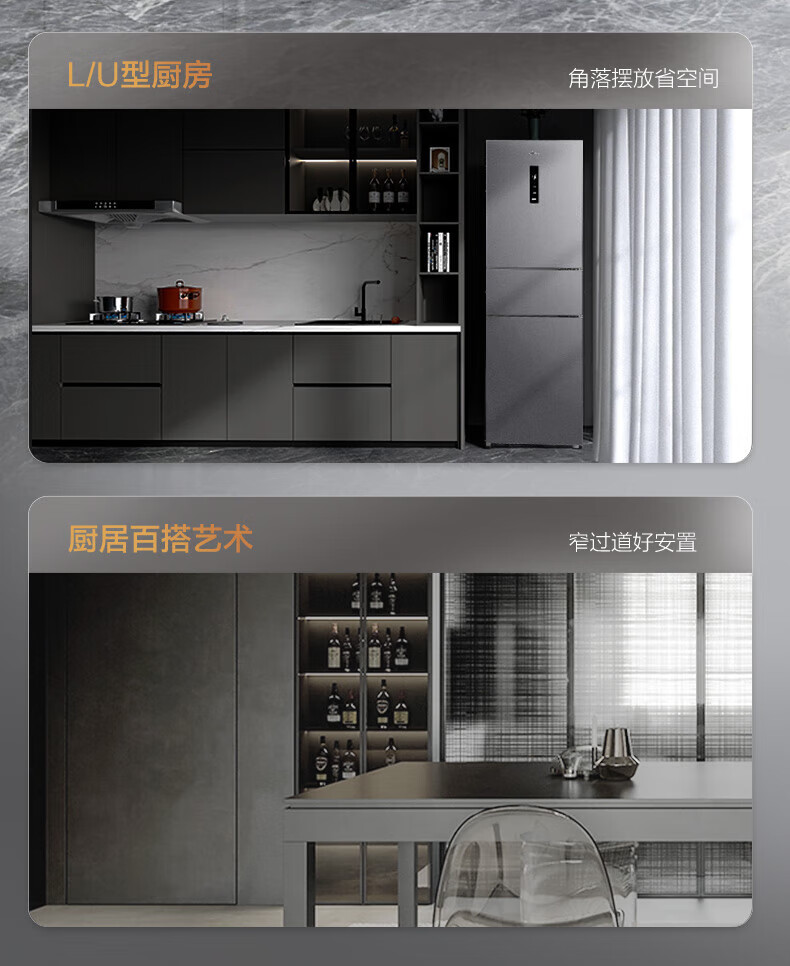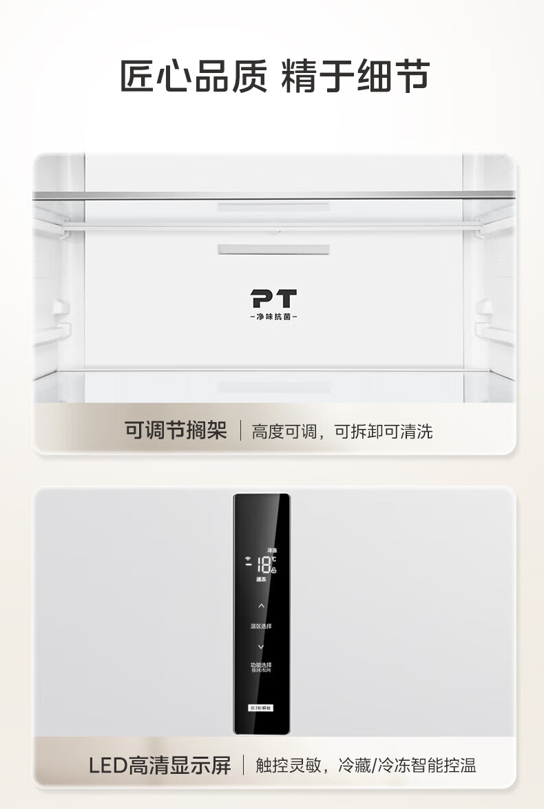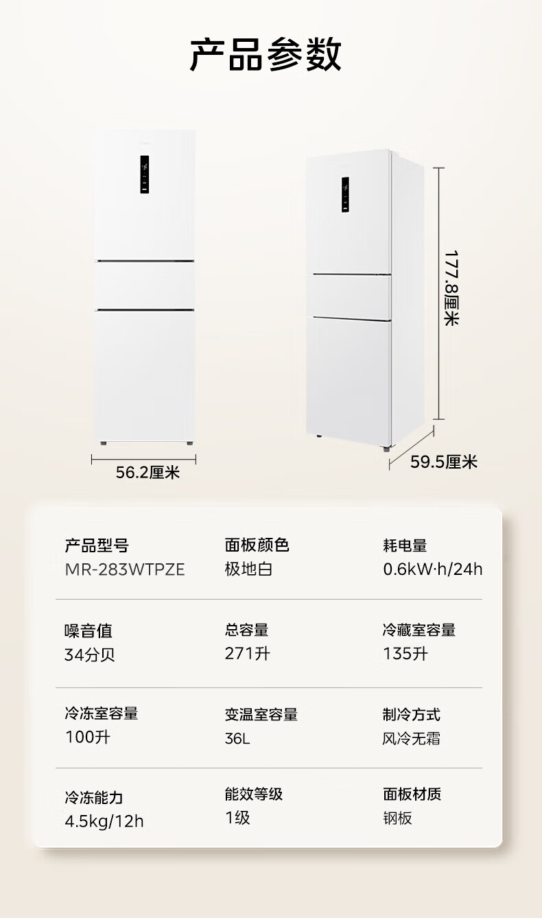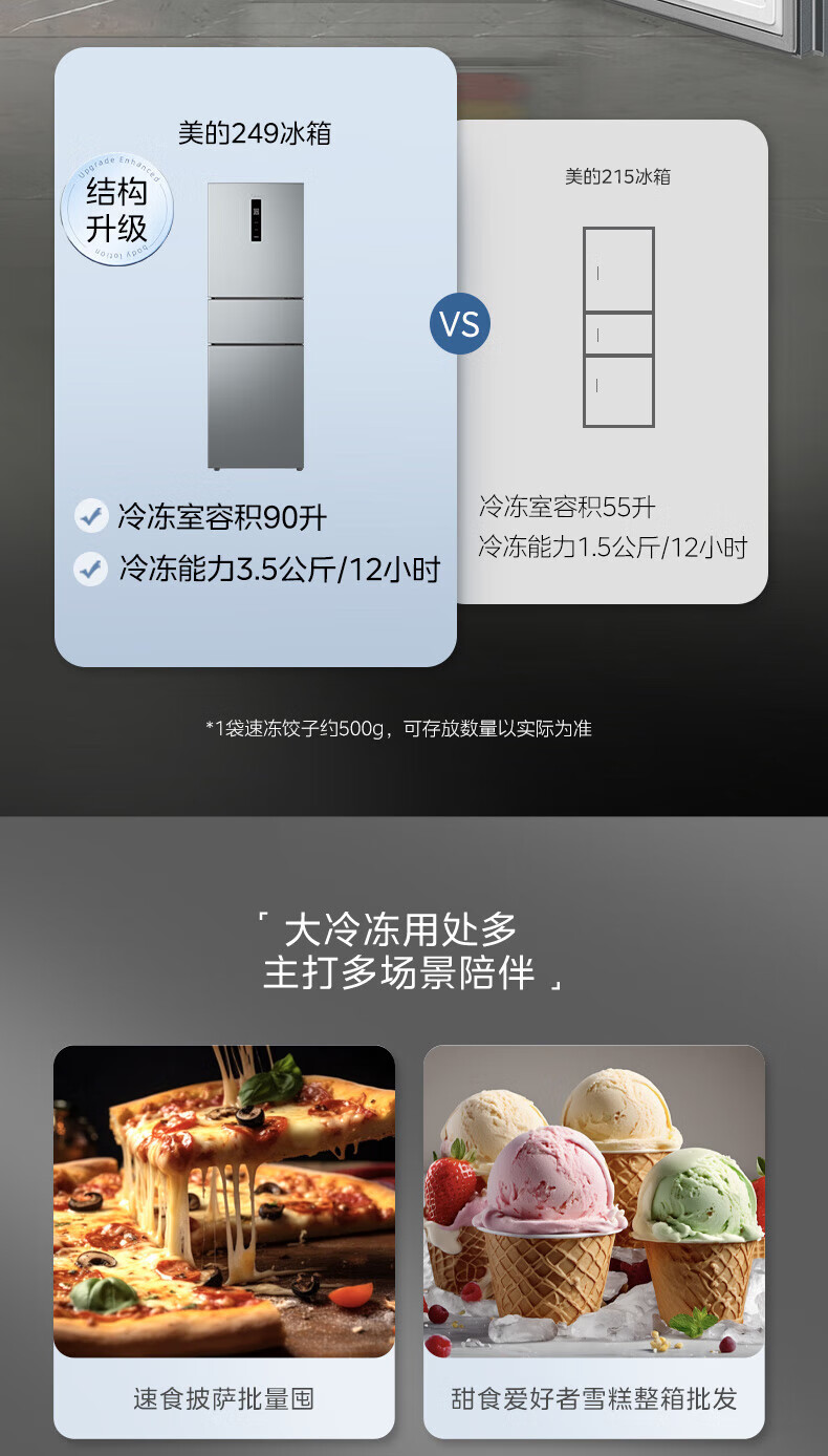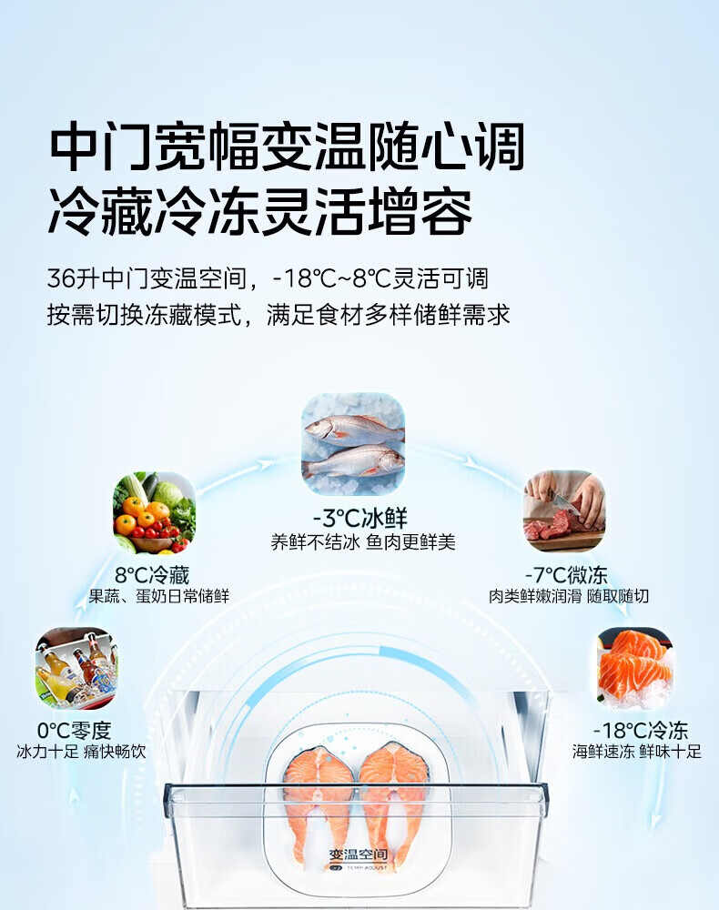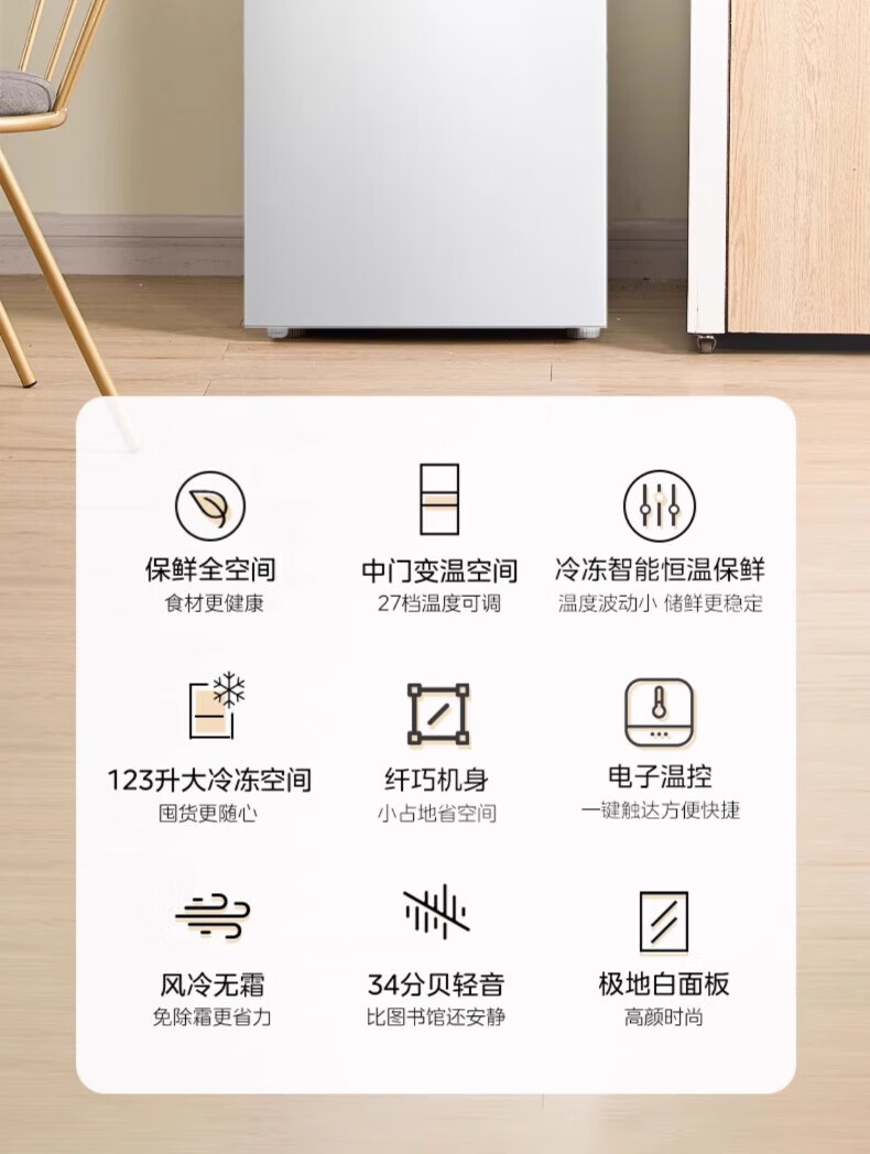 美的冰箱220三门三温家用客厅宿舍小型冰箱中门软冷冻节能省电低音低噪出租房电冰箱BCD-220TM