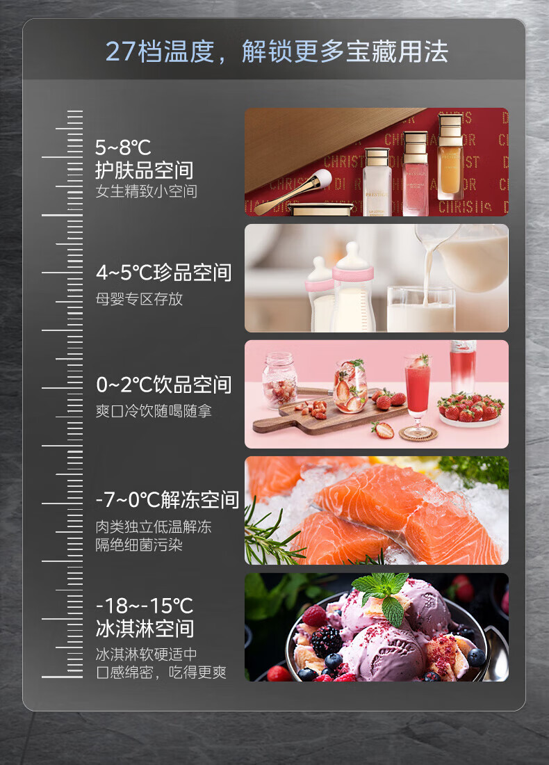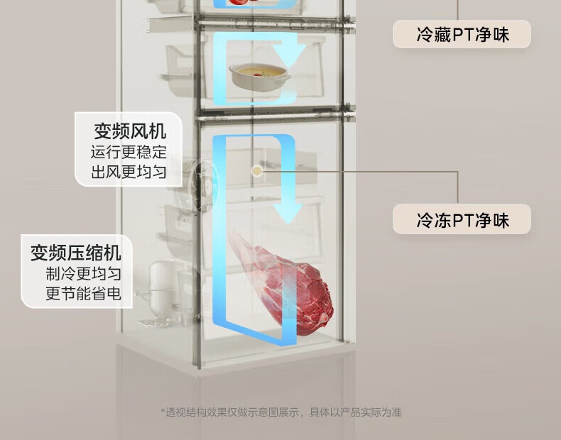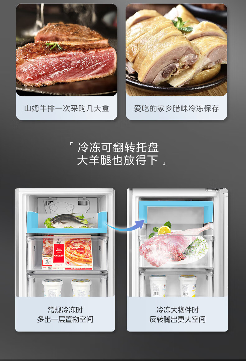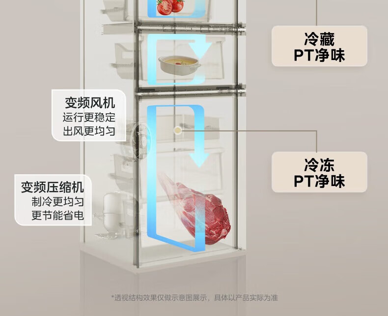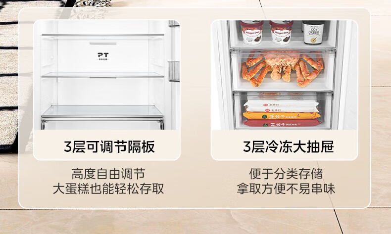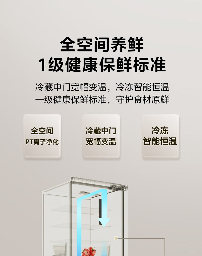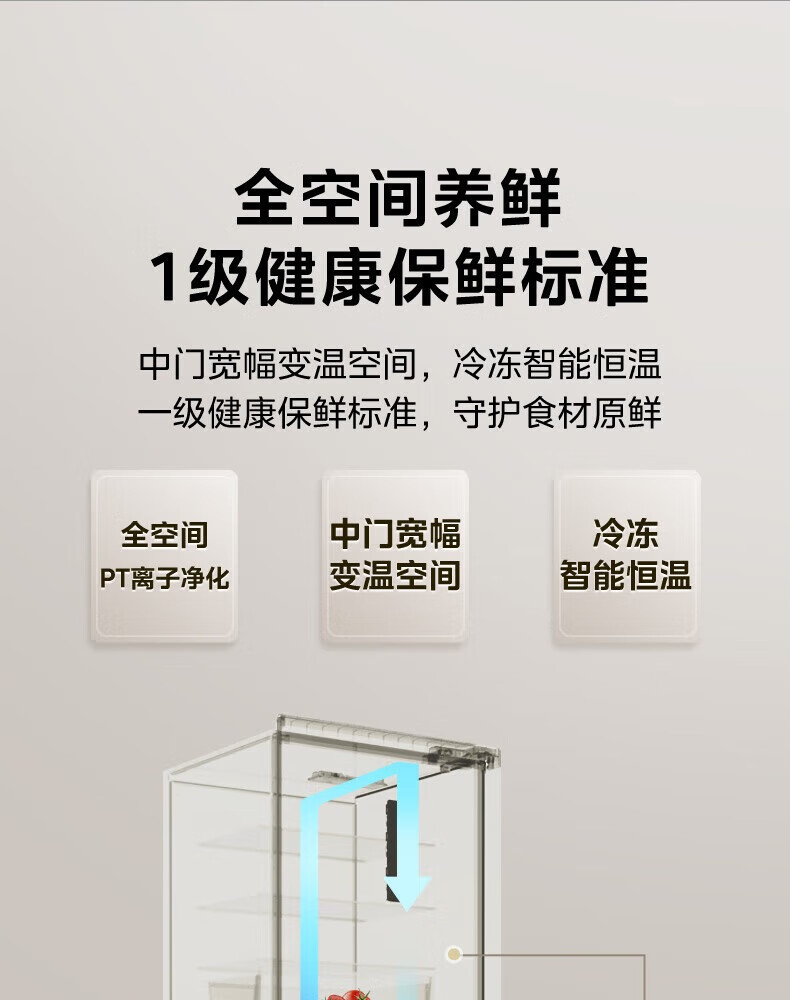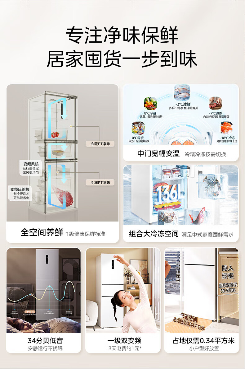 美的冰箱220三门三温家用客厅宿舍小型冰箱中门软冷冻节能省电低音低噪出租房电冰箱BCD-220TM