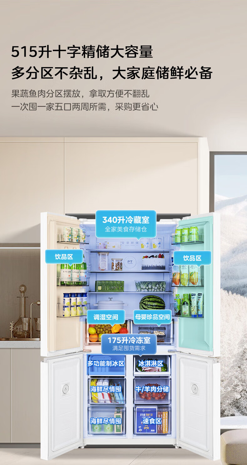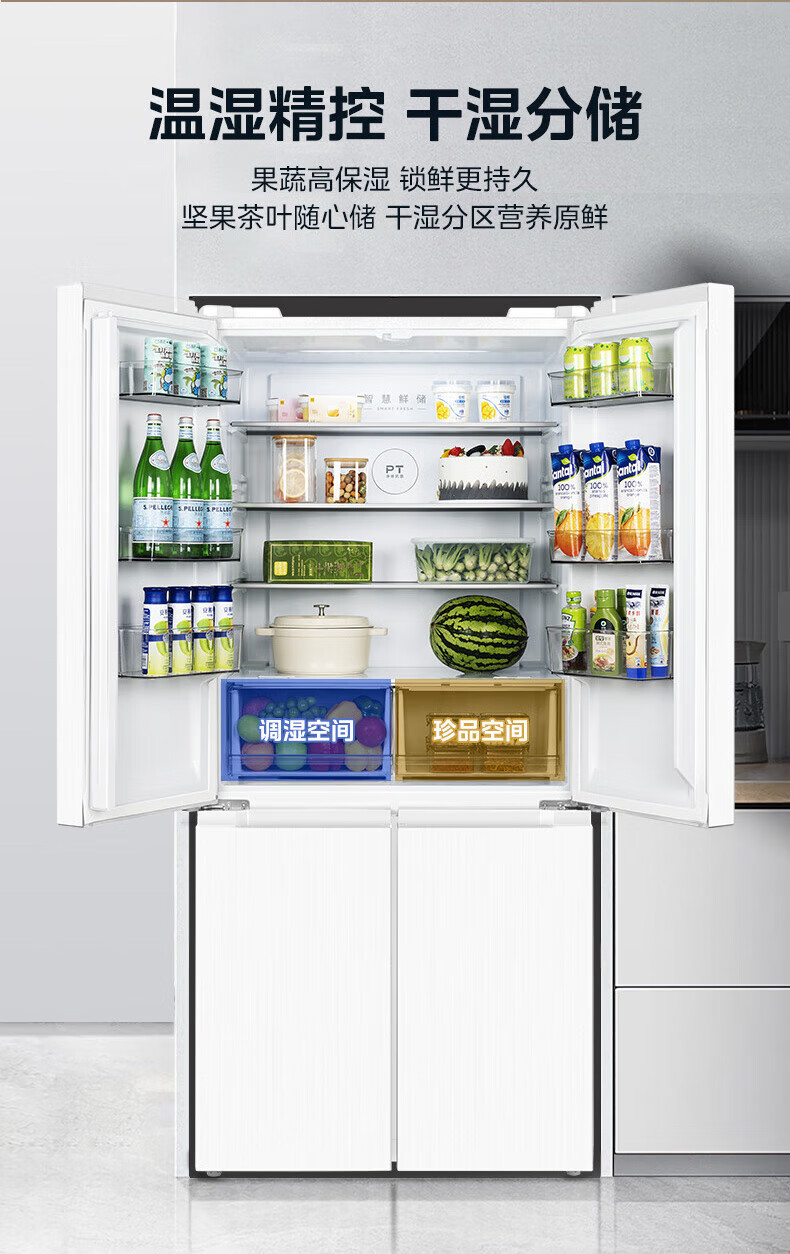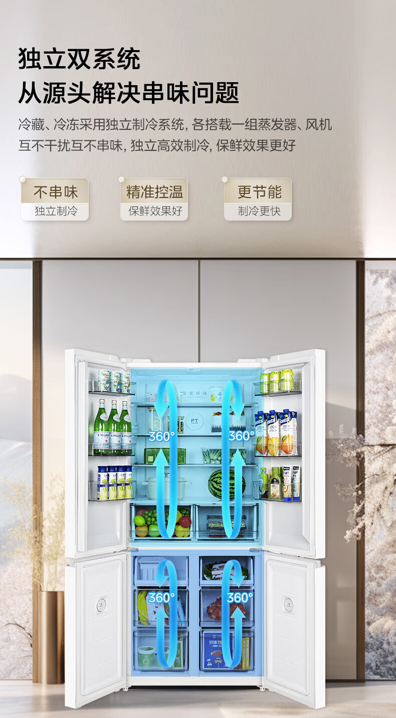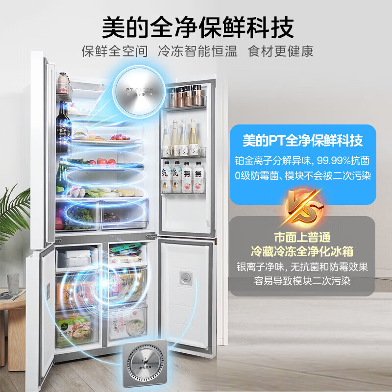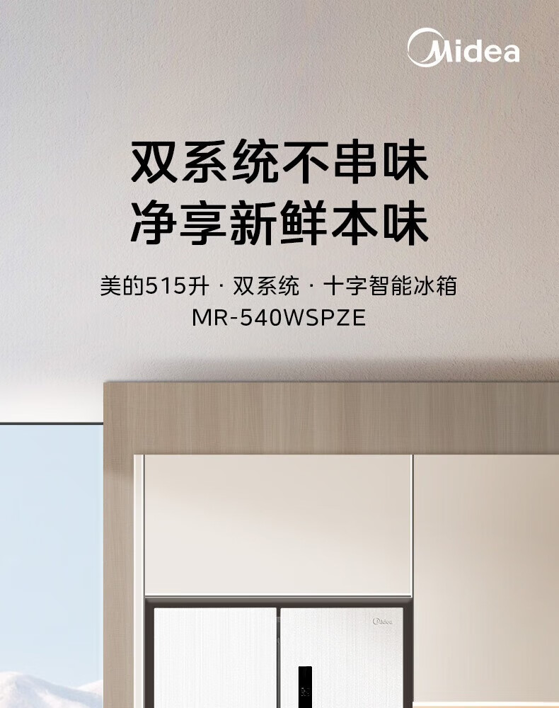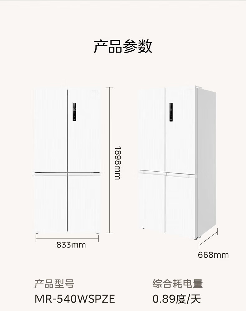 美的(Midea)冰箱540十字对开四开门冰箱一级能效双系统双循环风冷无霜独立制冰舱国家补贴大容量家用冰箱 【闪电新品】MR-540WSPZE流苏白