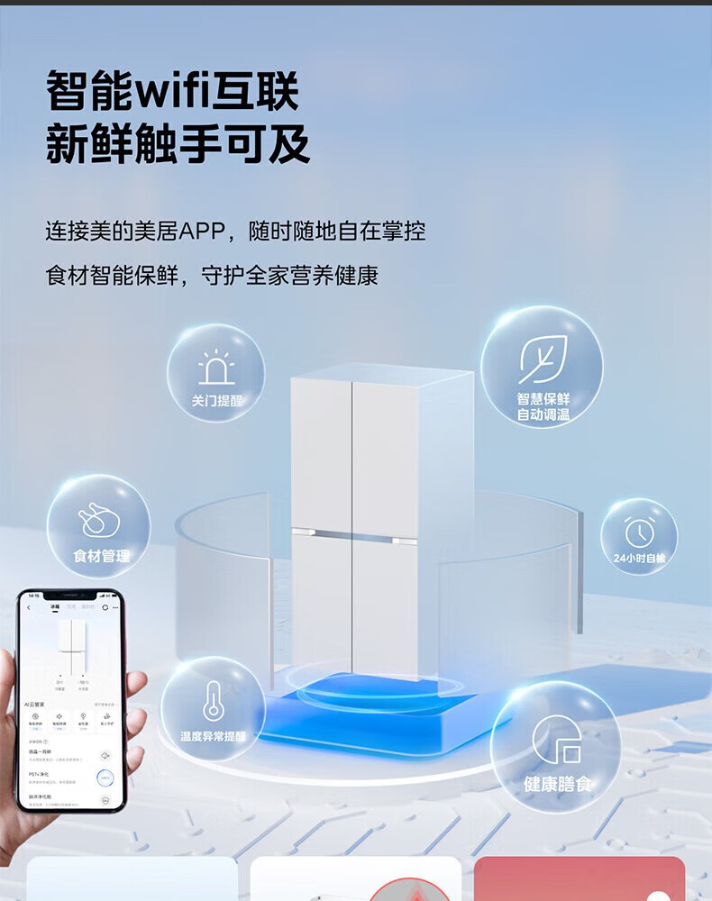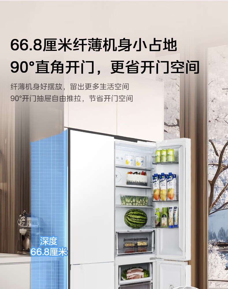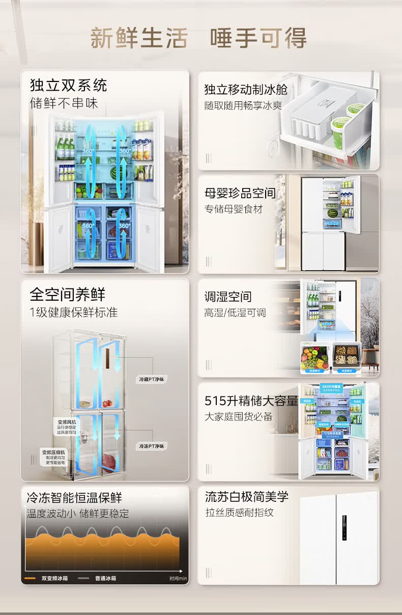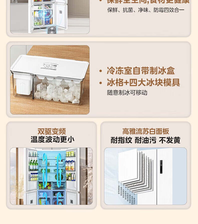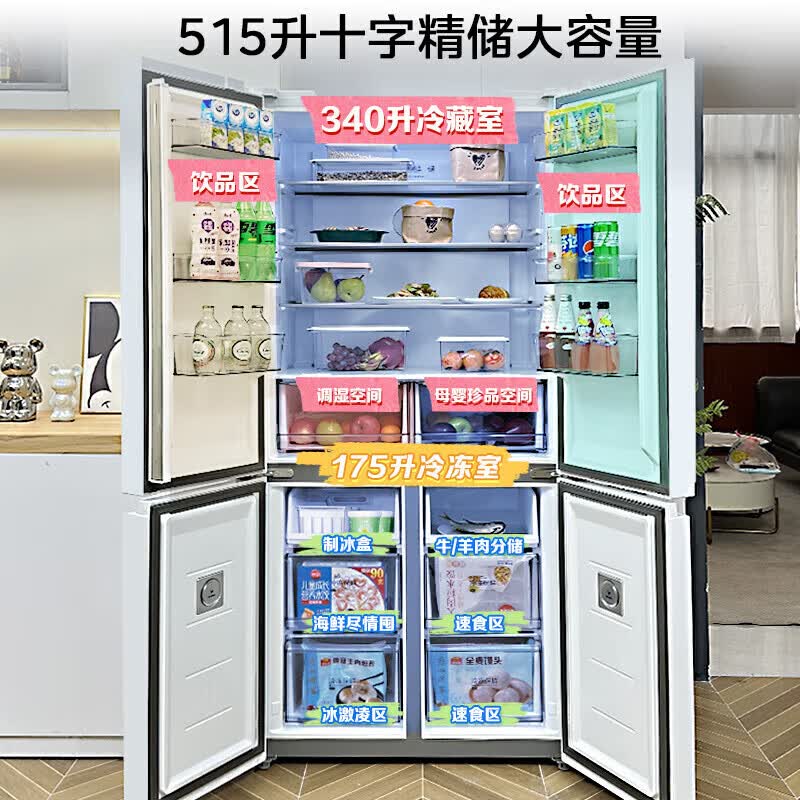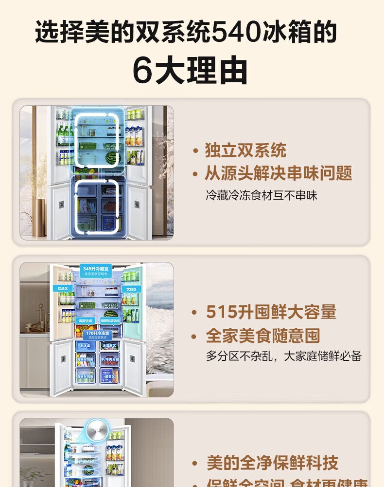 美的(Midea)冰箱540十字对开四开门冰箱一级能效双系统双循环风冷无霜独立制冰舱国家补贴大容量家用冰箱 【闪电新品】MR-540WSPZE流苏白