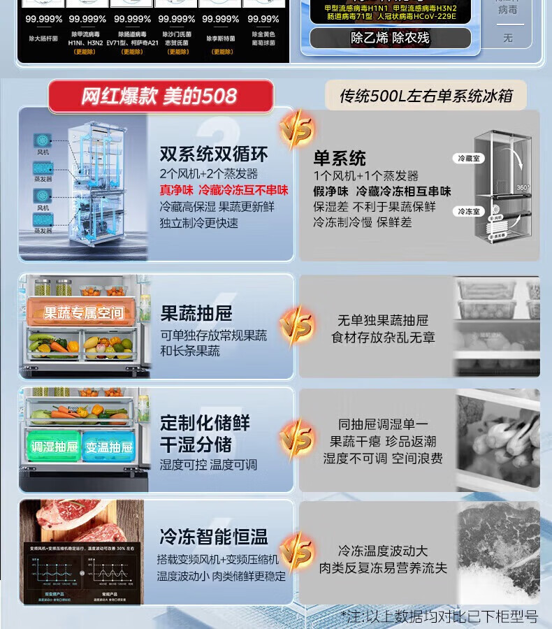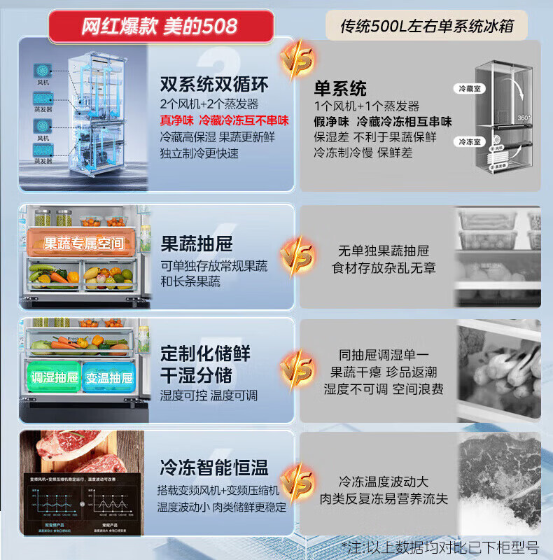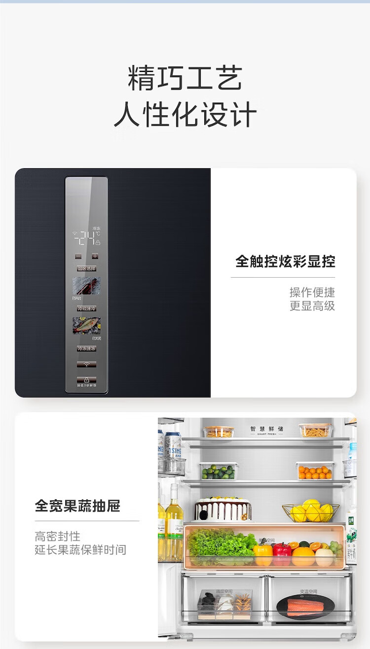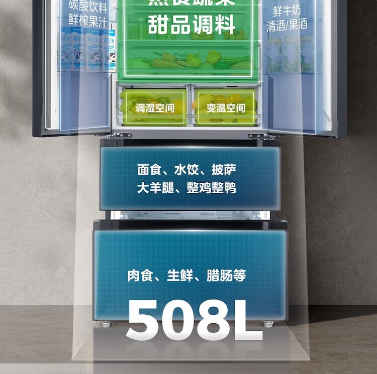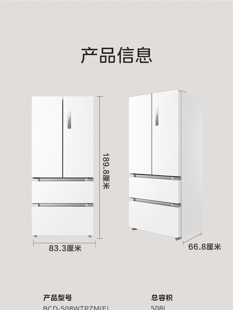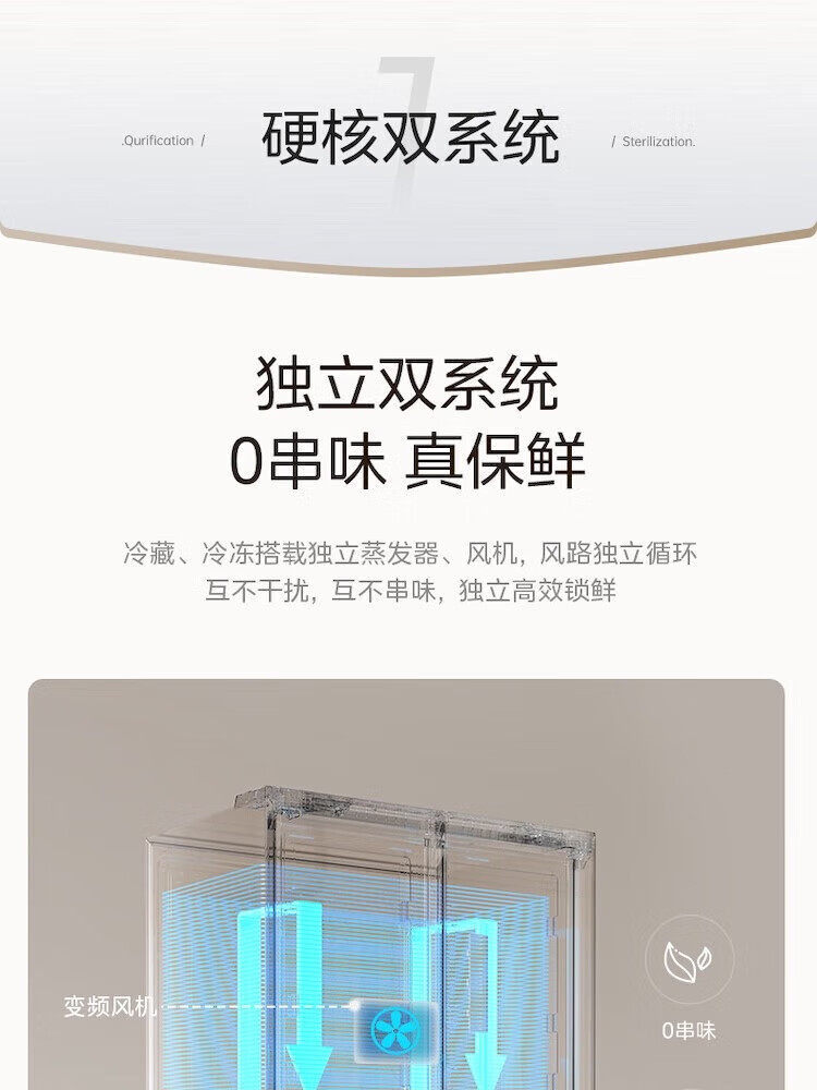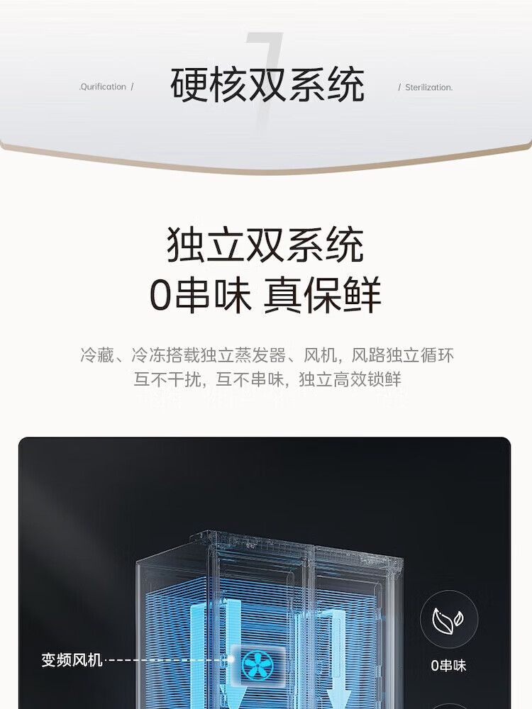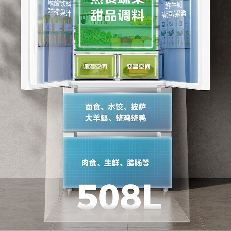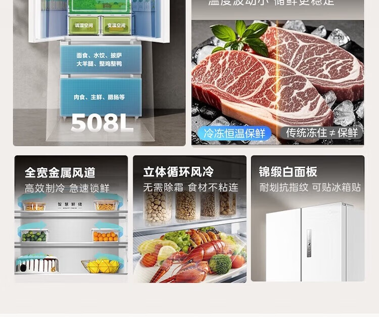 【508升双系统净味冰箱】极地白-锦缎