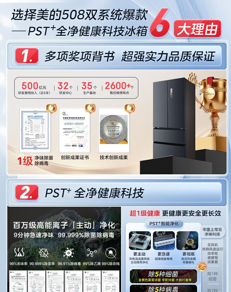 美的冰箱法式多门对开门冰箱一级风冷无霜双系统四开门除菌净味国家补贴大容量冰箱BCD-508WTPZM(E)