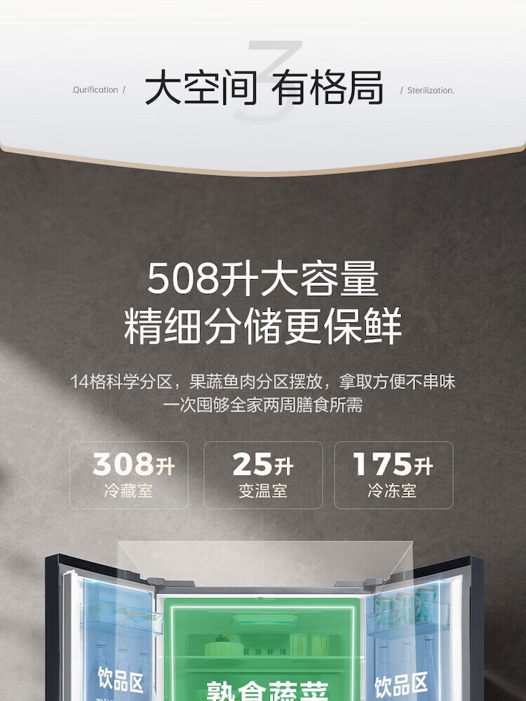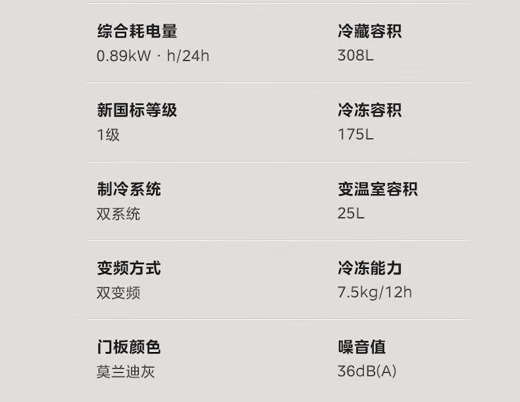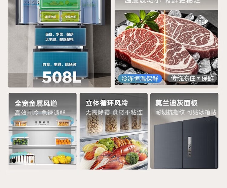 【508升双系统净味冰箱】莫兰迪灰