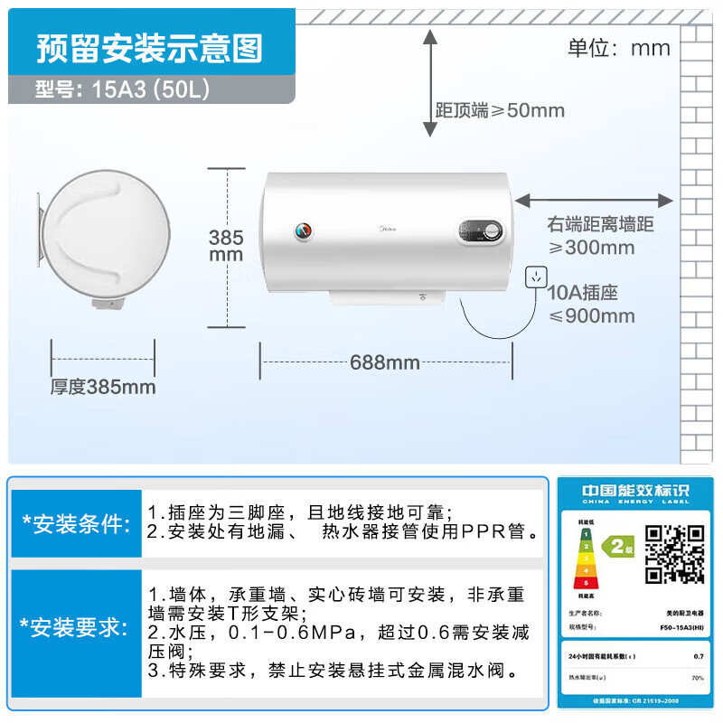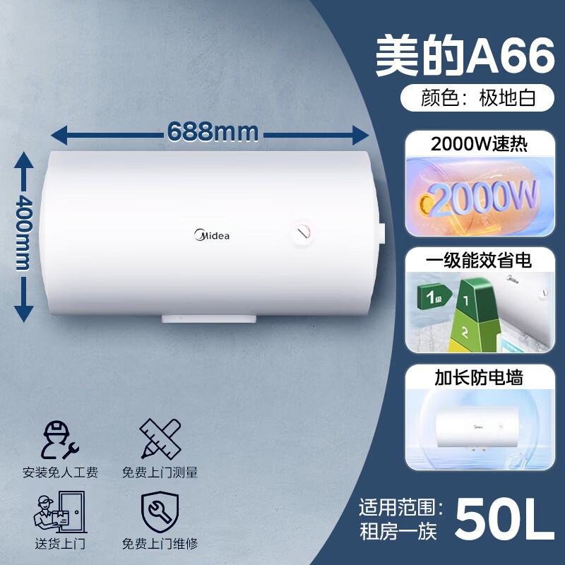 美的(Midea)储水式电热水器家用洗澡速热出租屋节能省电免费上门安装小型家电安全防漏电防电墙