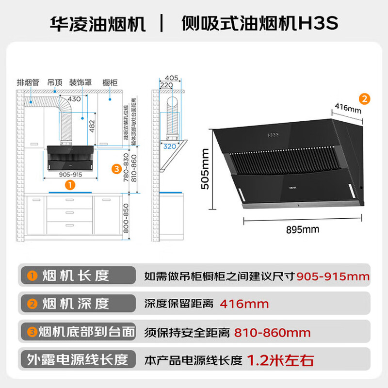 【单烟机】18m³近吸直排油烟机