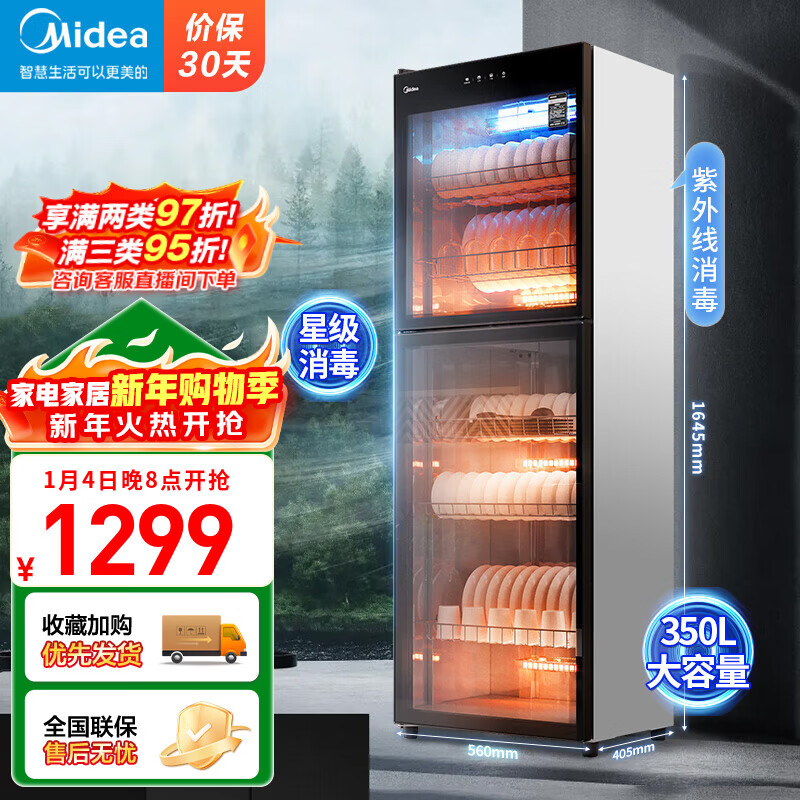 美的(Midea)消毒柜350/450升家用大容量立式家用商用保洁柜碗柜茶具茶杯厨房饭店餐馆碗柜免沥水