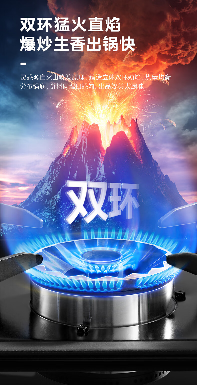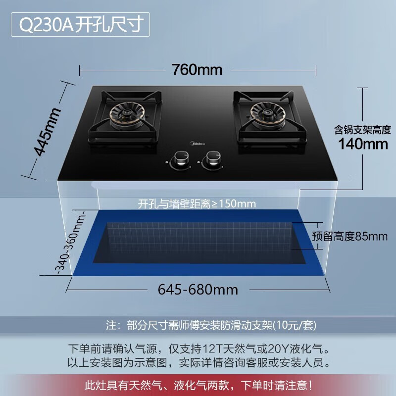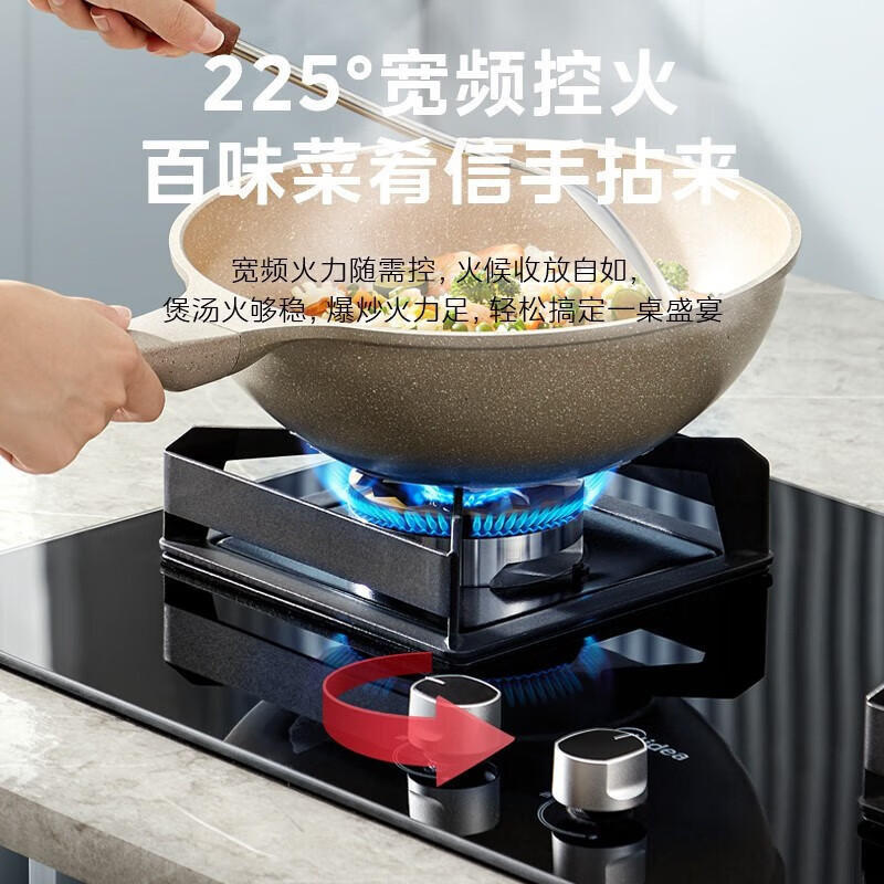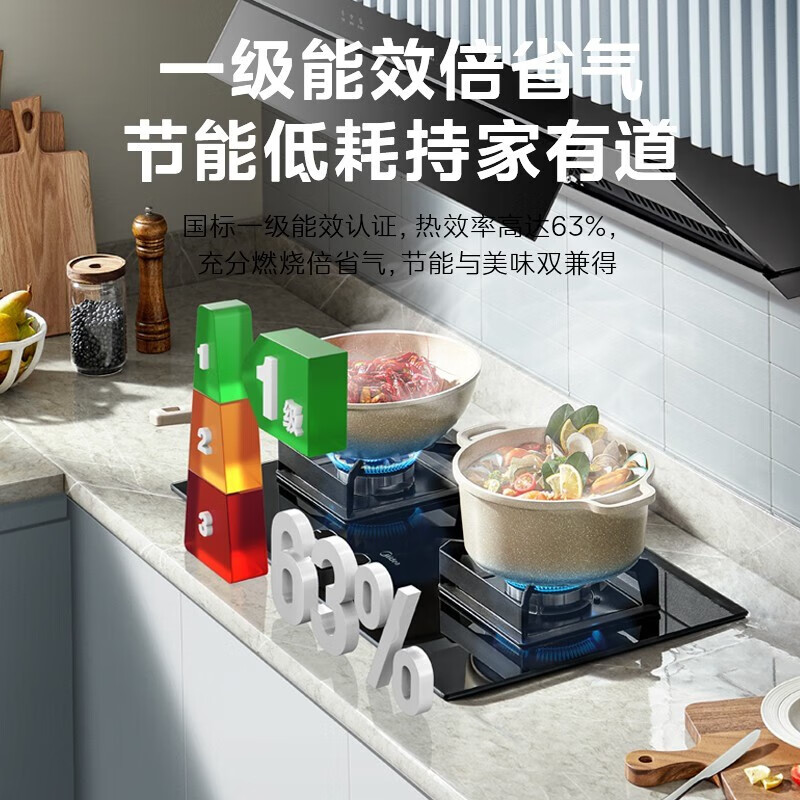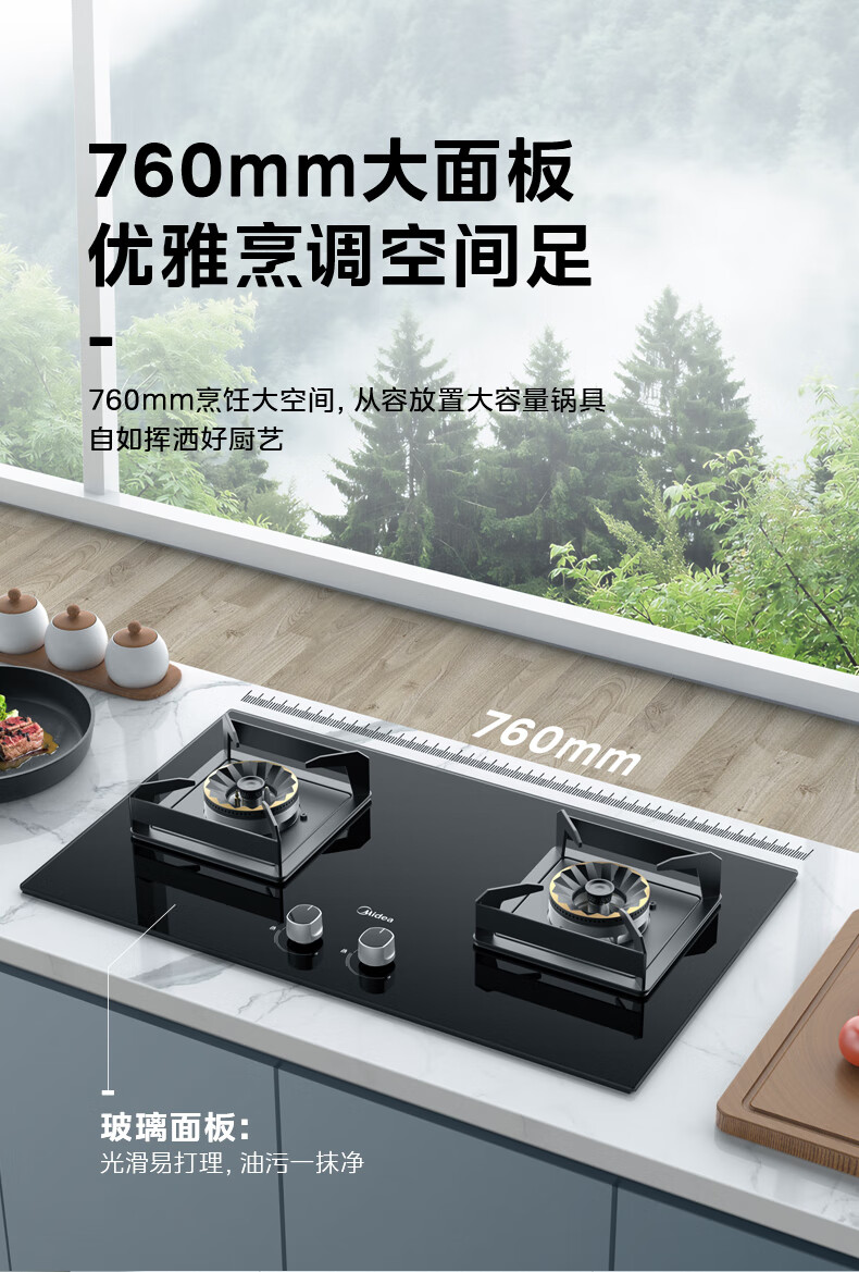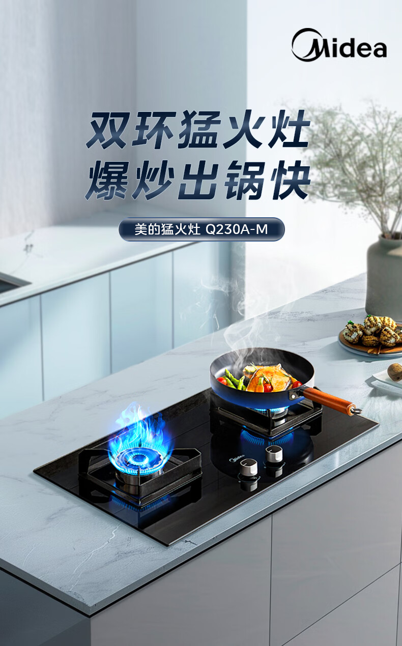 美的(Midea)燃气灶双灶家用搪瓷乘液盘5.0kW大火力铜火盖天燃气液化气煤气灶嵌入式灶具Q230A 5.0KW火山灶 天然气