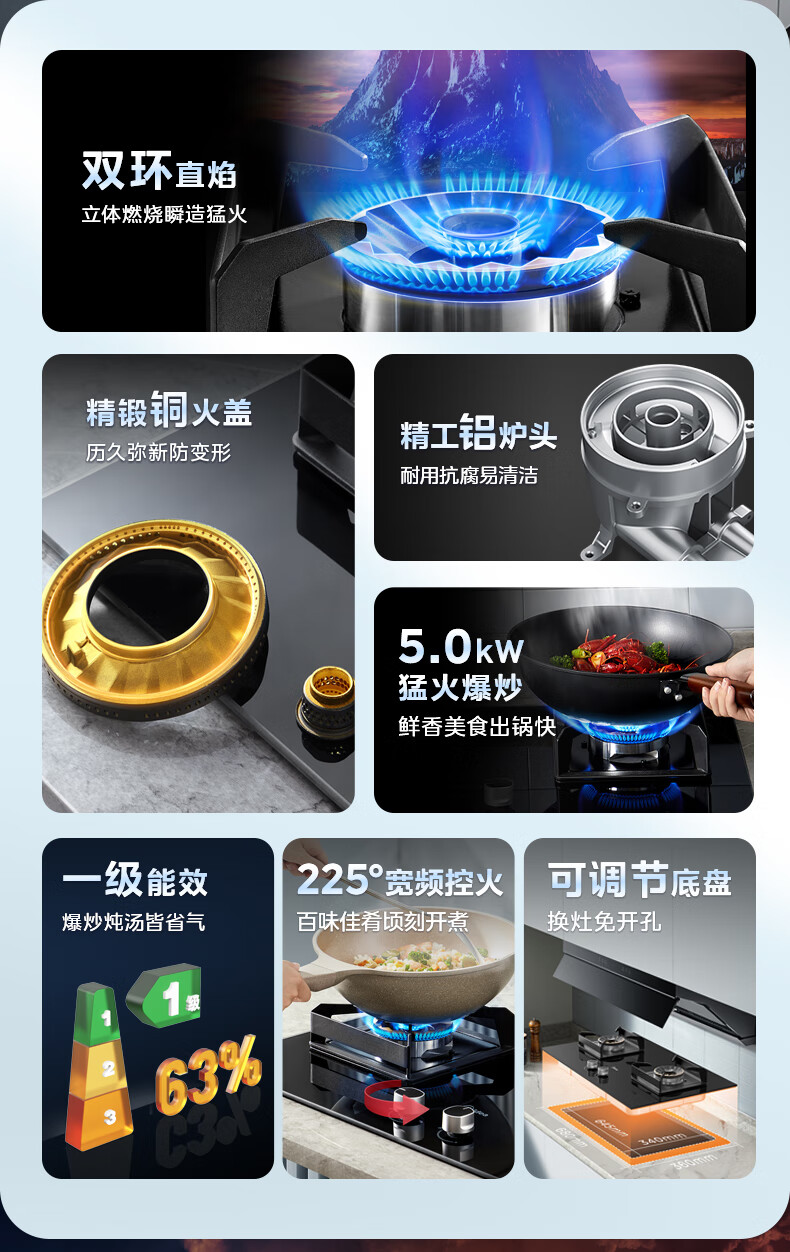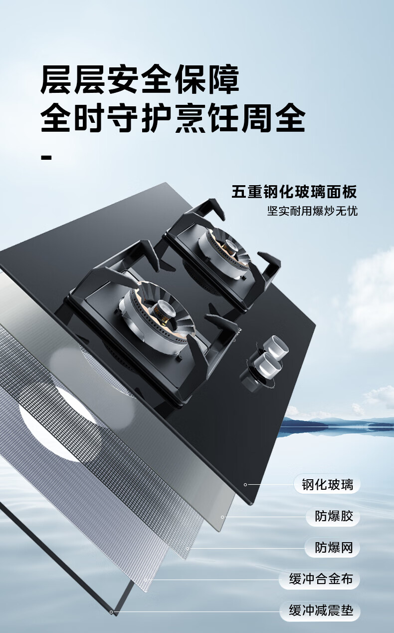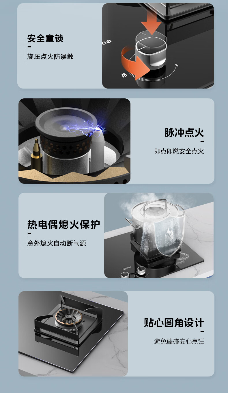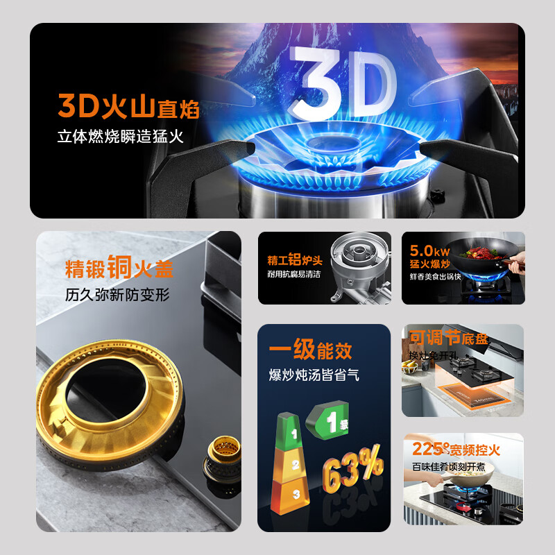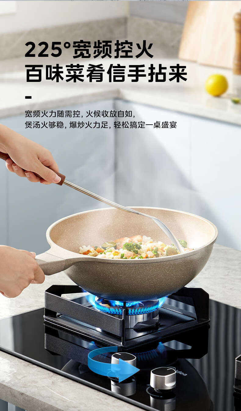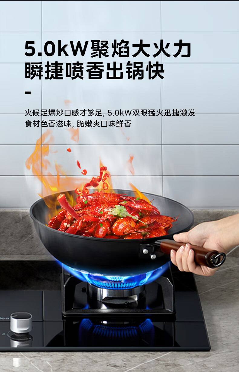 美的(Midea)燃气灶双灶家用搪瓷乘液盘5.0kW大火力铜火盖天燃气液化气煤气灶嵌入式灶具Q230A 5.0KW火山灶 天然气