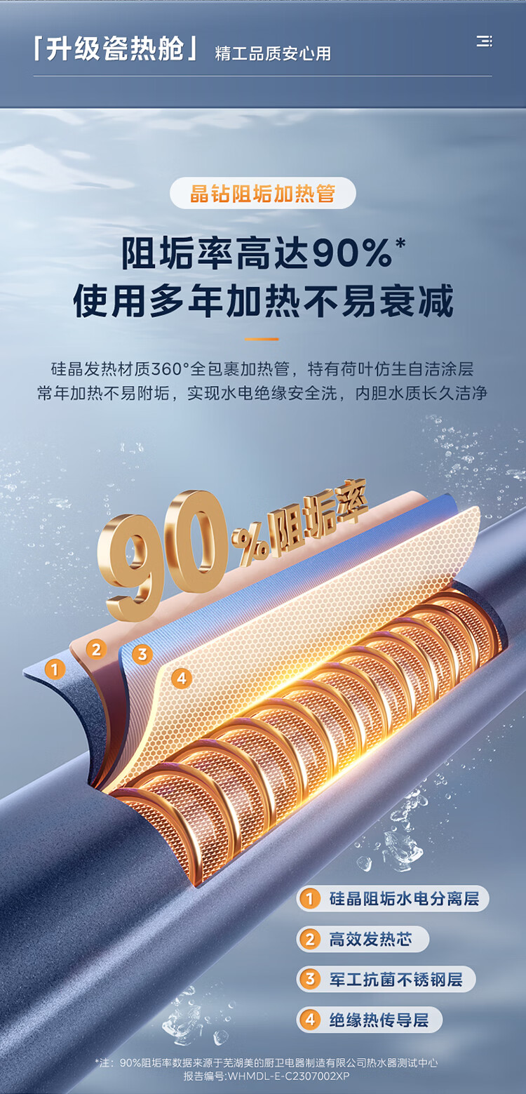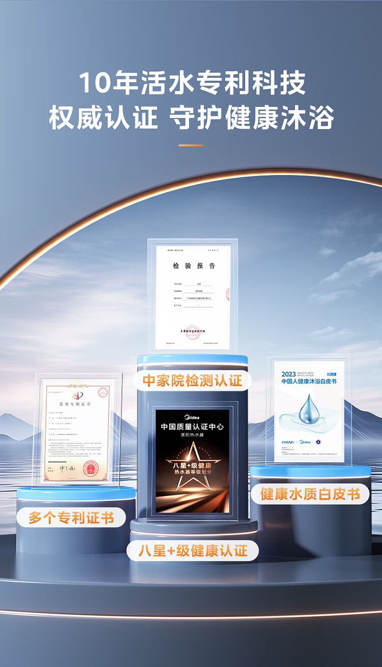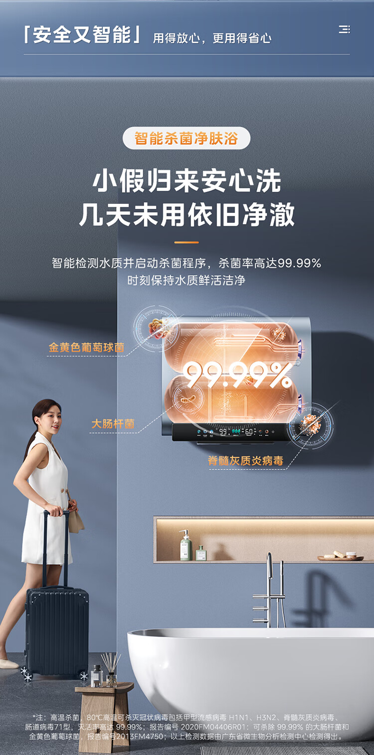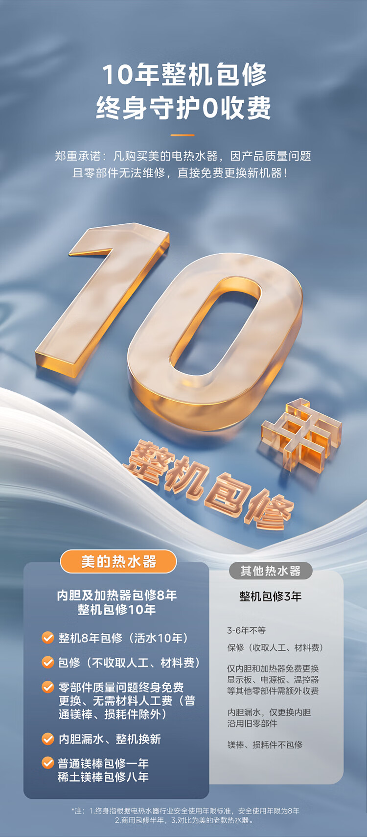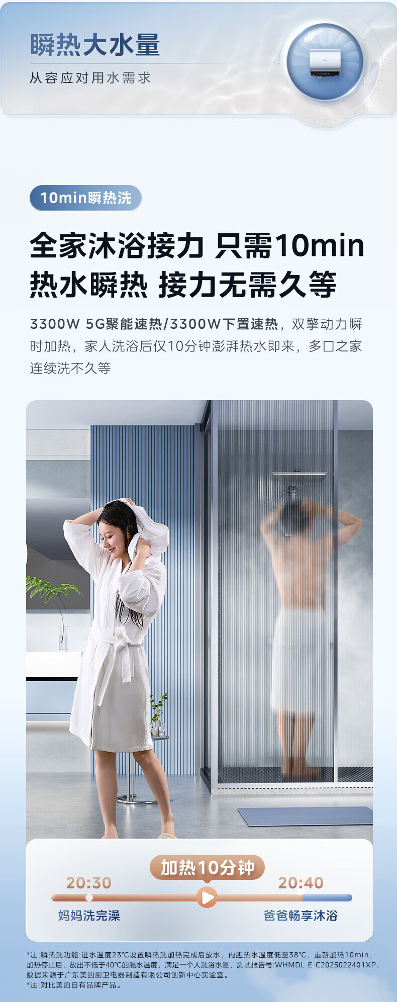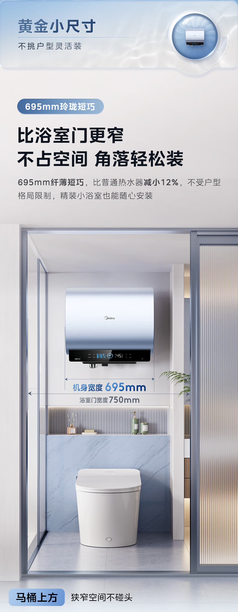 美的(Midea)【活水系列UDProS/UD10Max】电热水器水质可视自动排污60L双胆扁桶电热水器3300W水电分离一级能效