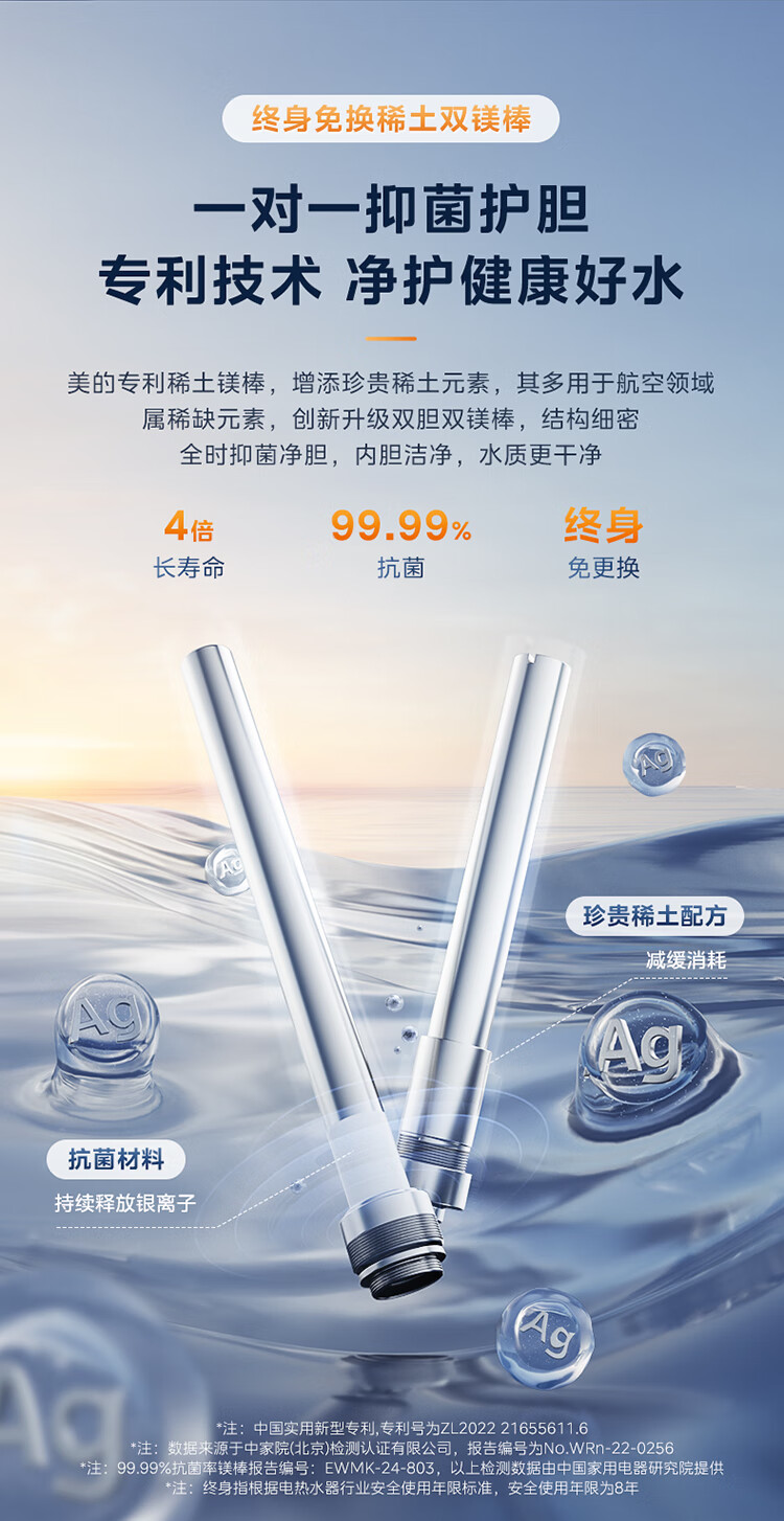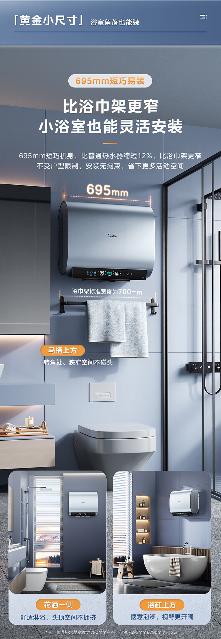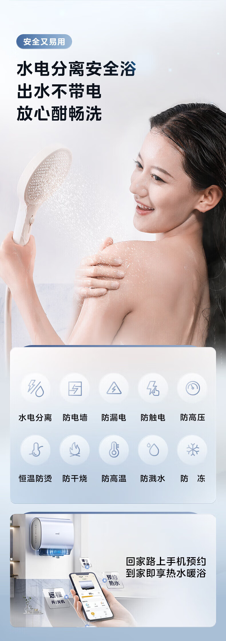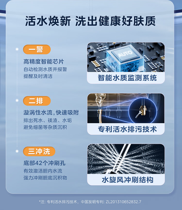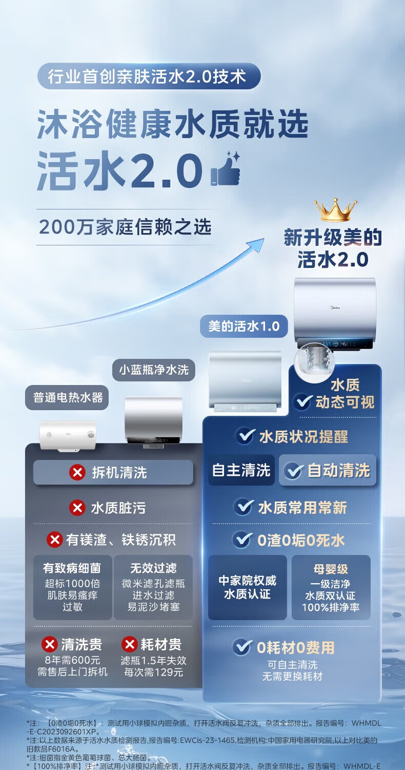 美的(Midea)【活水系列UDProS/UD10Max】电热水器水质可视自动排污60L双胆扁桶电热水器3300W水电分离一级能效