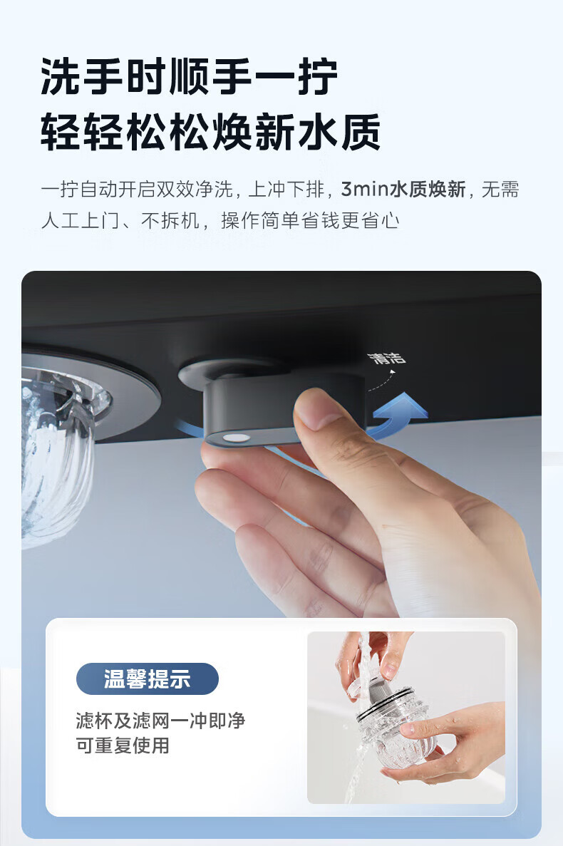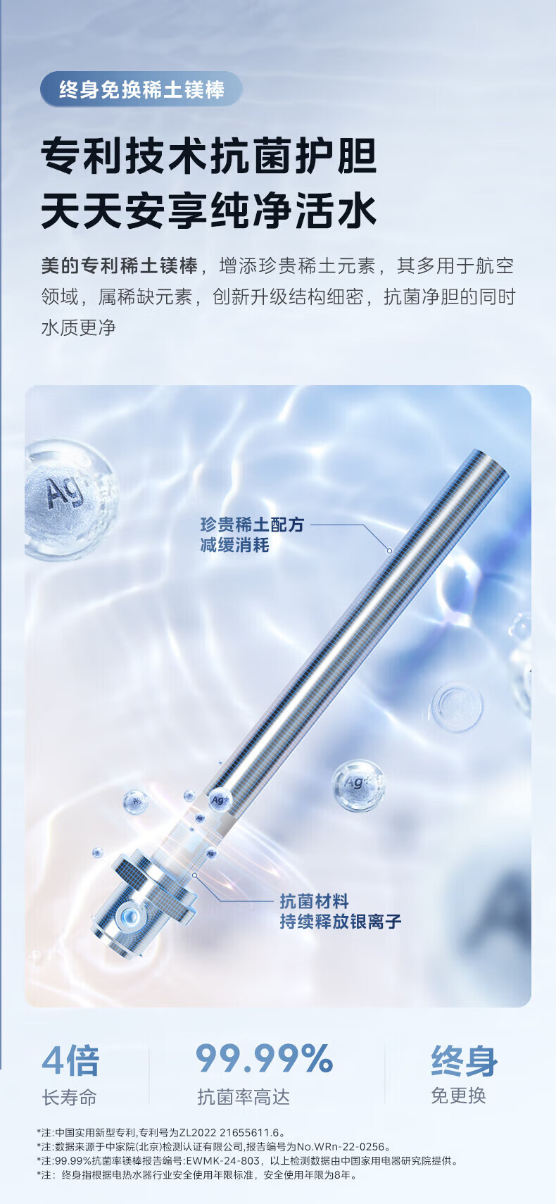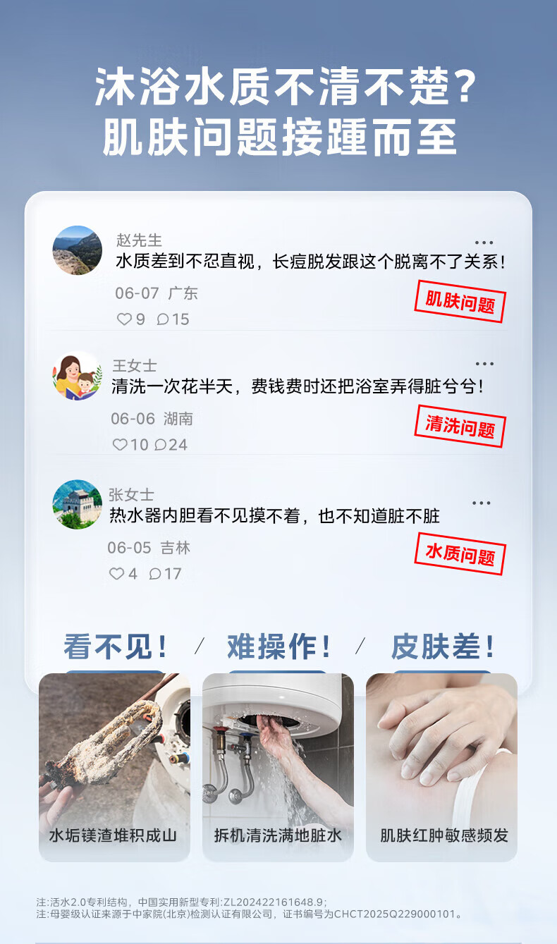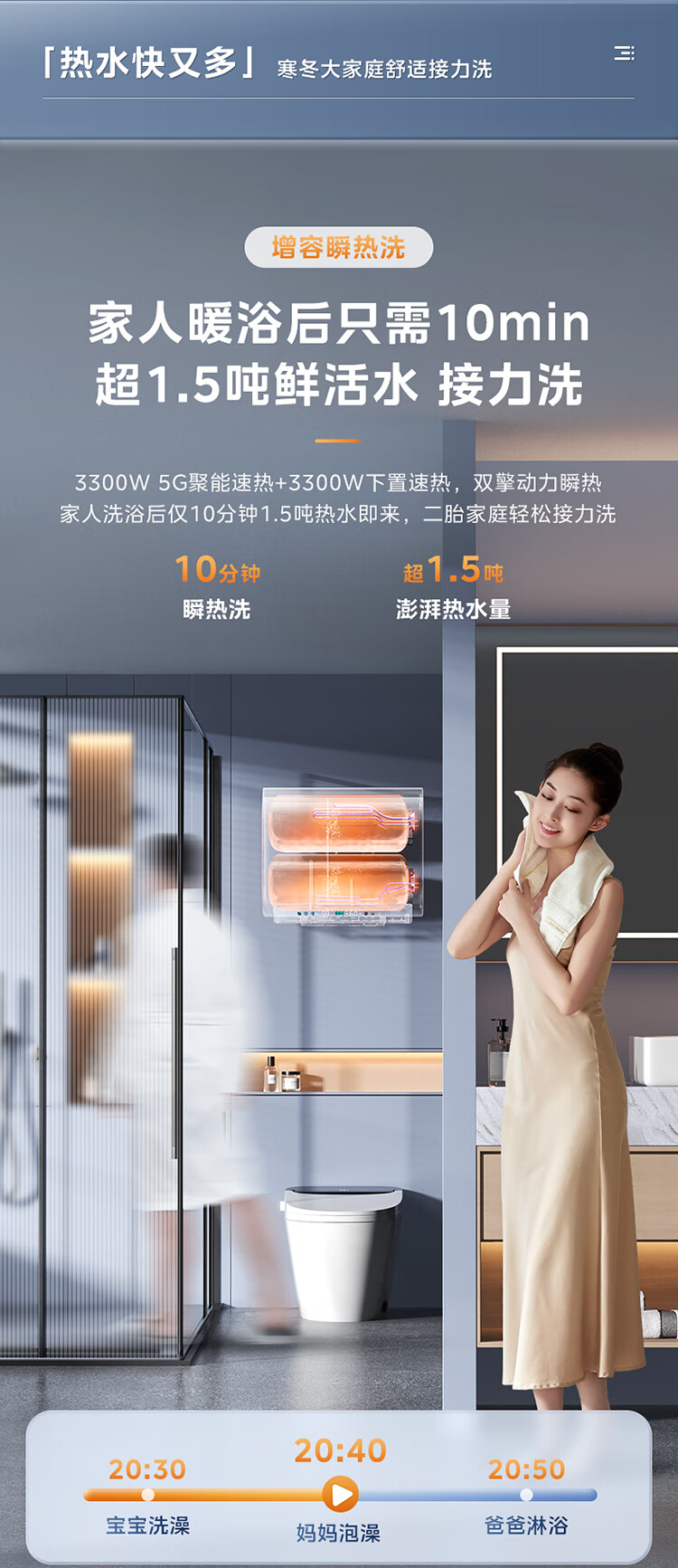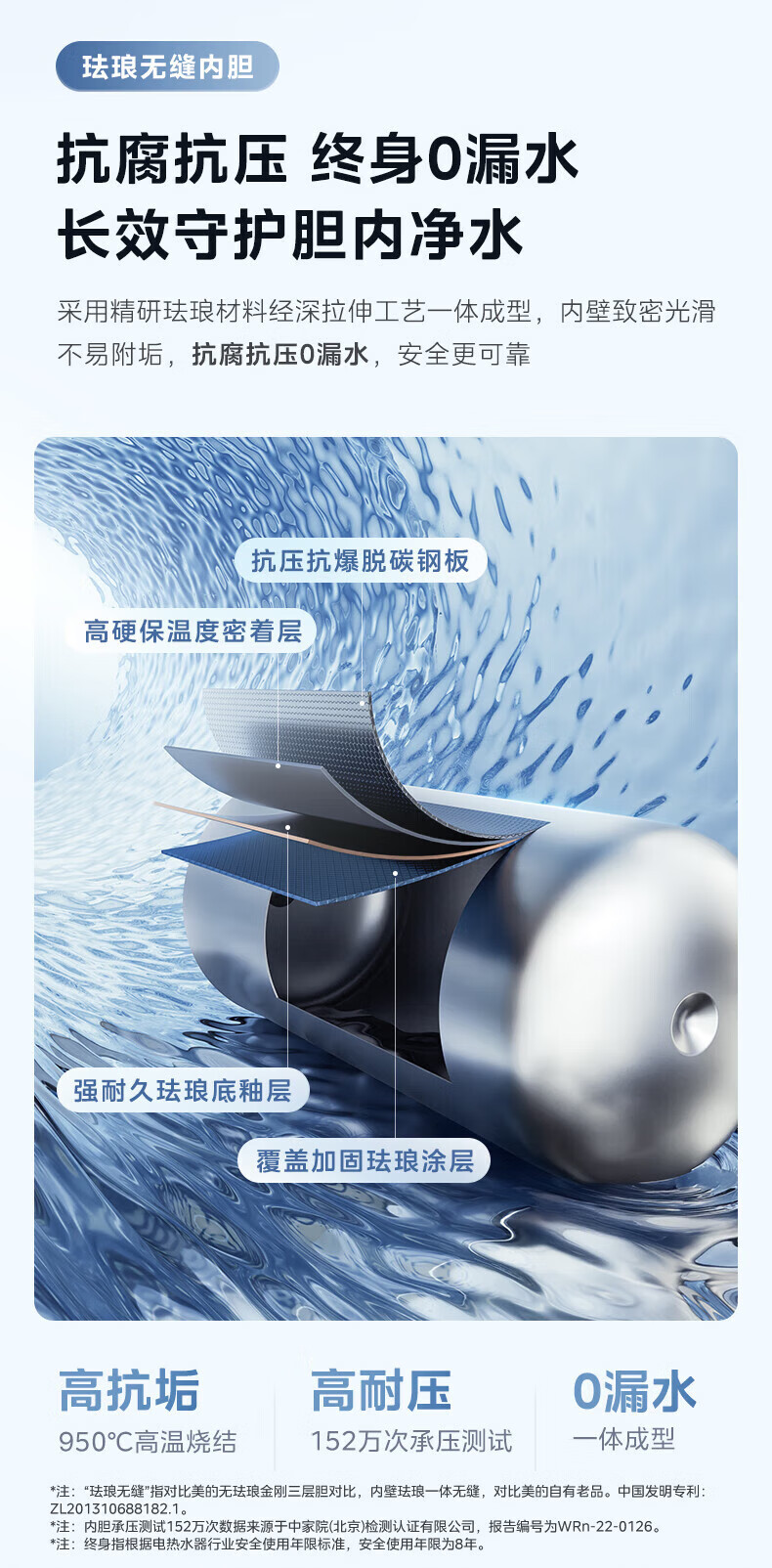 美的(Midea)【活水系列UDProS/UD10Max】电热水器水质可视自动排污60L双胆扁桶电热水器3300W水电分离一级能效