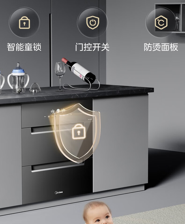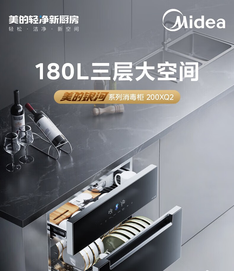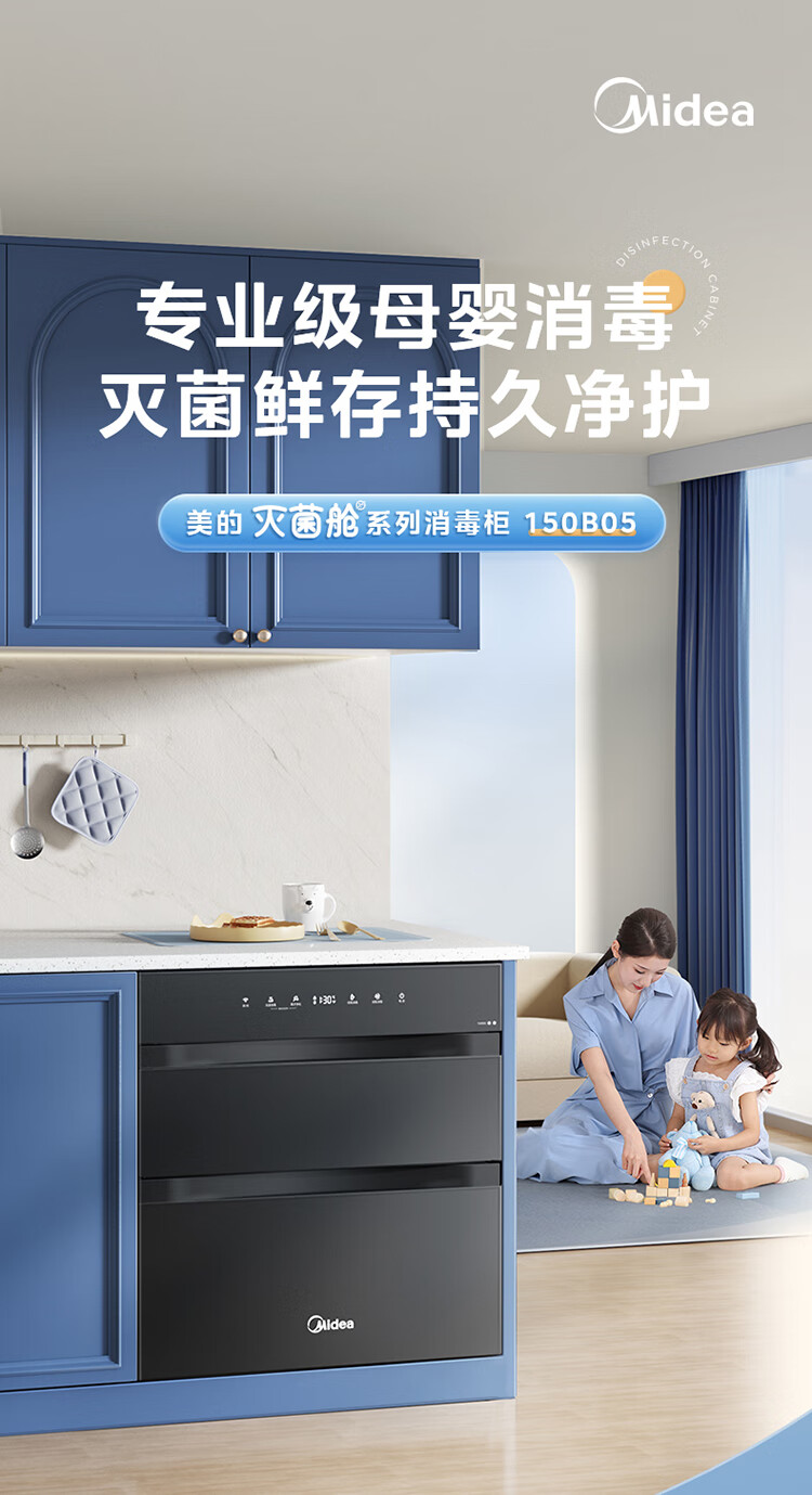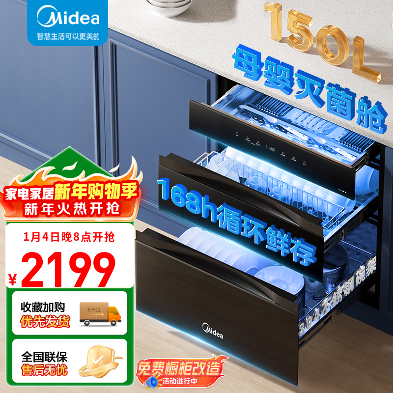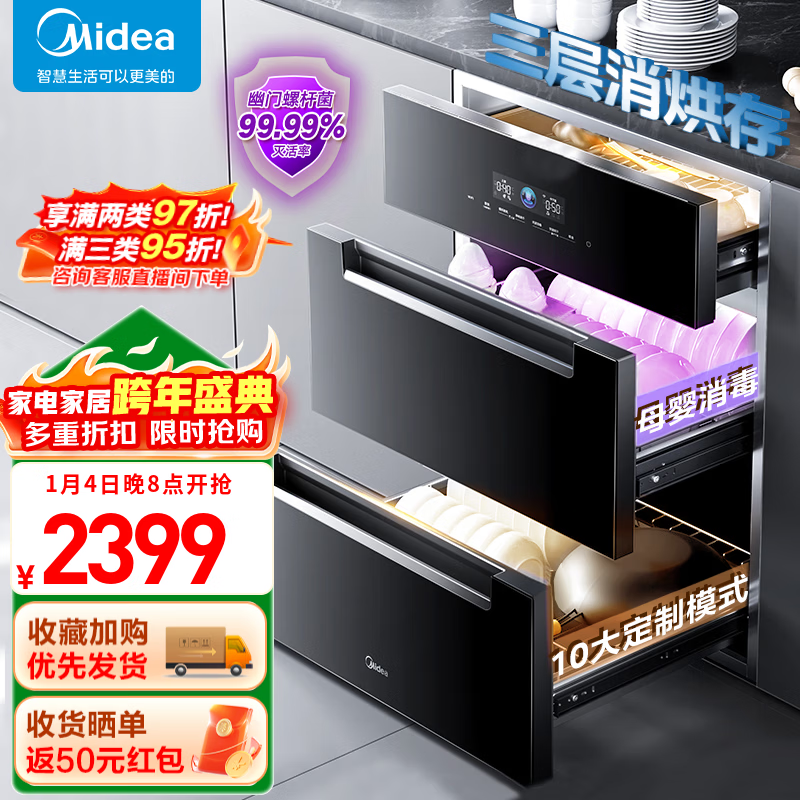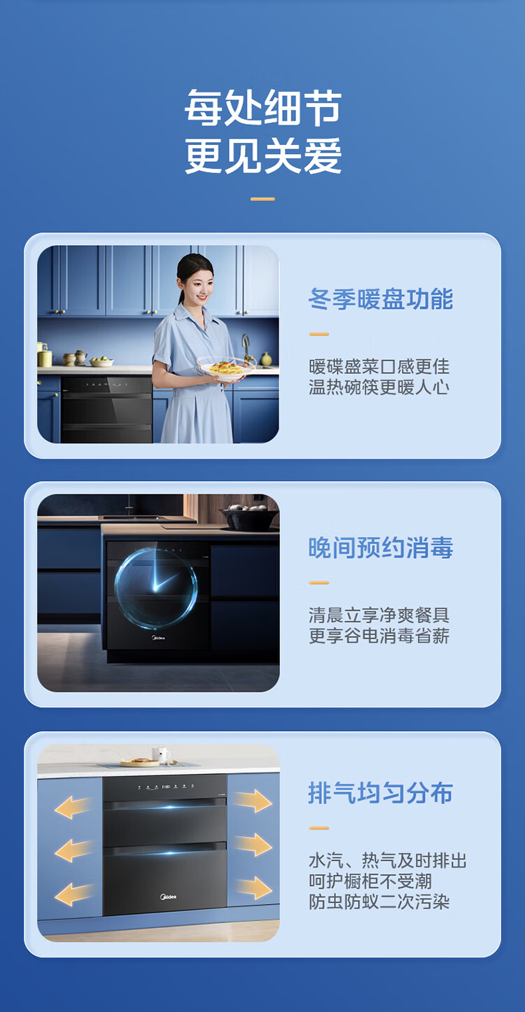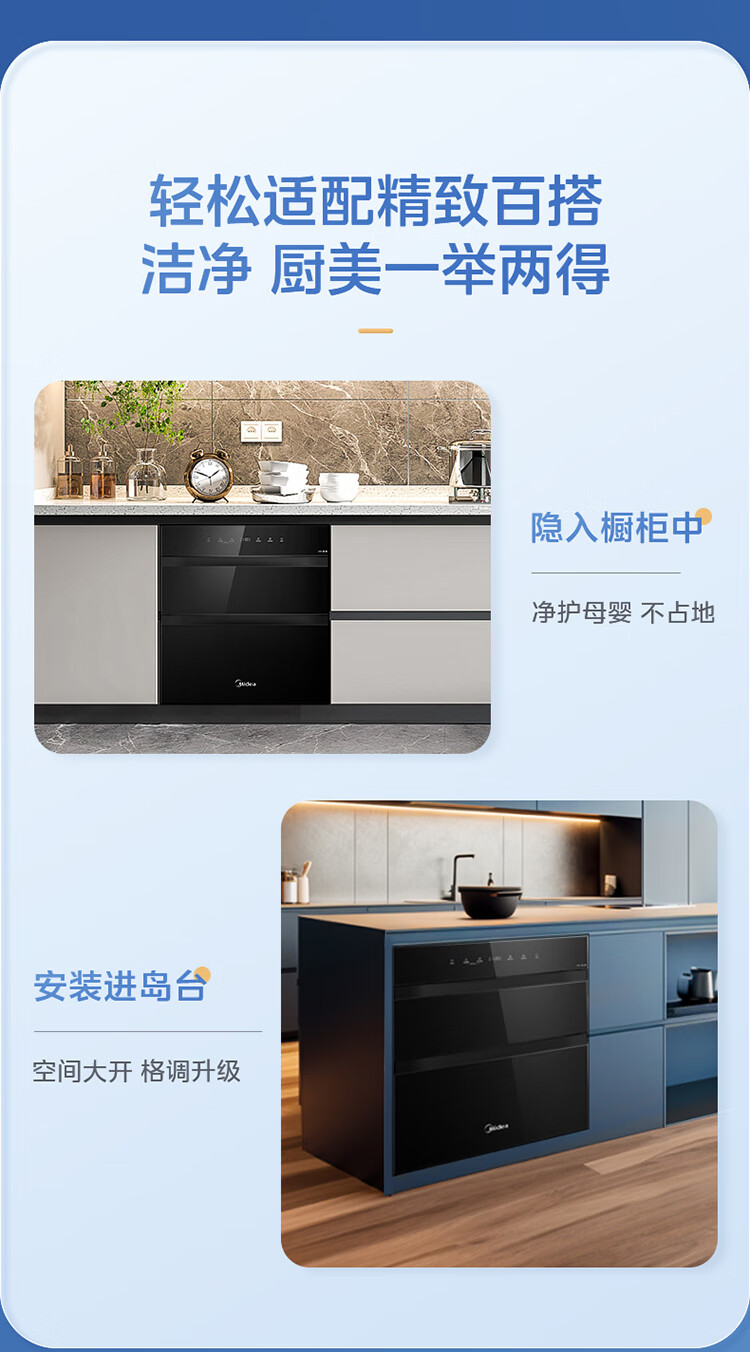 美的(Midea)消毒柜家用嵌入式三层大容量 厨房碗筷餐具母婴奶瓶紫外线光波二星级消毒碗柜消毒柜商用
