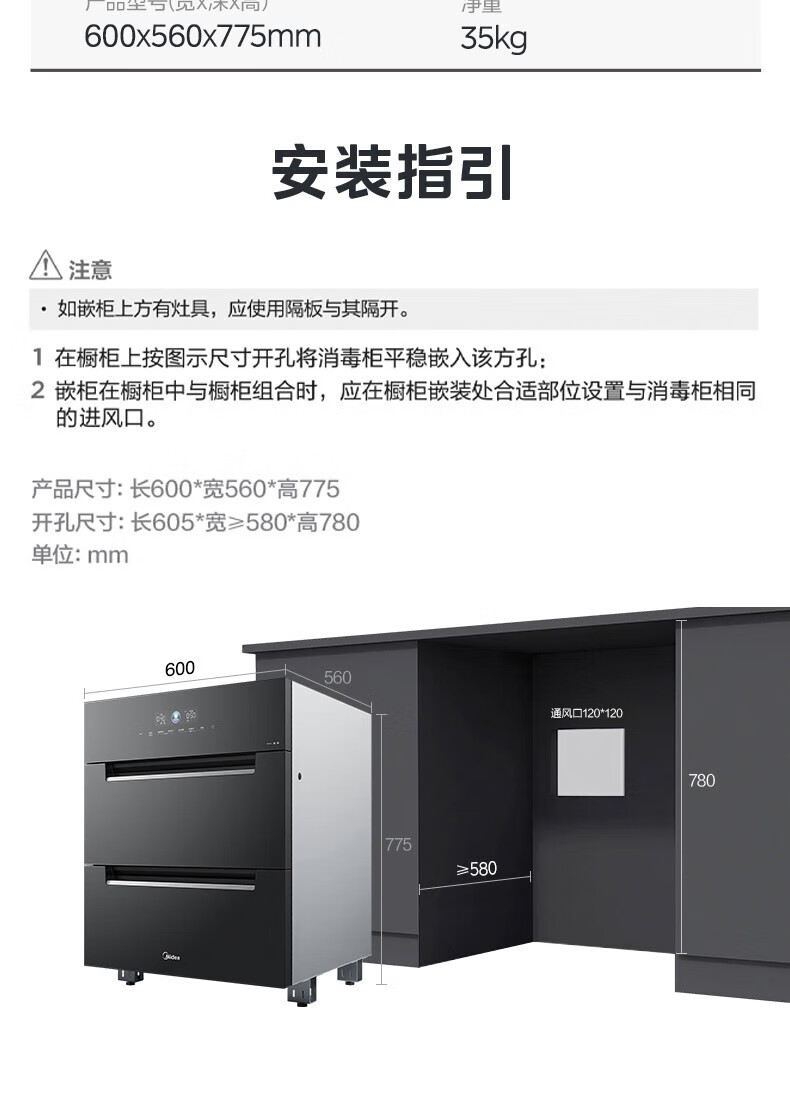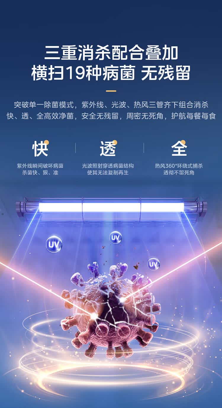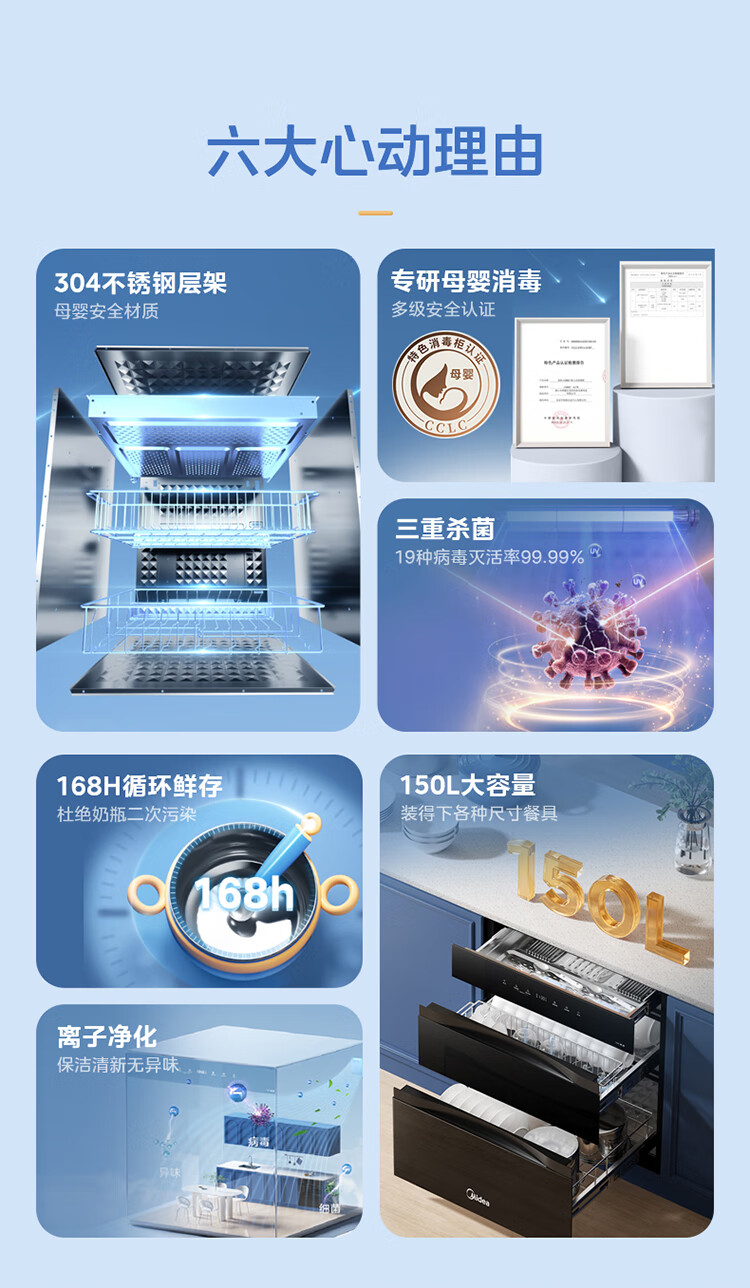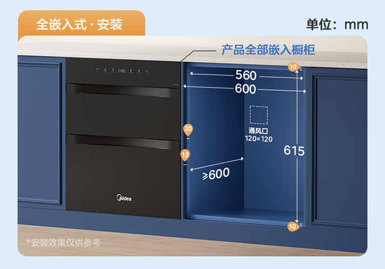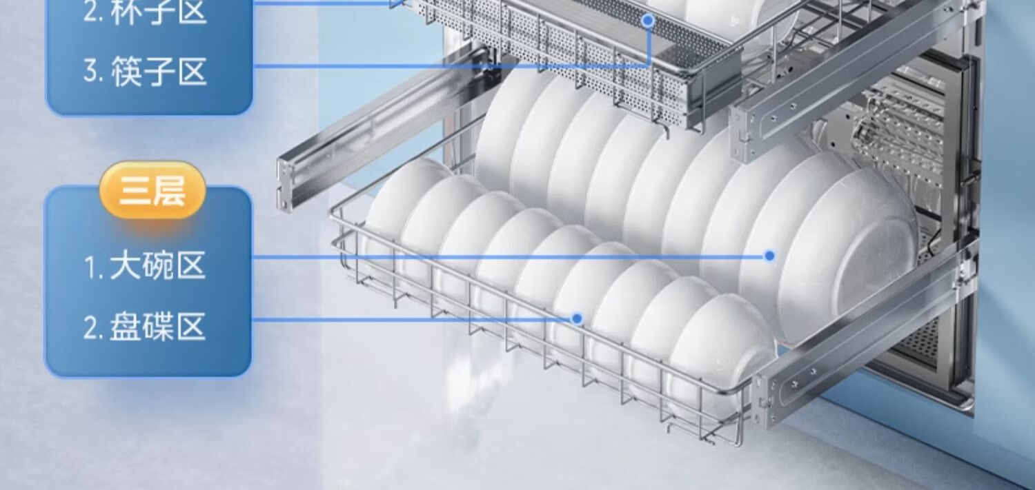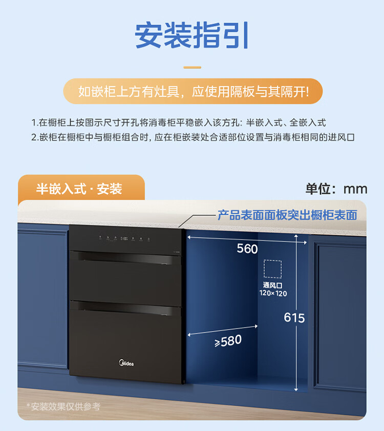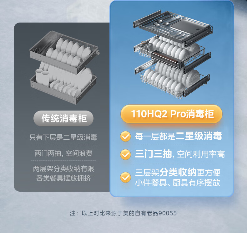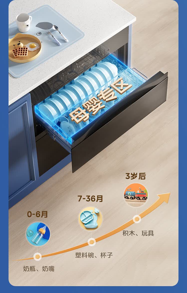 美的(Midea)消毒柜家用嵌入式三层大容量 厨房碗筷餐具母婴奶瓶紫外线光波二星级消毒碗柜消毒柜商用