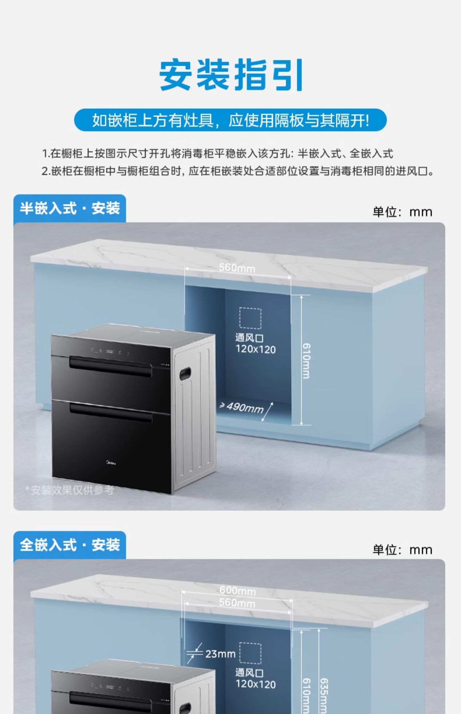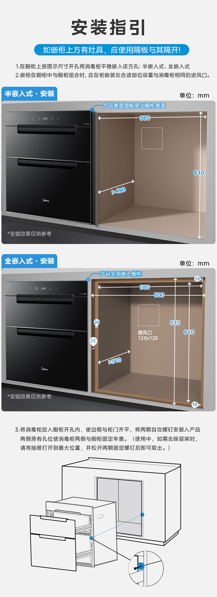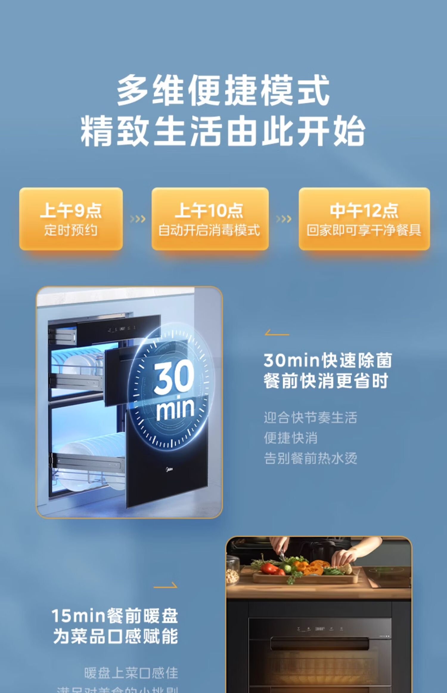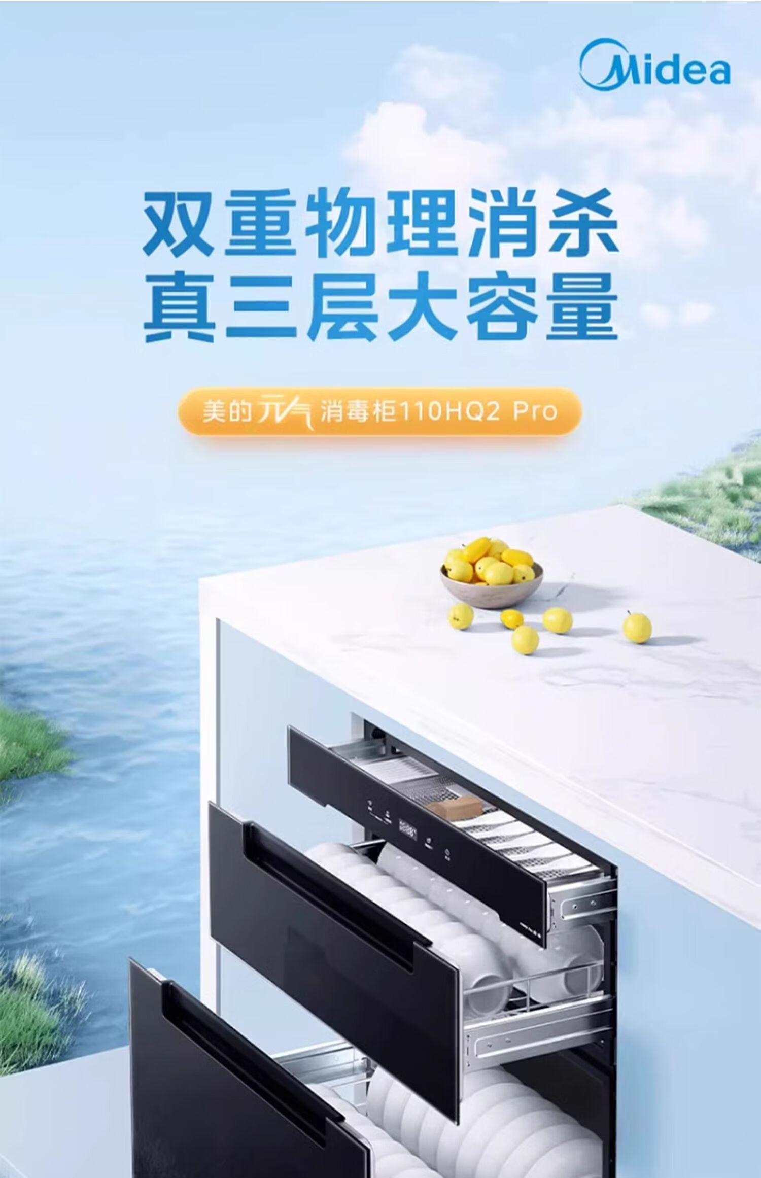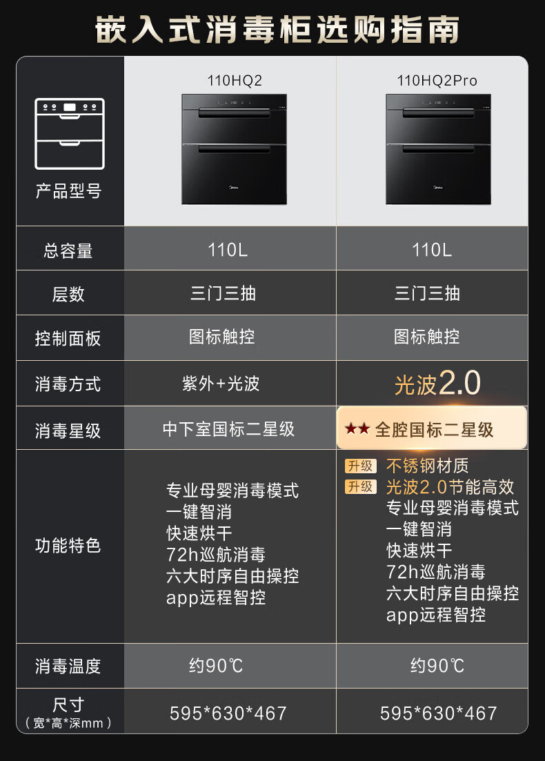 美的(Midea)消毒柜家用嵌入式三层大容量 厨房碗筷餐具母婴奶瓶紫外线光波二星级消毒碗柜消毒柜商用