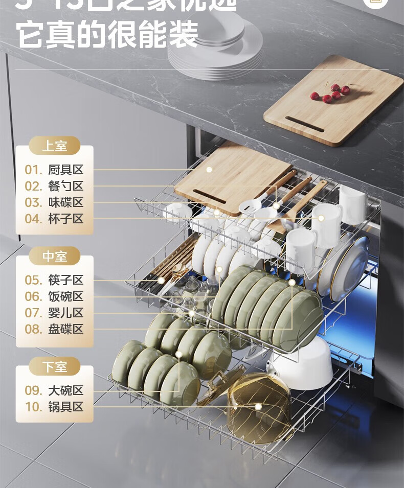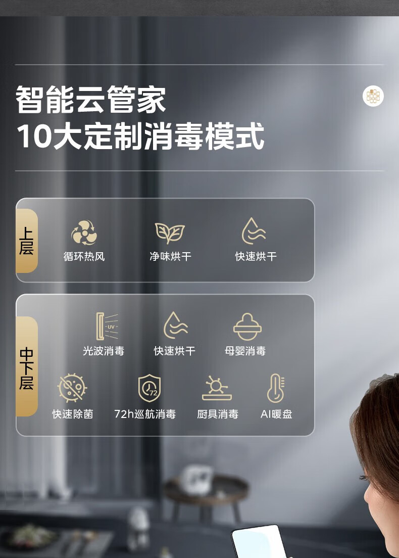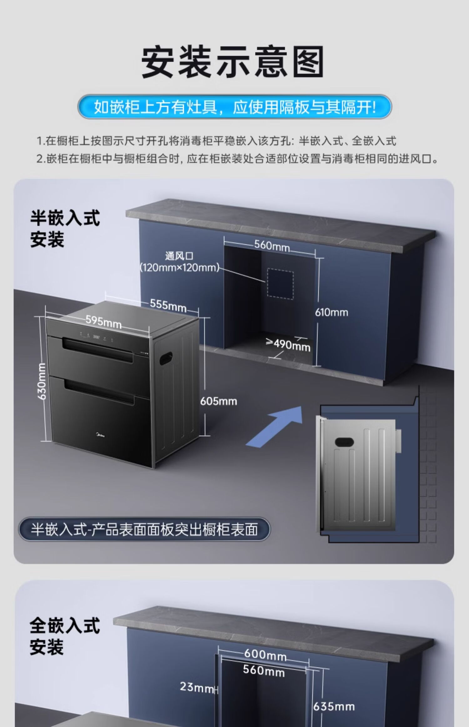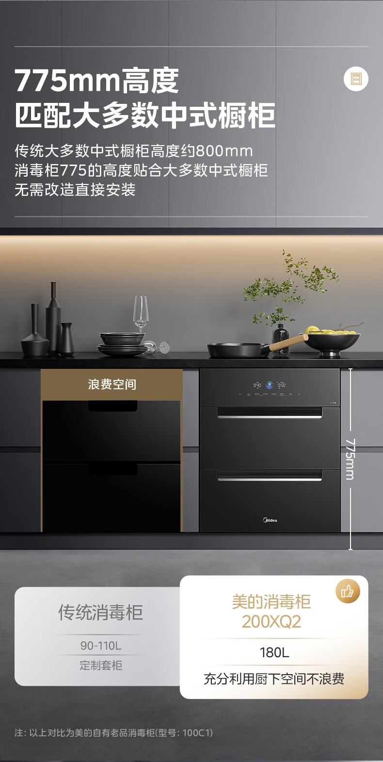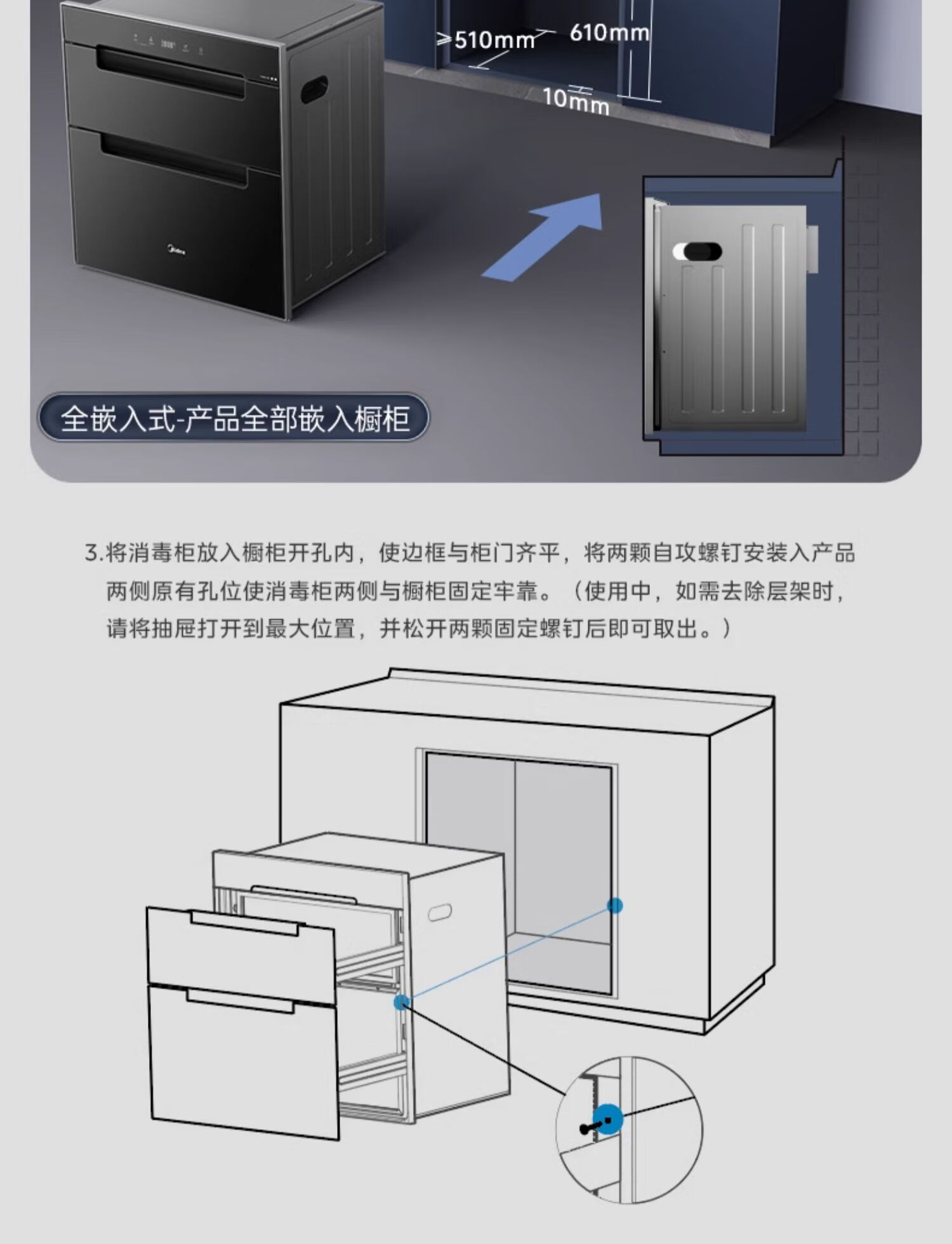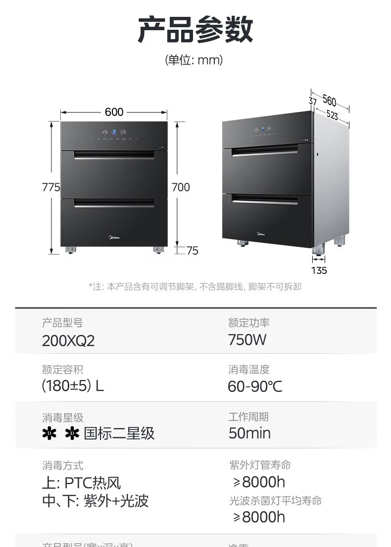 美的(Midea)消毒柜家用嵌入式三层大容量 厨房碗筷餐具母婴奶瓶紫外线光波二星级消毒碗柜消毒柜商用