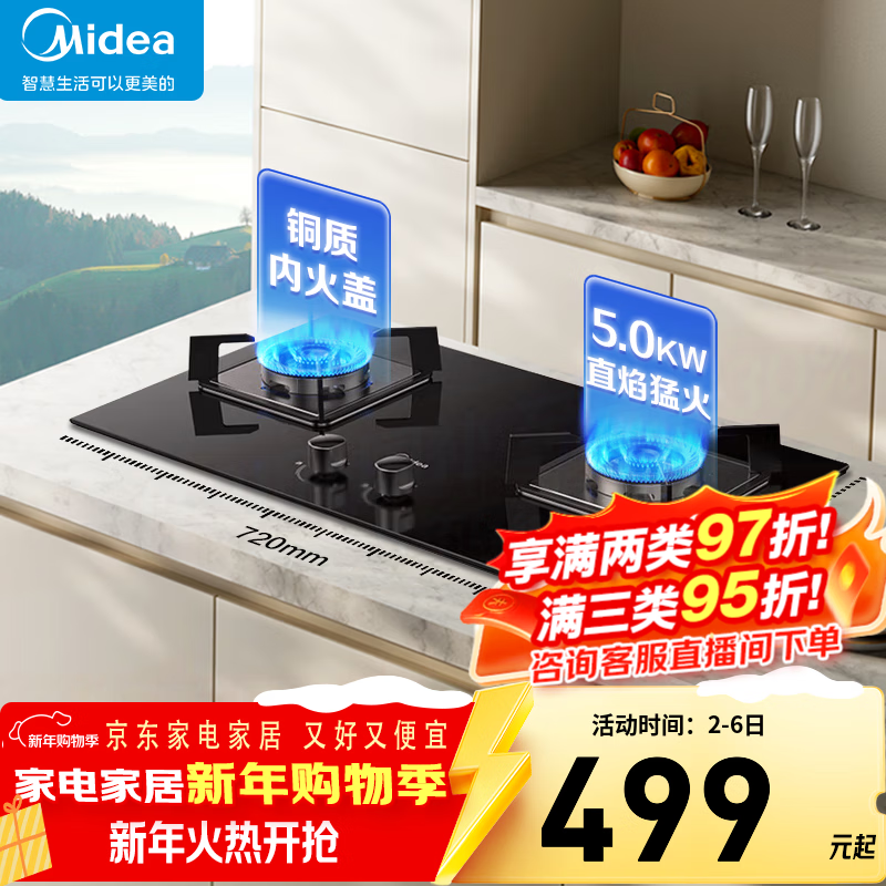 美的(Midea)【国家补贴20%】燃气灶双灶天然气 家用台式嵌入式两用大火力液化气猛火灶具可调节开孔罐装煤气灶