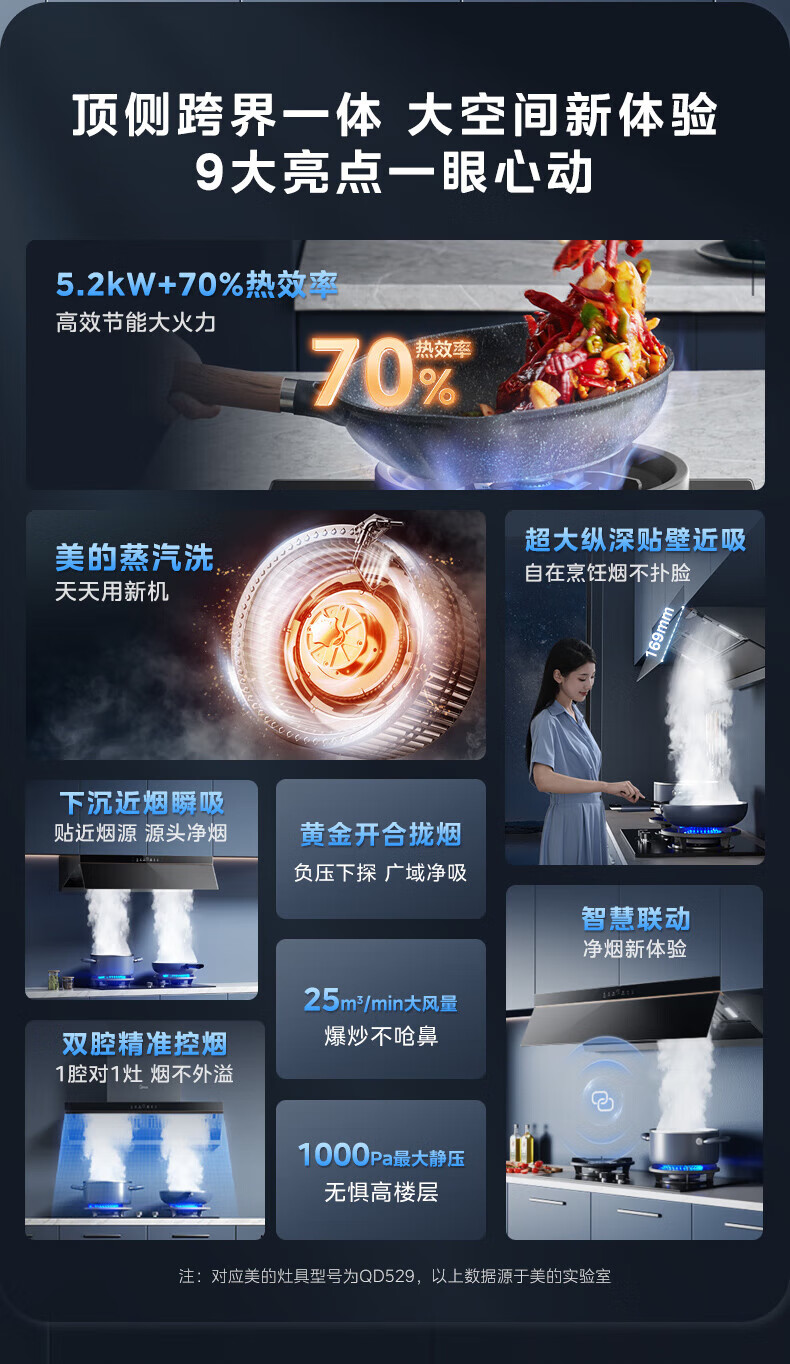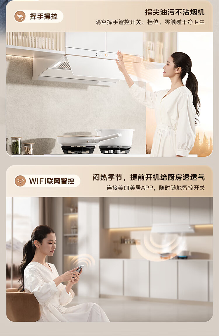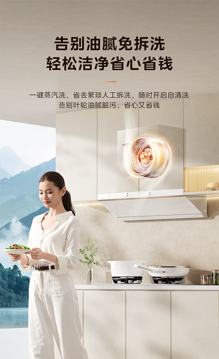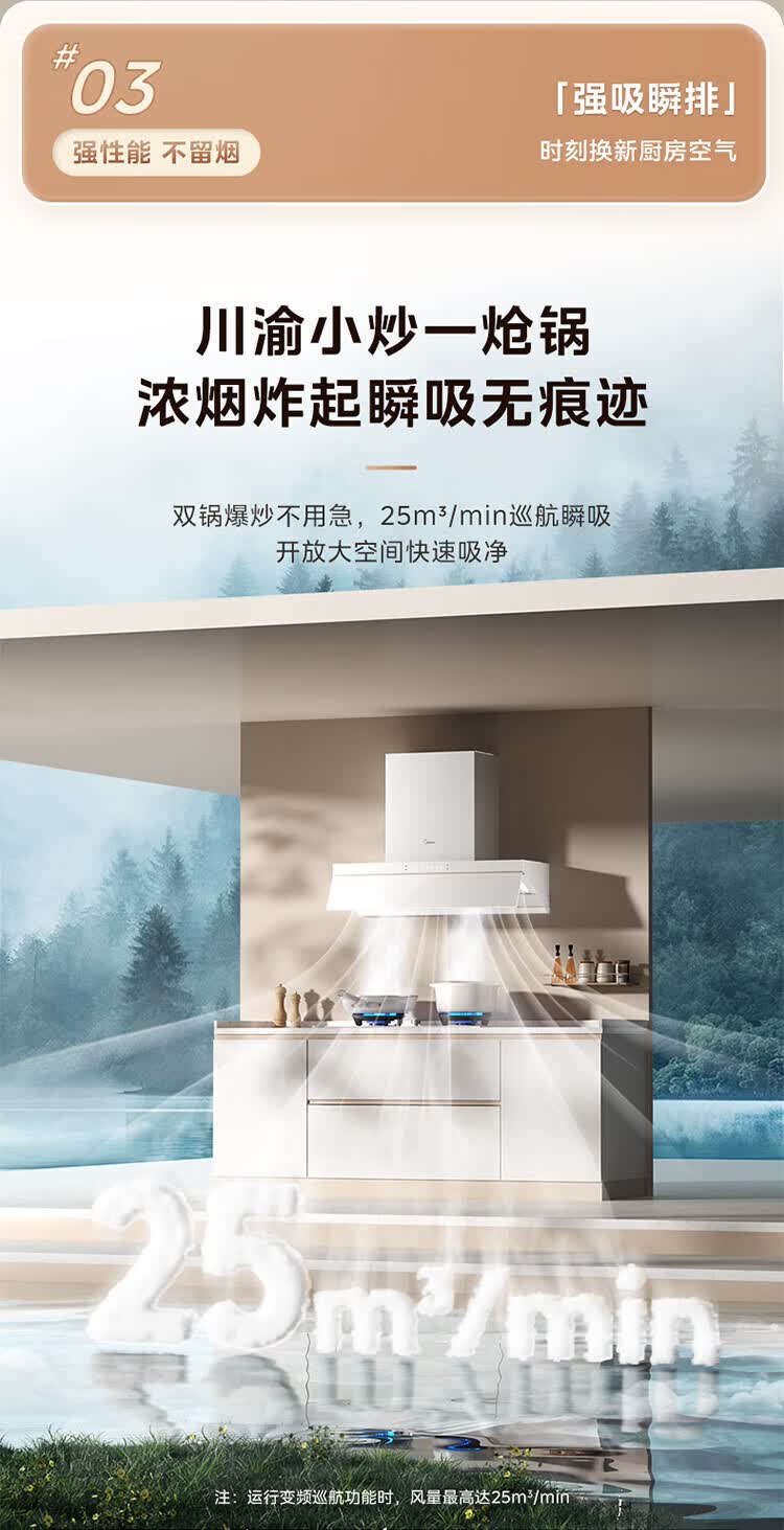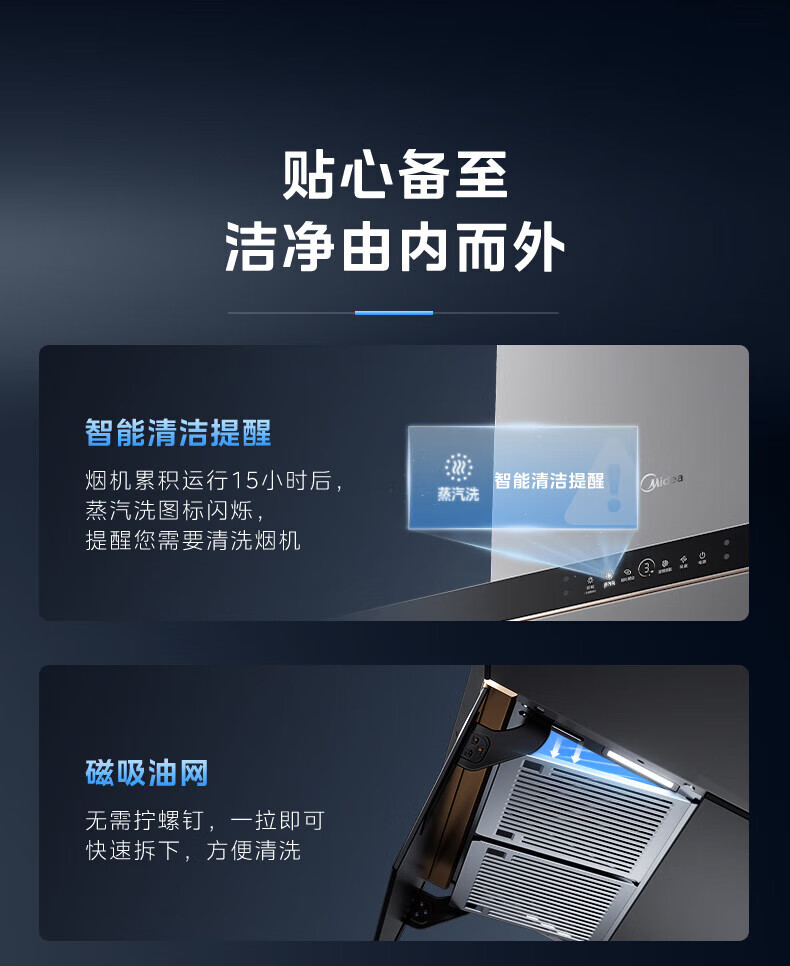 美的(Midea)【AK5pro升级款25风量】抽吸油烟机25顶侧一体欧式自清洁高温蒸汽洗变频巡航1000Pa静压