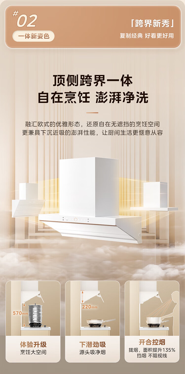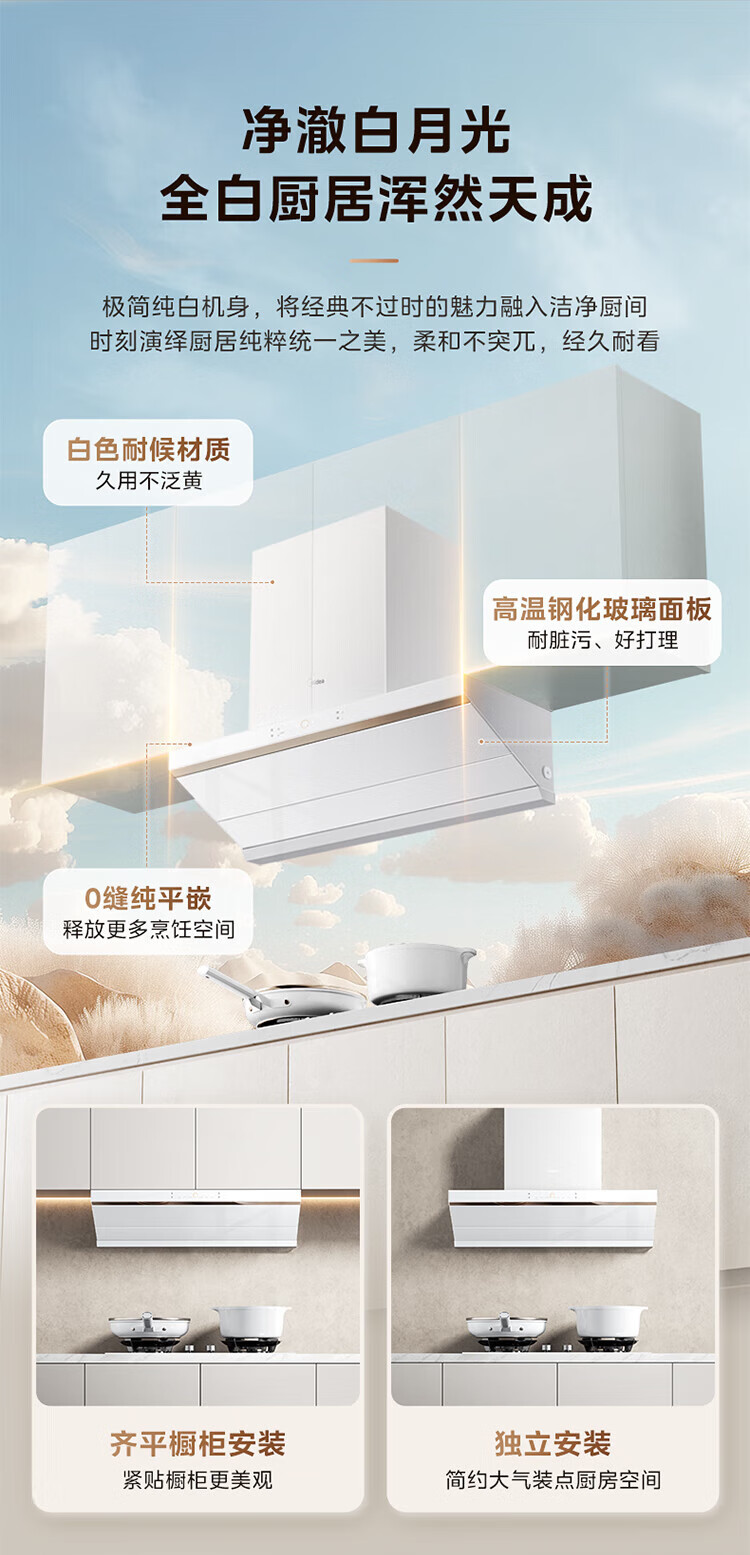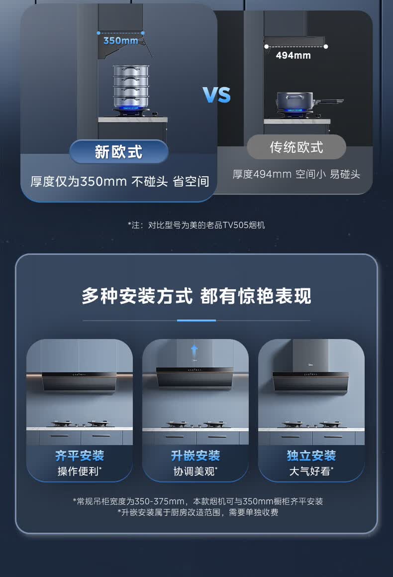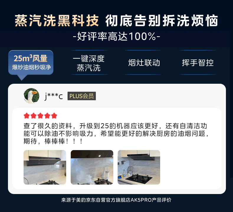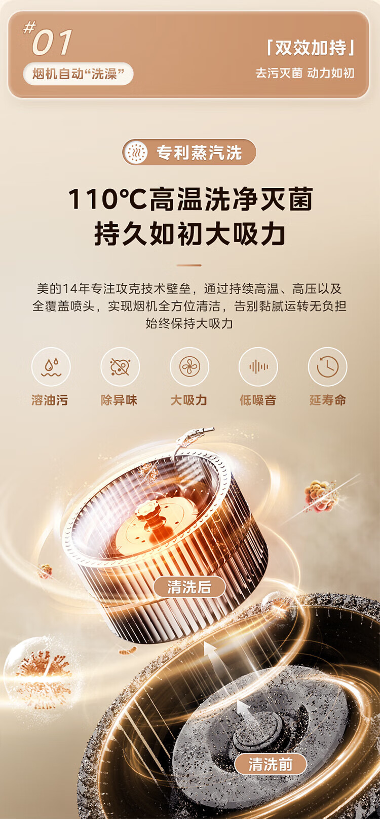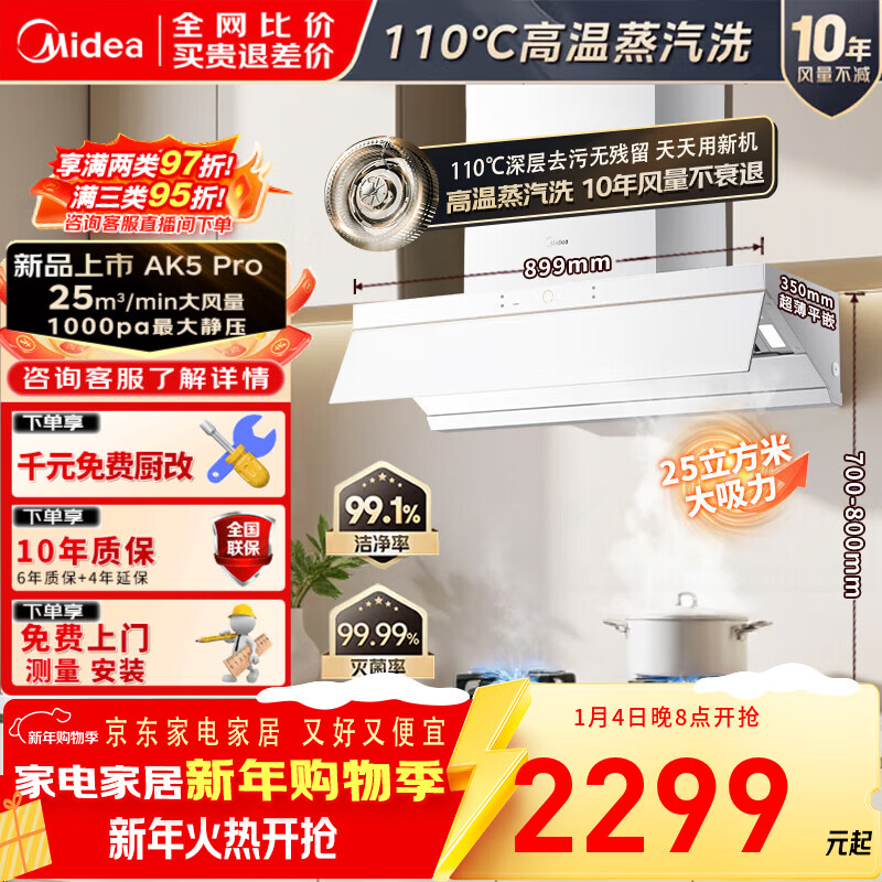 美的(Midea)【AK5pro升级款25风量】抽吸油烟机25顶侧一体欧式自清洁高温蒸汽洗变频巡航1000Pa静压