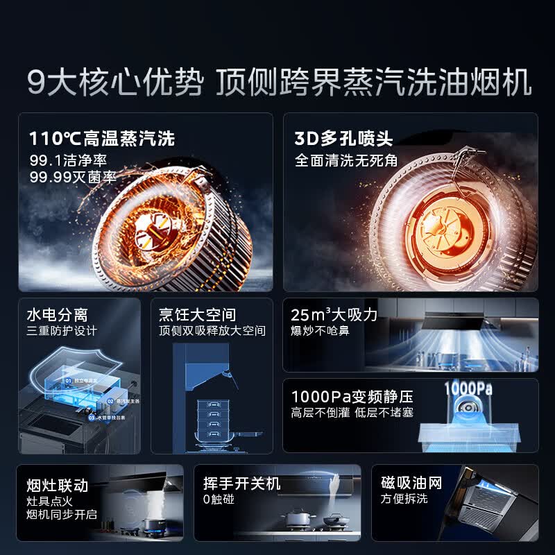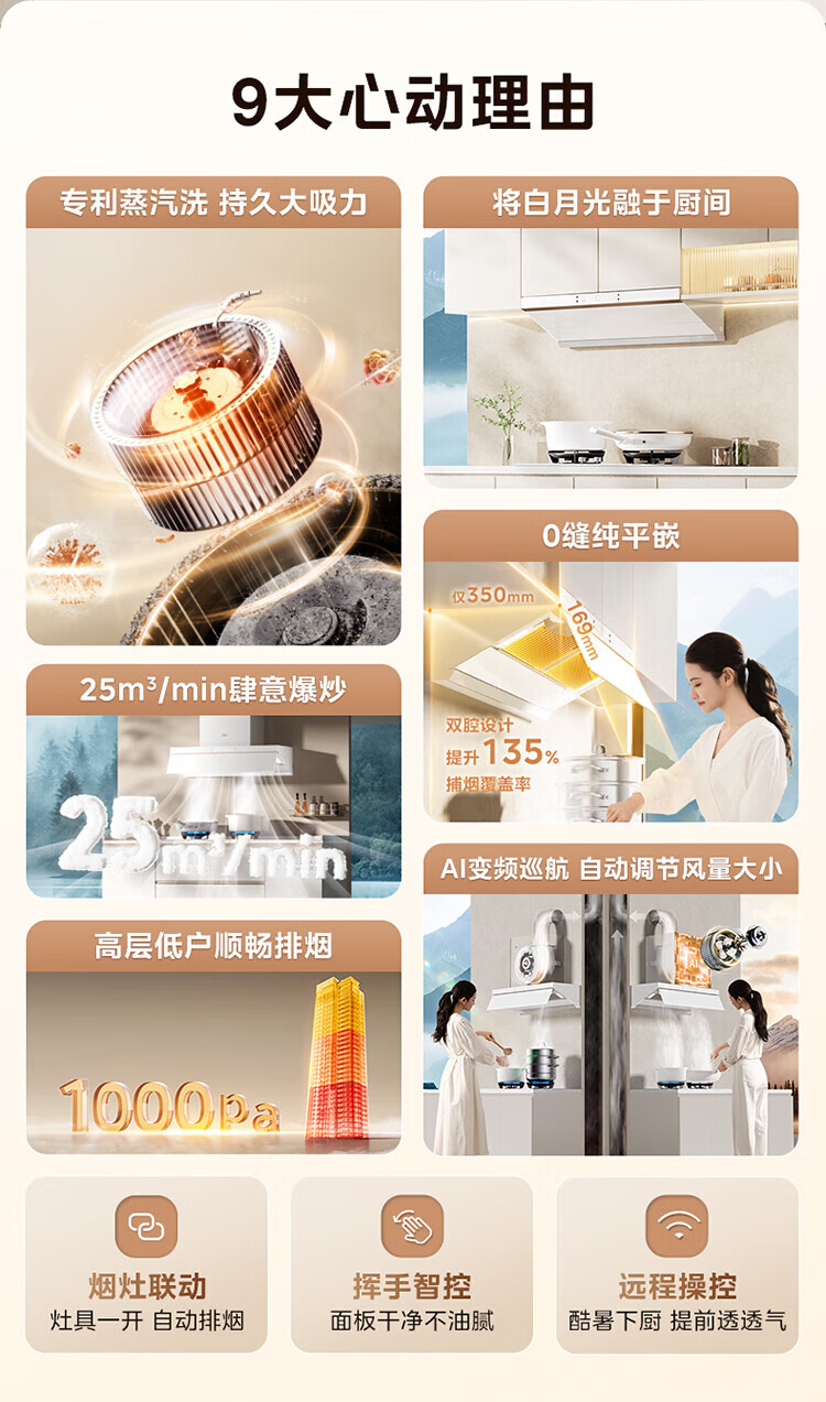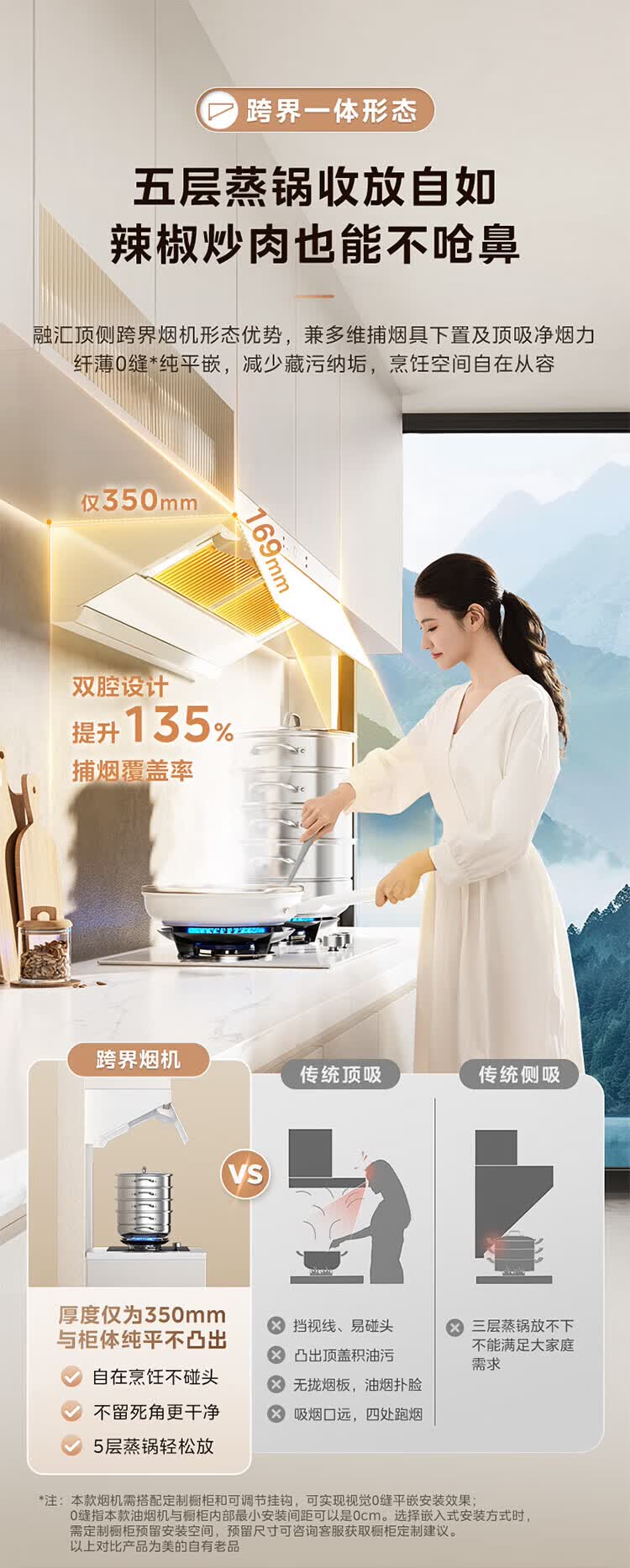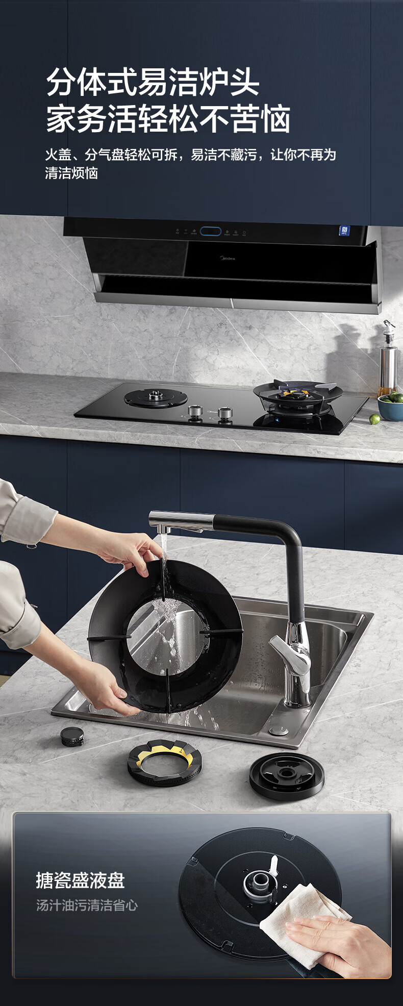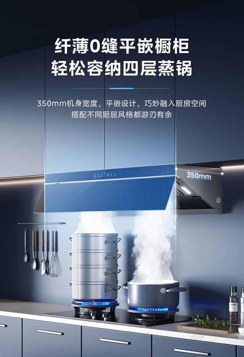 美的(Midea)【AK5pro升级款25风量】抽吸油烟机25顶侧一体欧式自清洁高温蒸汽洗变频巡航1000Pa静压