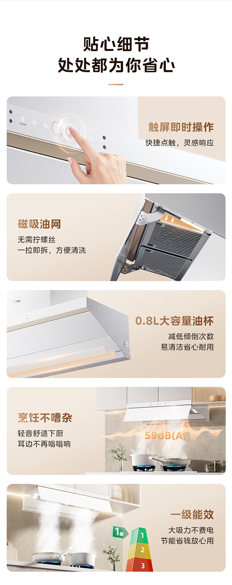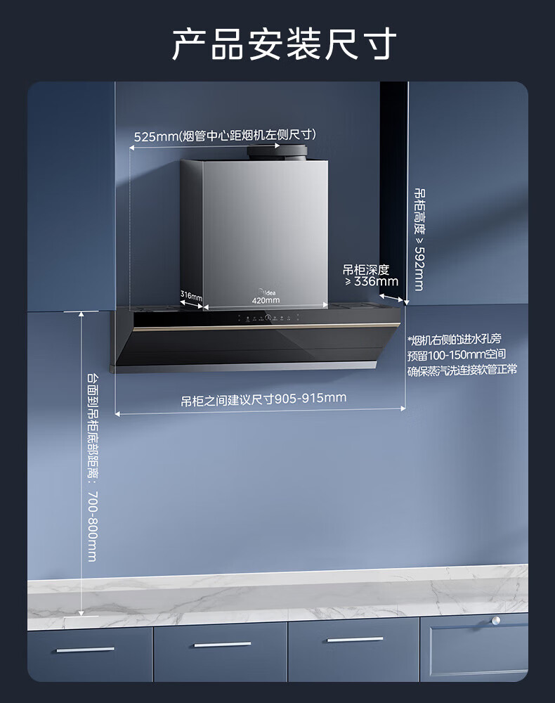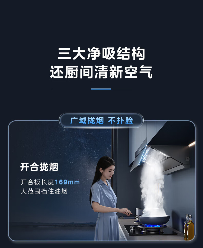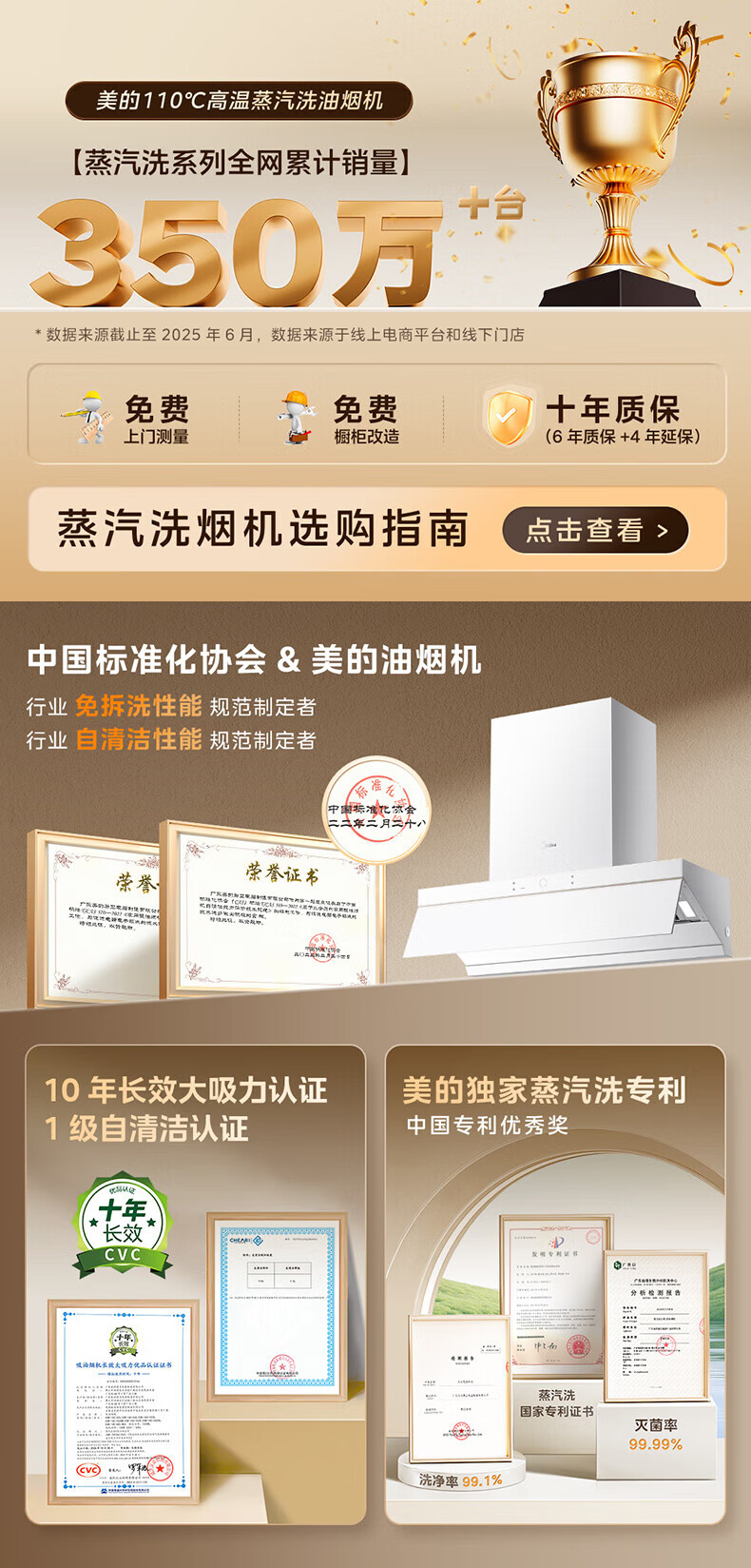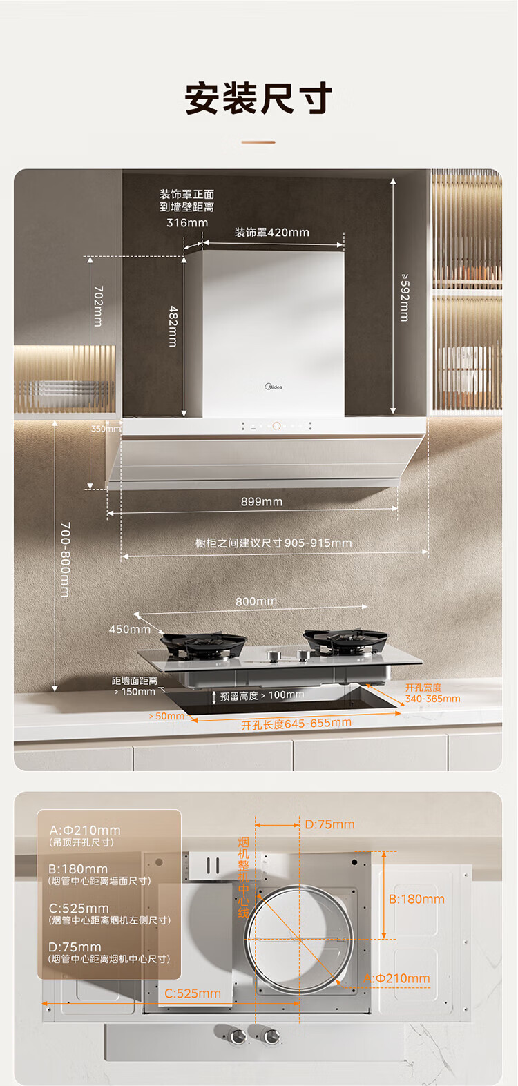 美的(Midea)【AK5pro升级款25风量】抽吸油烟机25顶侧一体欧式自清洁高温蒸汽洗变频巡航1000Pa静压