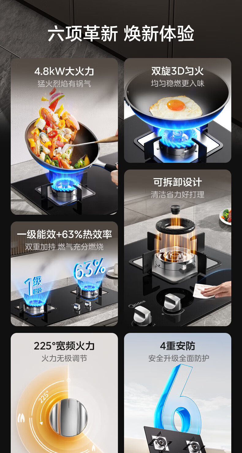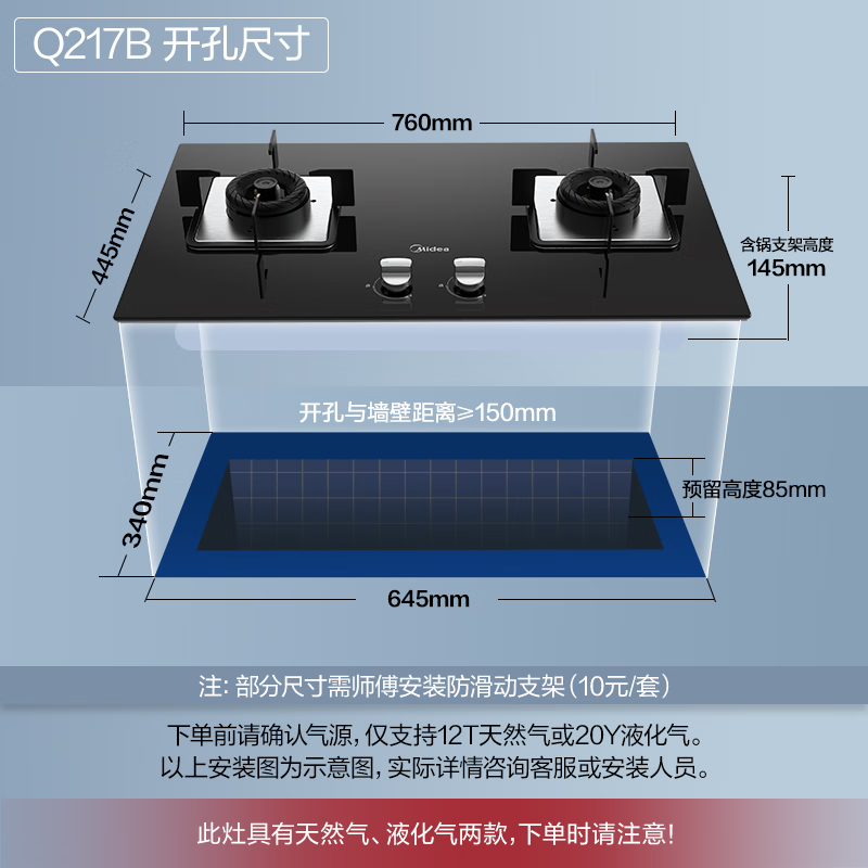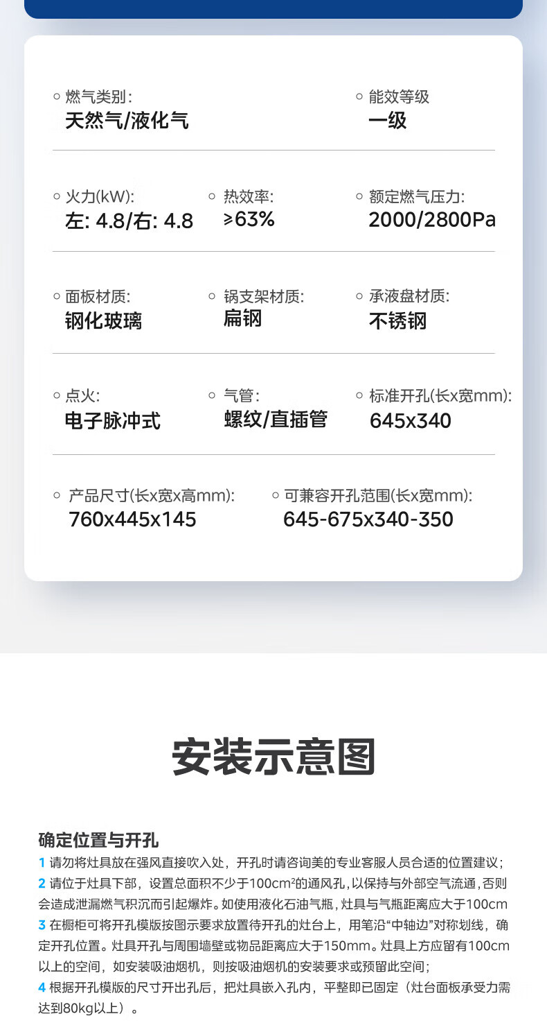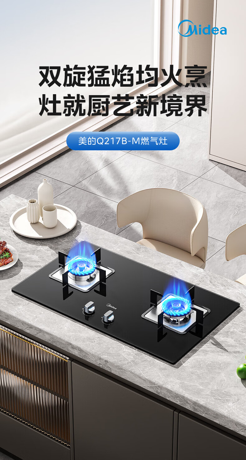 美的(Midea)燃气灶双灶天然气 家用台式嵌入式两用大火力液化气猛火灶具可调节开孔罐装煤气灶