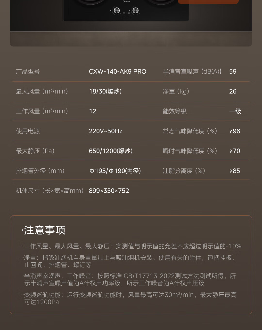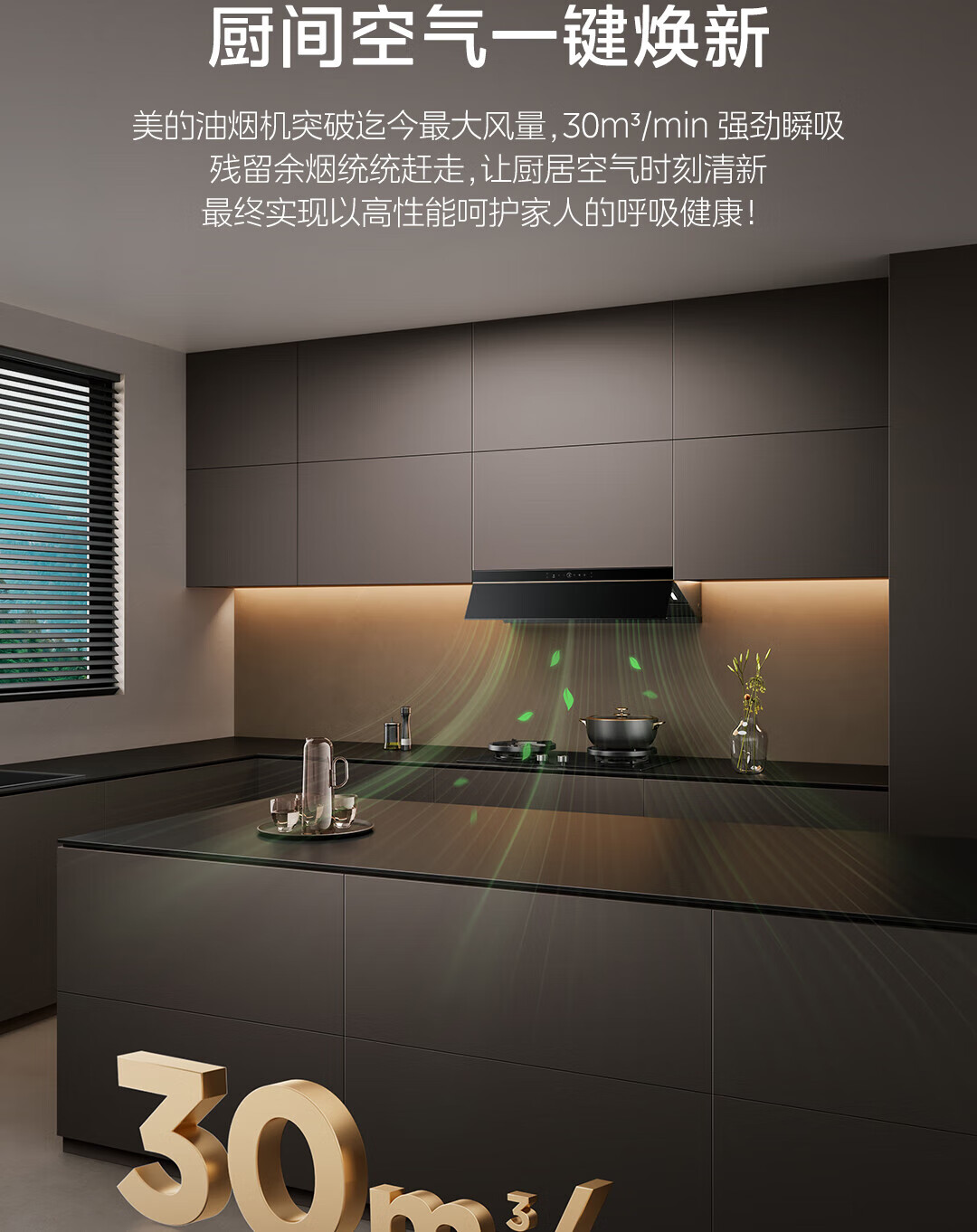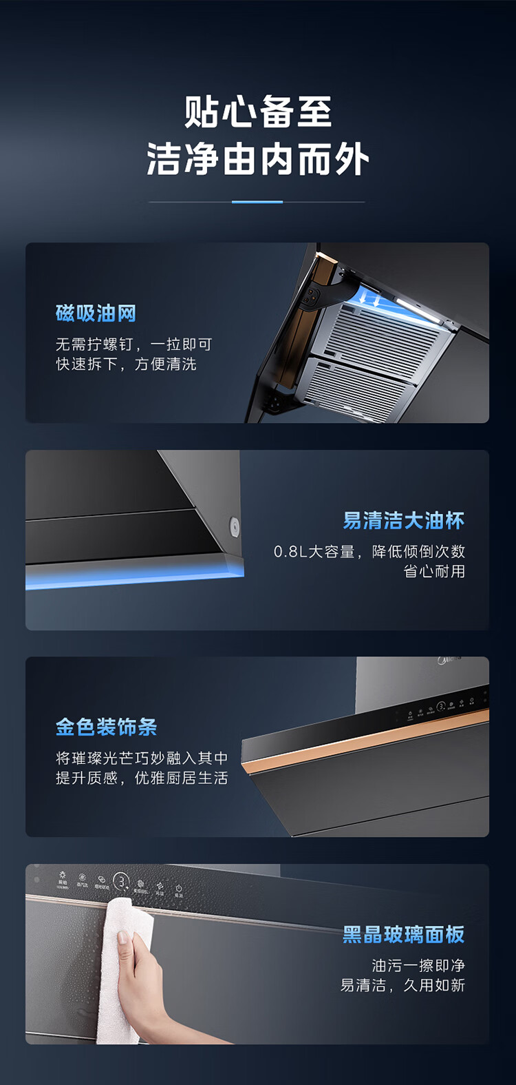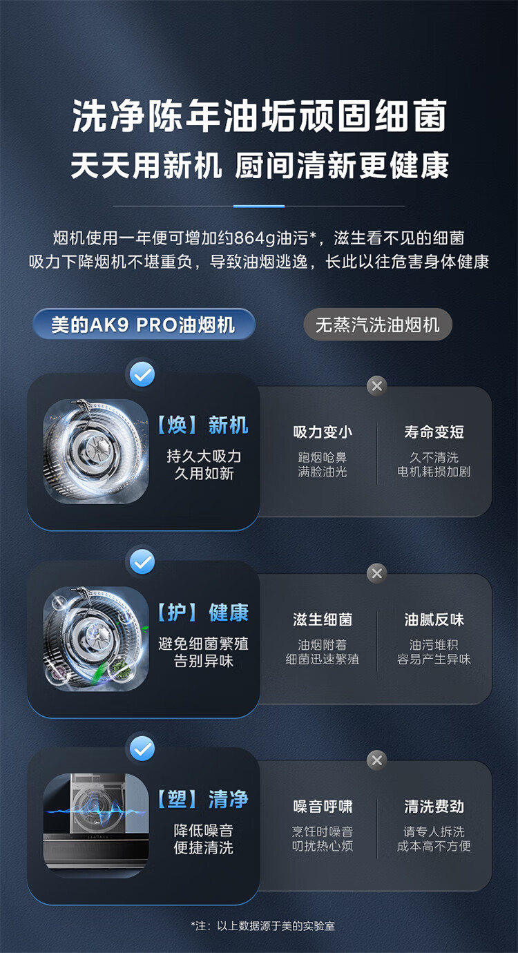 美的(Midea)【顶配新品AK9PR0】高温蒸汽洗抽油烟机 30风量 1200Pa静压 顶侧一体欧式变频烟灶联动吸油烟机 【顶配新品】30风量蒸汽洗AK9pro