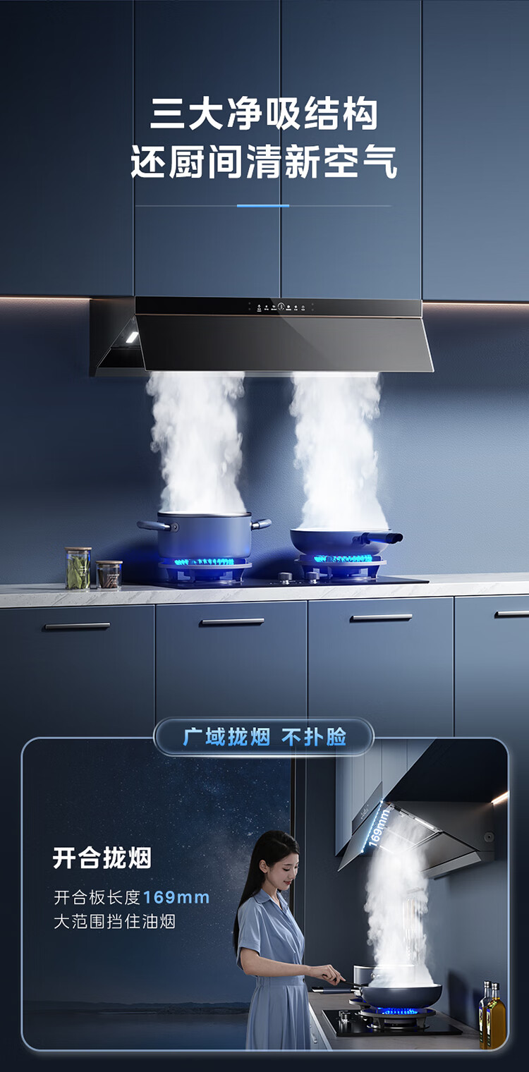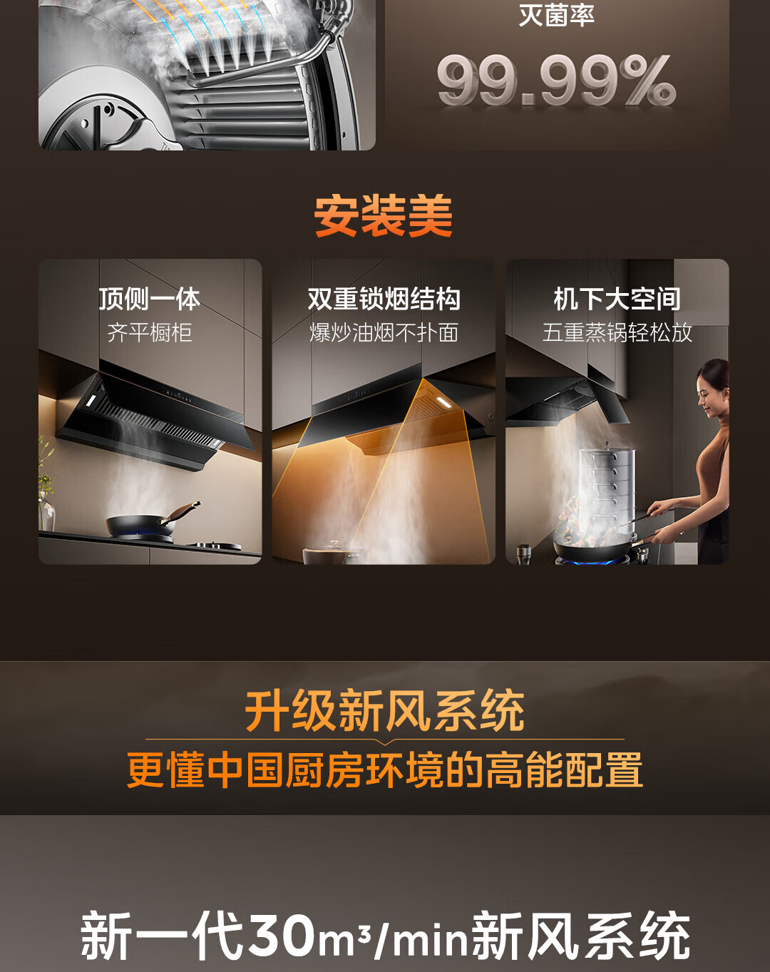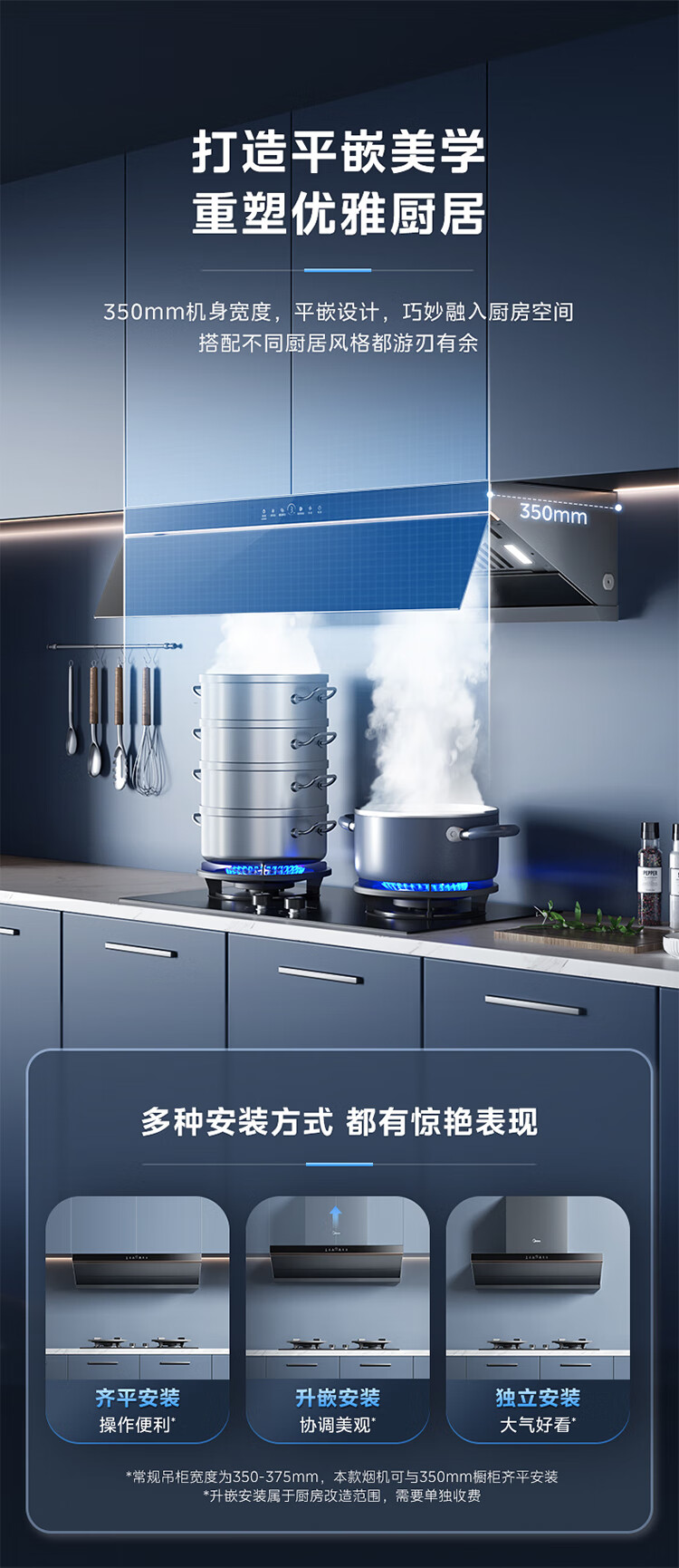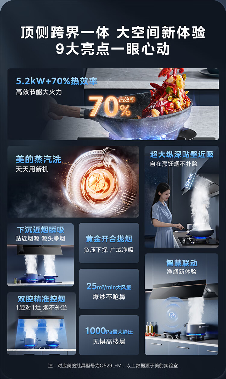 美的(Midea)【顶配新品AK9PR0】高温蒸汽洗抽油烟机 30风量 1200Pa静压 顶侧一体欧式变频烟灶联动吸油烟机 【顶配新品】30风量蒸汽洗AK9pro